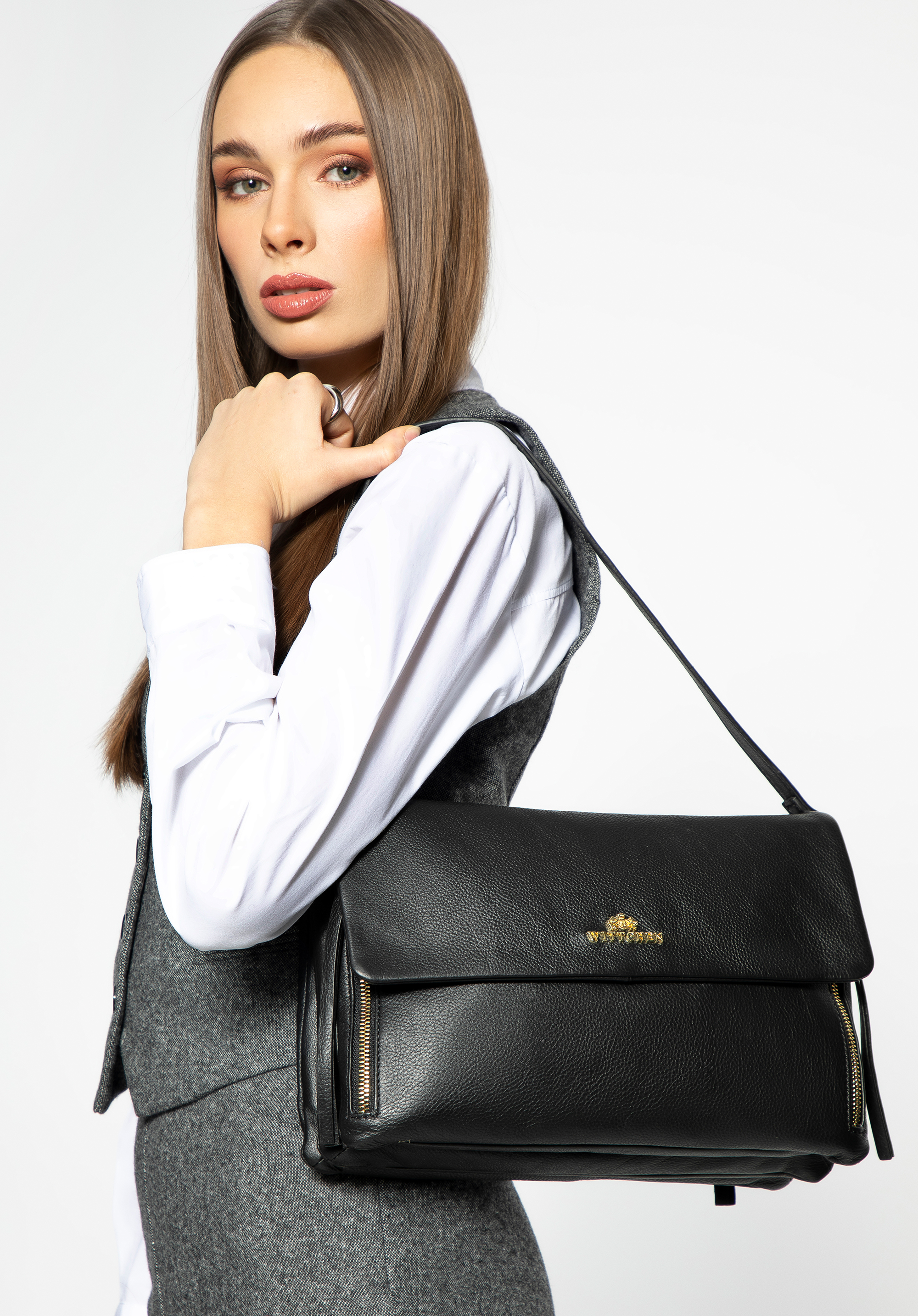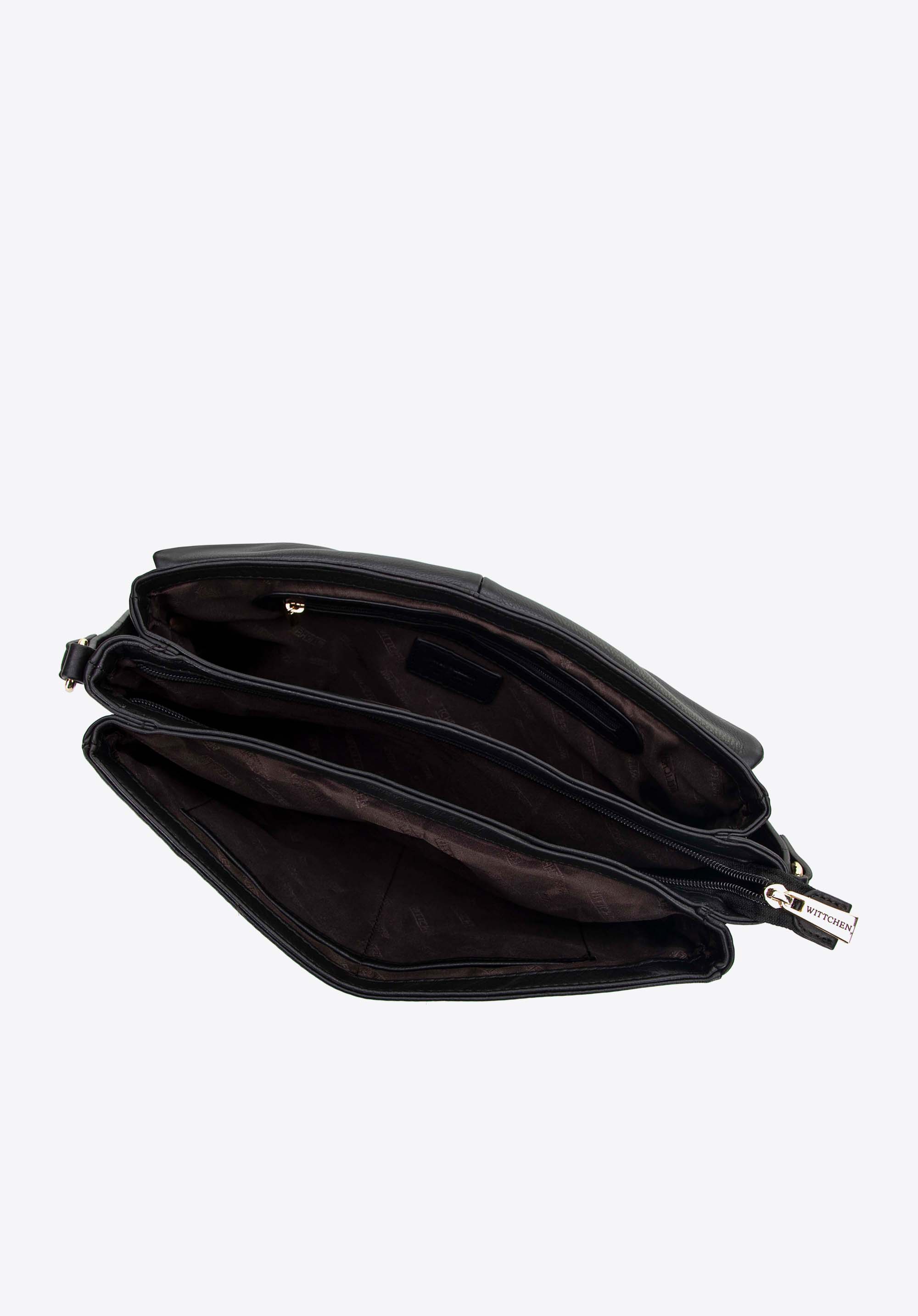 Elegancka skórzana listonoszka to połączenie stylu i wygody! Dzięki odpinanemu, regulowanemu paskowi możesz ją nosić jako listonoszkę oraz — dzięki uchwytowi — w ręku lub na ramieniu. Wyróżnia się przestronnym wnętrzem z trzema oddzielnymi komorami, które zapewnią idealną organizację Twoich rzeczy. Dodatkowo ozdobne zamki z chwostami dodają torebce charakteru, podkreślając jej nowoczesny design. Idealna na co dzień, ale sprawdzi się także w bardziej formalnych stylizacjach.