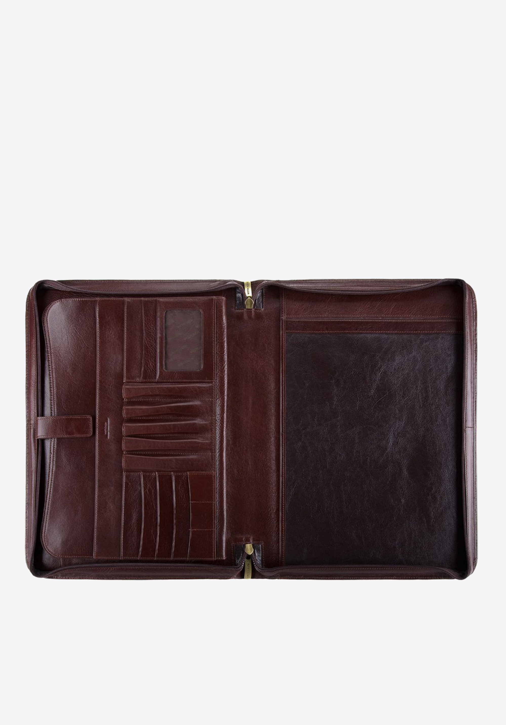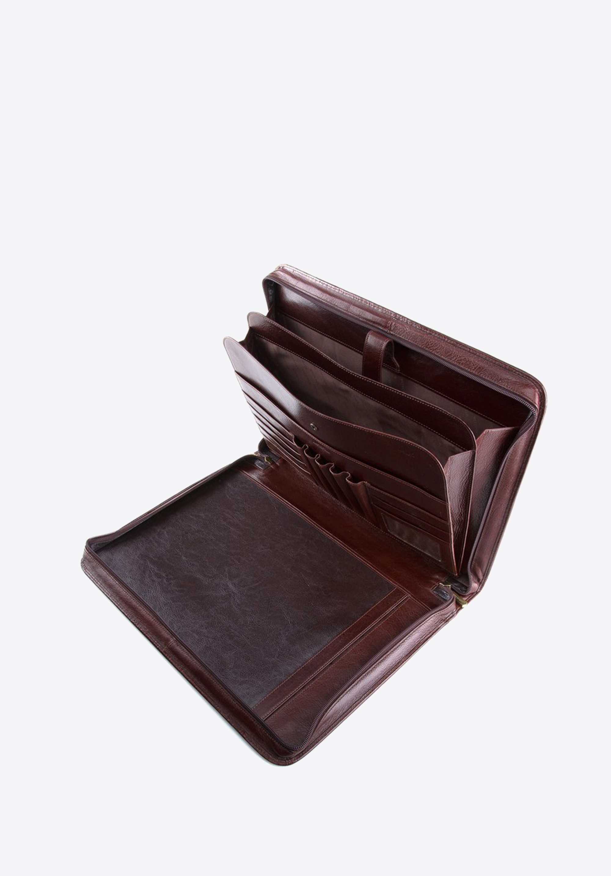 Cienka aktówka wykonana z wysokiej jakości skóry cielęcej to praktyczny i bardzo elegancki dodatek. Dzięki funkcjonalnym kieszeniom i zamknięciu na suwak, gwarantuje bezpieczeństwo przechowywanych w niej dokumentów.