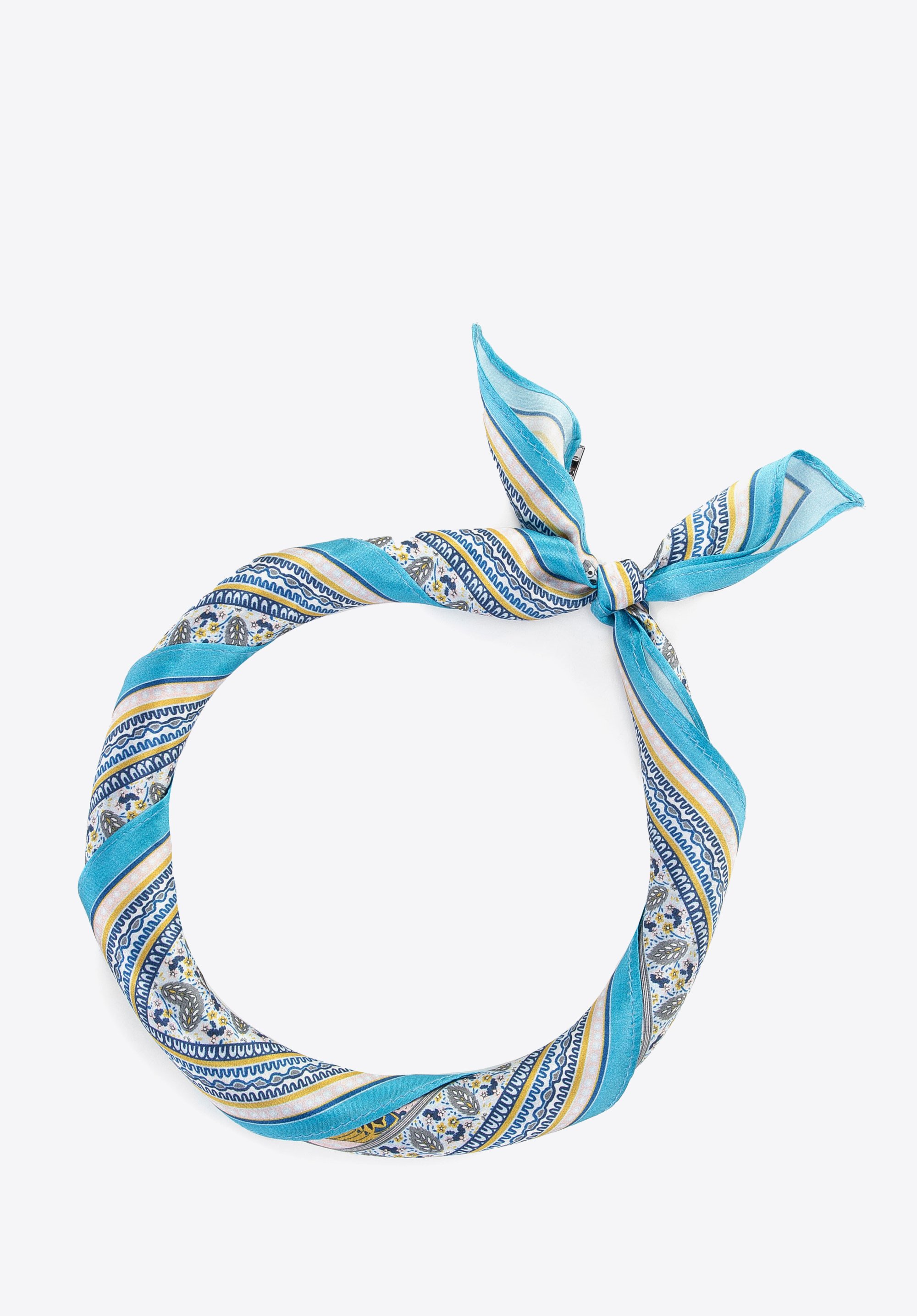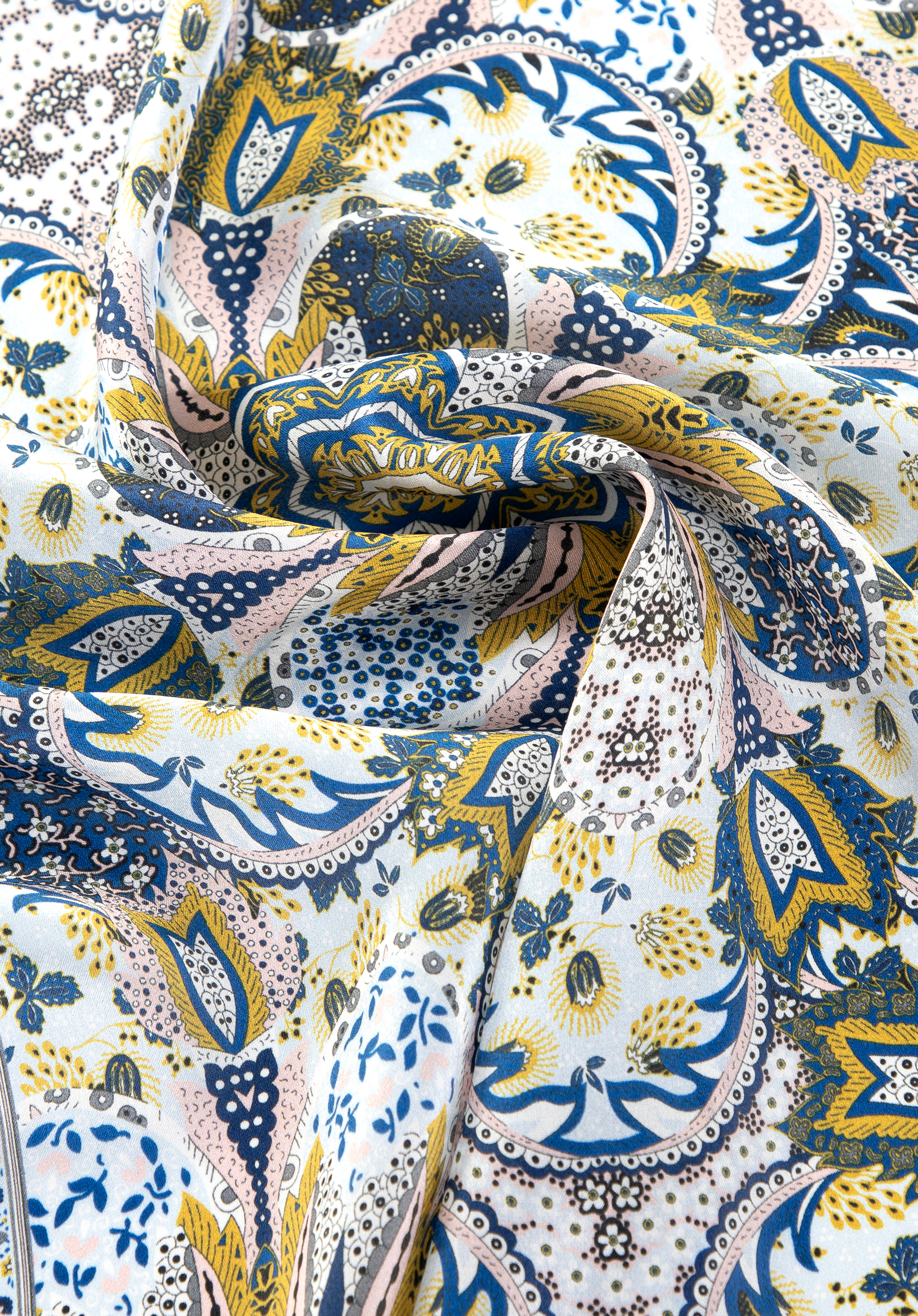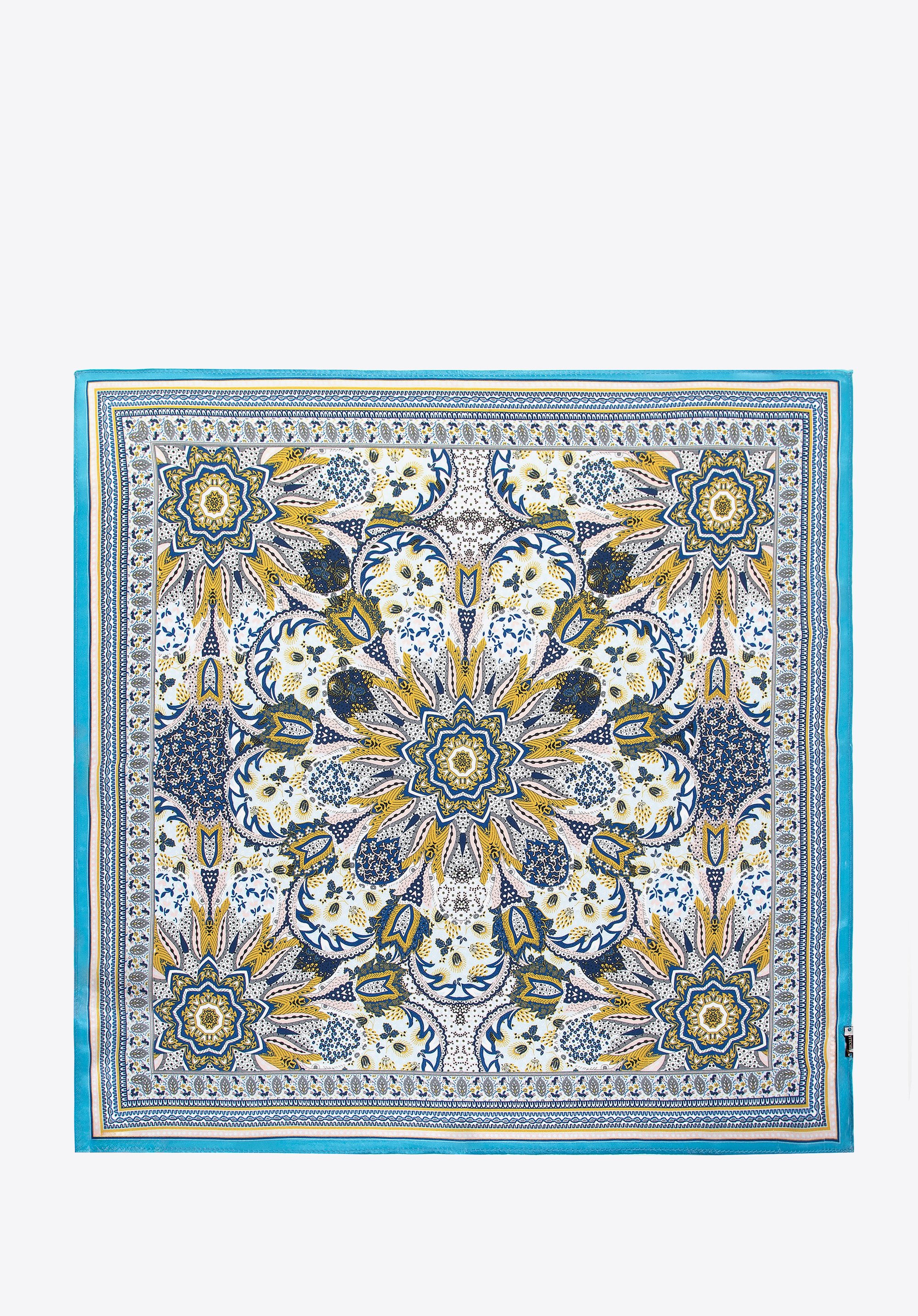 Ta elegancka apaszka doda szyku każdej kobiecie. Została wykonana z gładkiego jedwabiu o delikatnym połysku. Jest lekka i pięknie się układa, więc łatwo ułożysz ją pod szyją lub przewiążesz przez ucho torebki. Każdy wzór prezentuje się ciekawie zarówno po rozłożeniu, jak i zwinięciu apaszki. Ten model elegancko podkreśli Twoją stylizację: zarówno szykowną sukienkę, jak i klasyczny trencz. Wzorzysta damska apaszka jedwabna to ponadczasowy dodatek, który przyda Ci się na wiele okazji.
