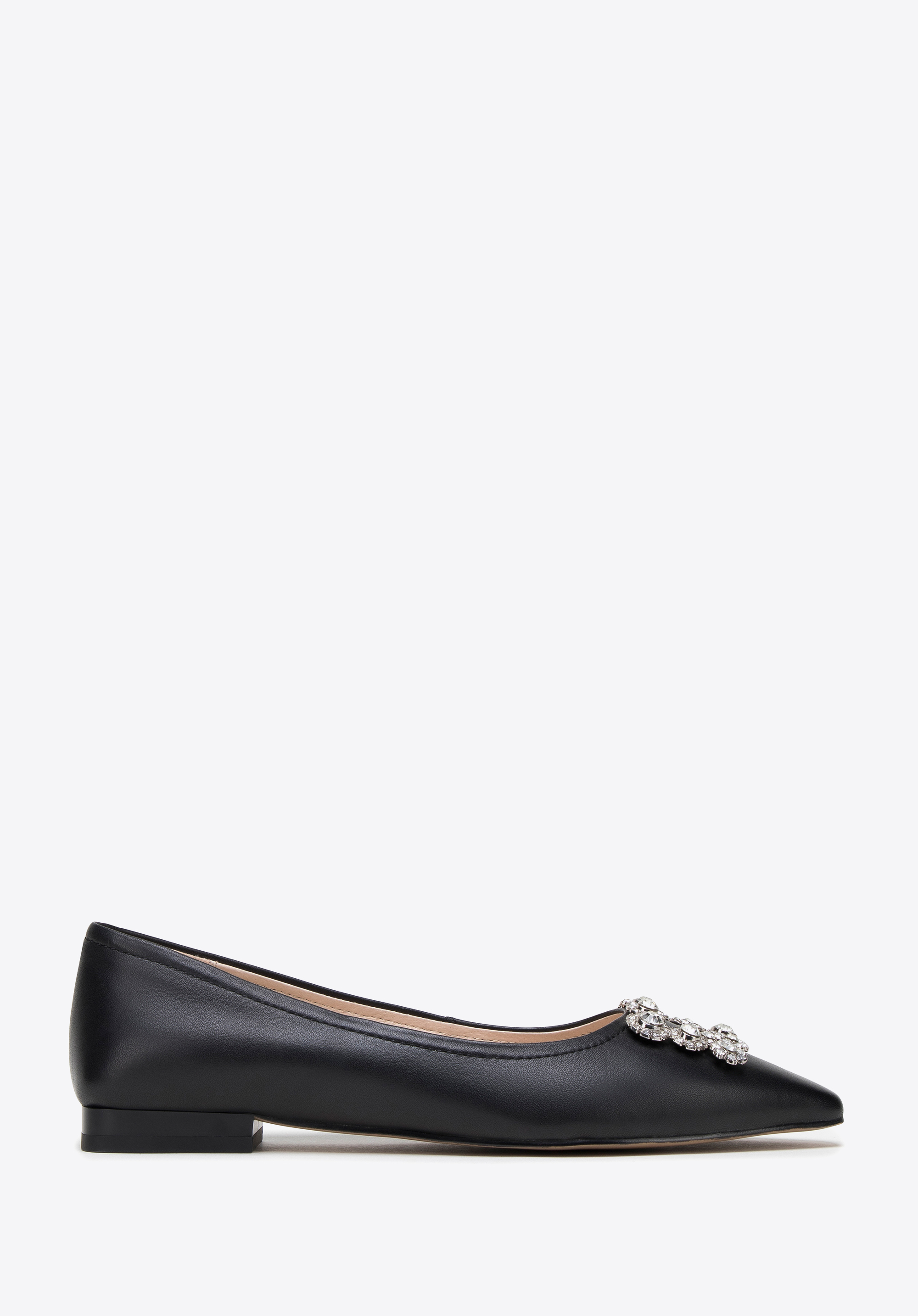 Baleriny skórzane z błyszczącą klamrą to ponadczasowy dodatek, który możesz nosić zarówno do pracy, jak i po pracy.
