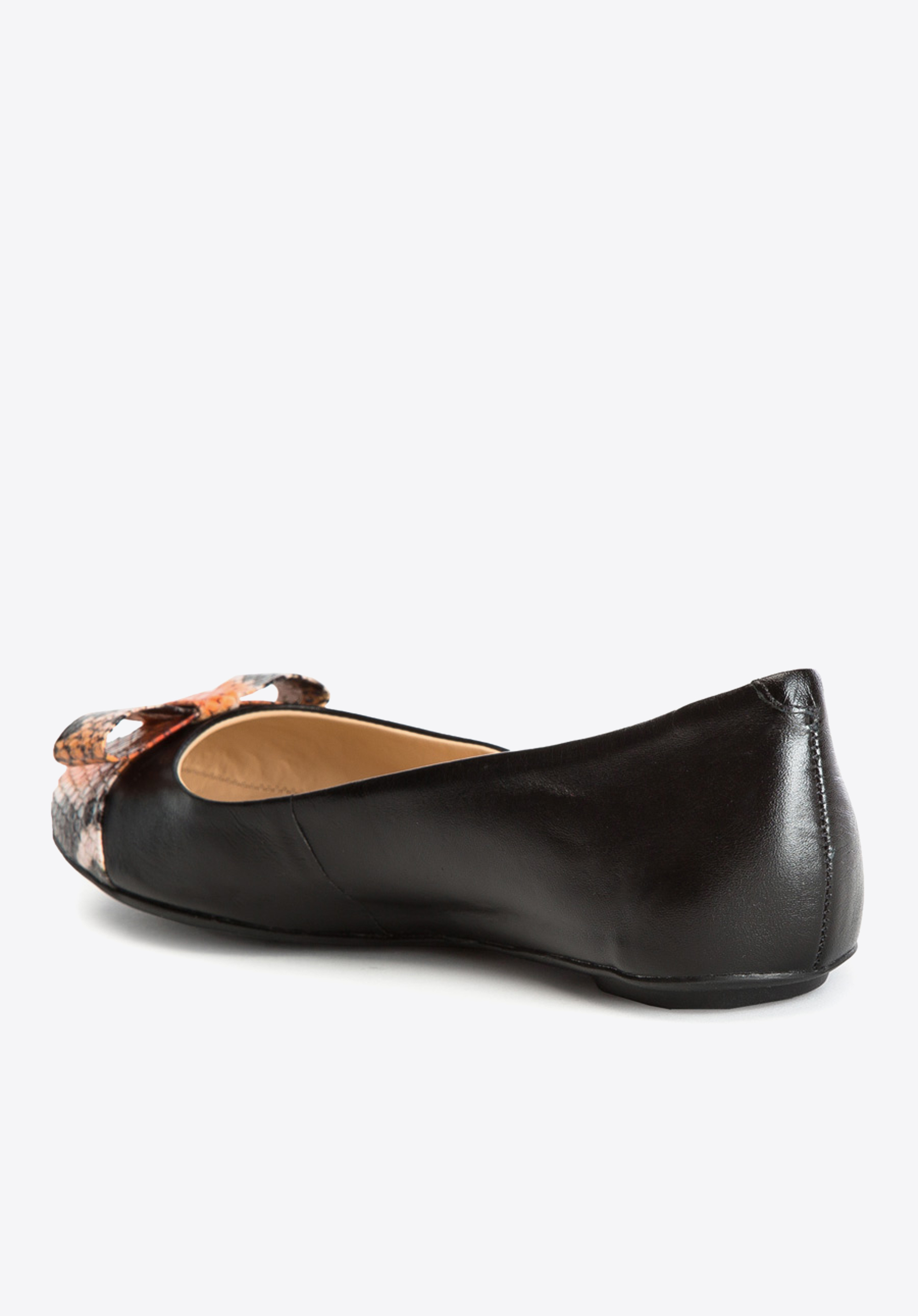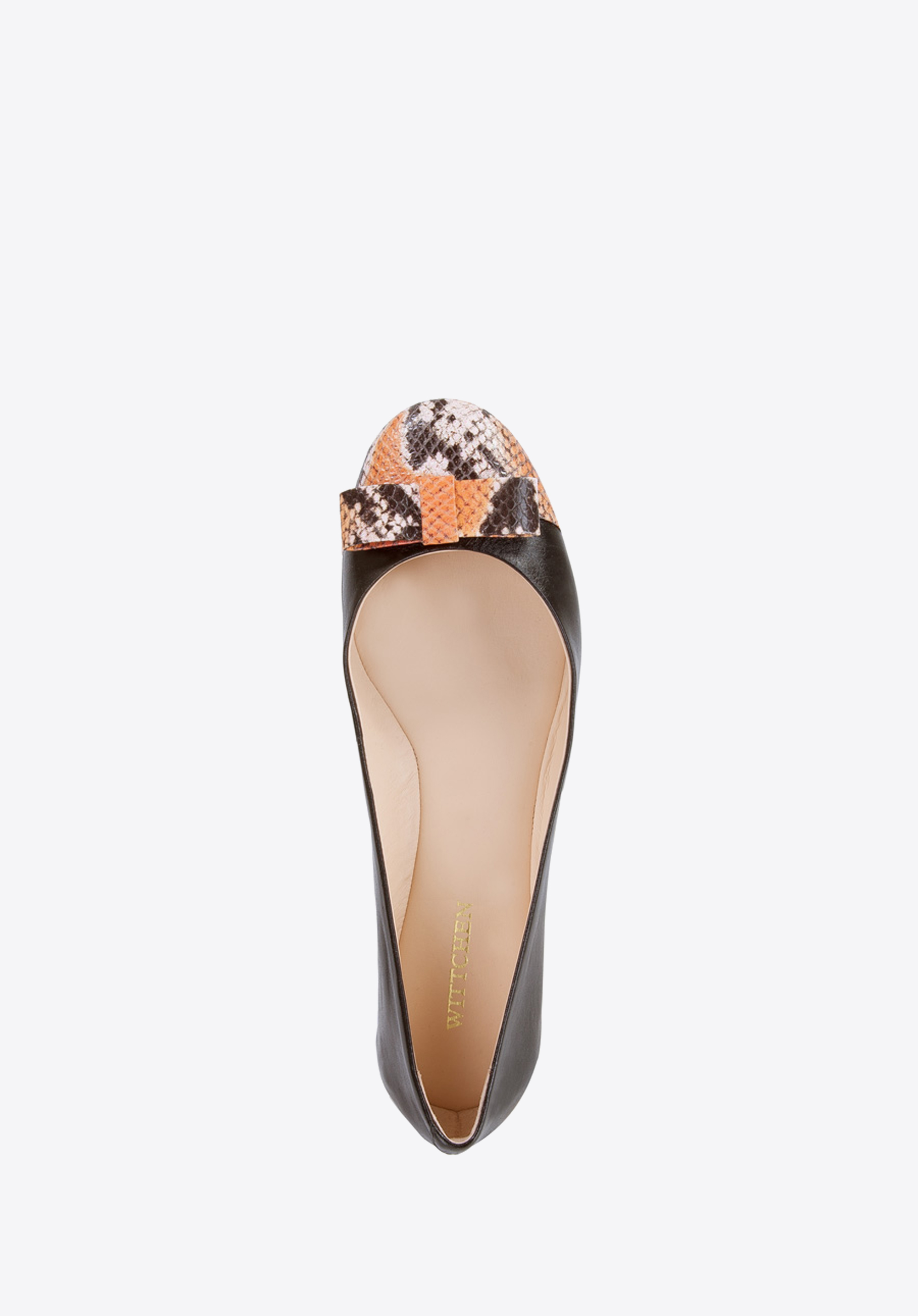 Oryginakne baleriny damskie wykonane ręcznie z wysokogatunkowych włoskich skór. Lekki model o prostym fasonie, którego charakterystyczną cechą jest wyrazisty akcent, umieszczony na nosku. Klasyczna stylistyka przełamana wyrazistym kolorem oraz dziewczęcą kokardką została stworzona z myślą o codziennym użytkowaniu.