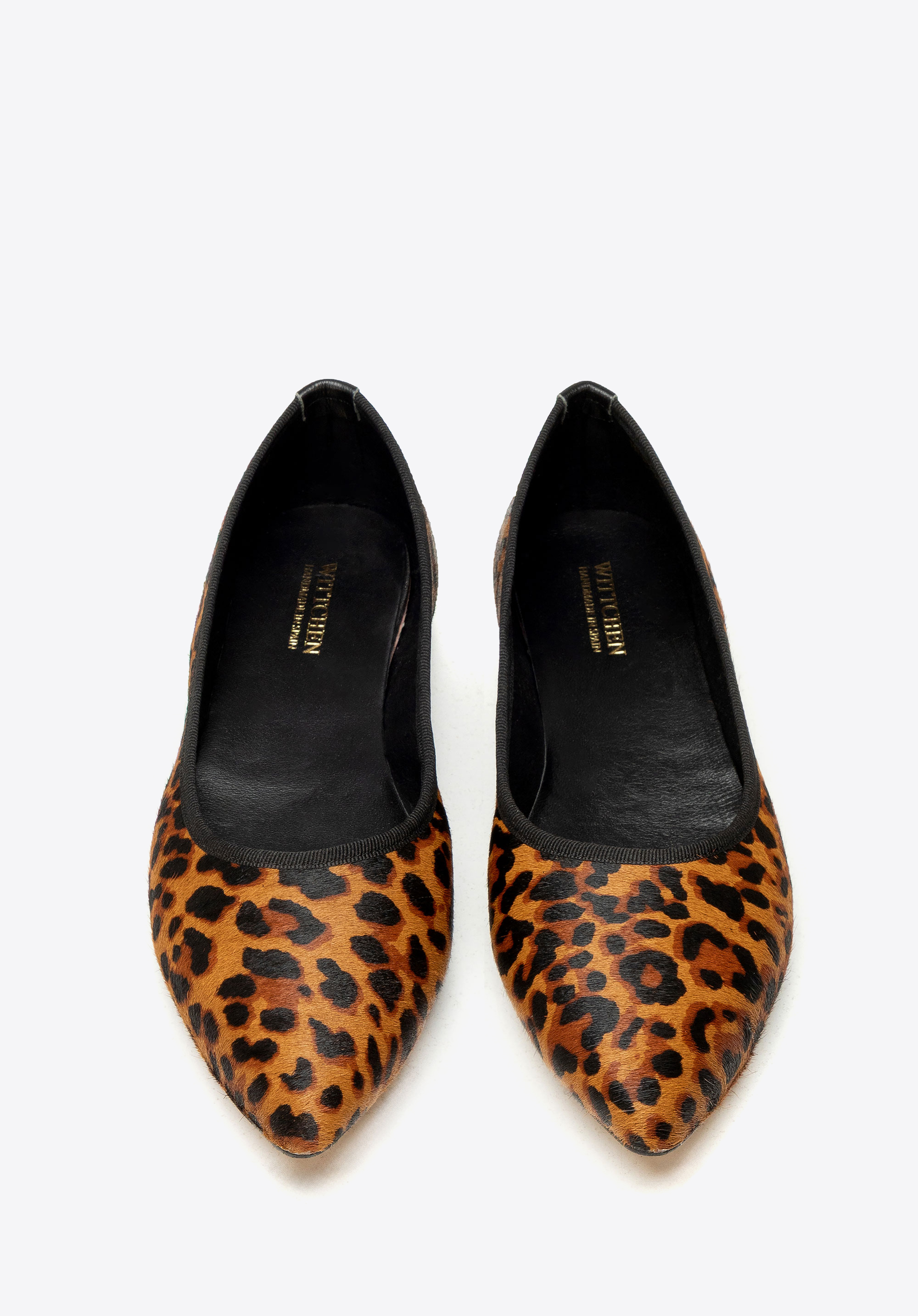 Wprowadź do swojej garderoby buty, które łączą niepowtarzalny design z wygodą na najwyższym poziomie. Te baleriny zachwycają modnym wzorem zwierzęcym oraz smukłym noskiem w szpic, który subtelnie wysmukla stopę, dodając lekkości całej sylwetce. Wykonane z naturalnego włosia o wyjątkowej fakturze, przyciągają uwagę niebanalnym wykończeniem i podkreślają indywidualny charakter. Naturalna skóra wkładki zapewnia optymalną wentylację oraz miękkość, a płaski obcas gwarantuje komfort przez cały dzień.