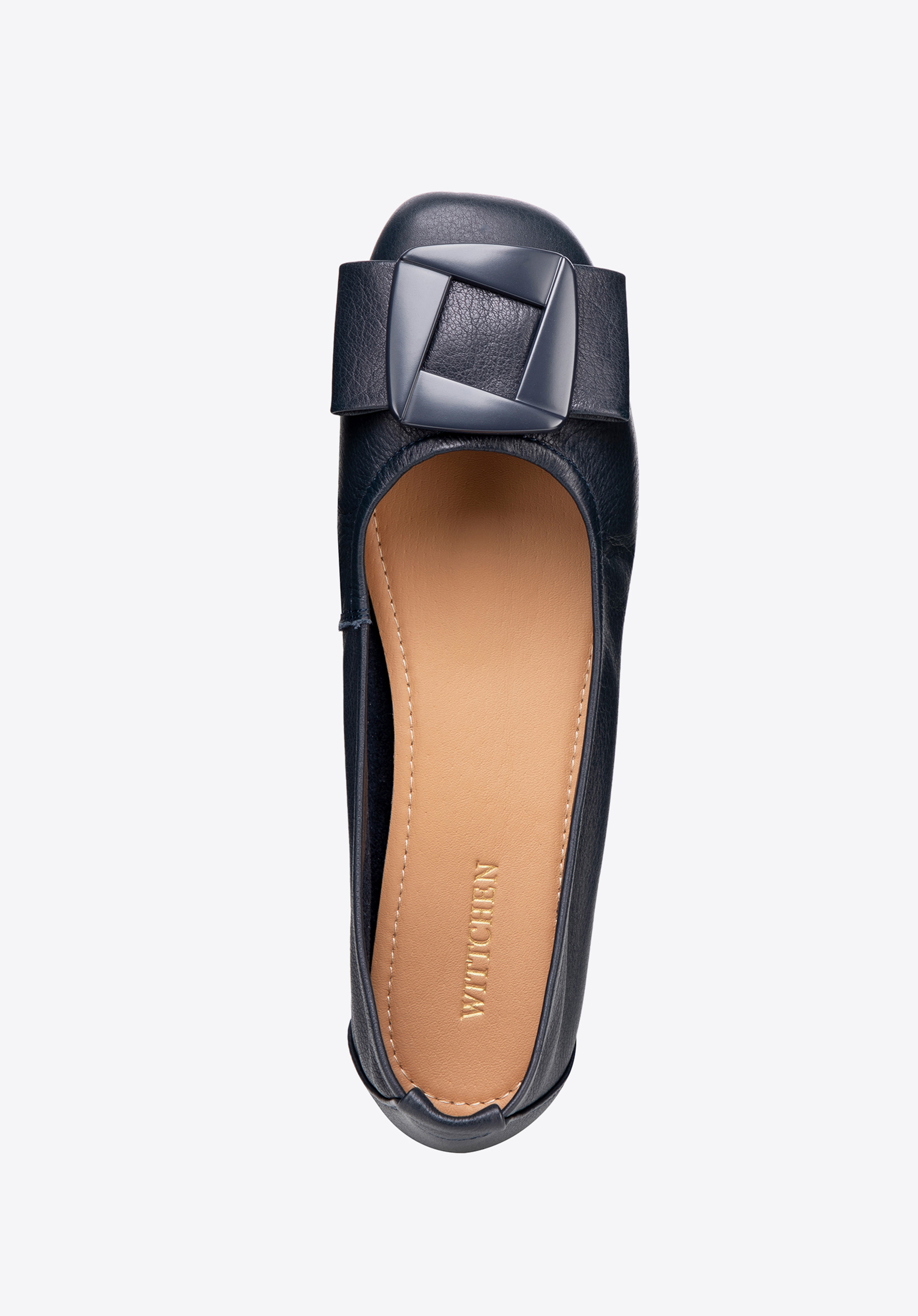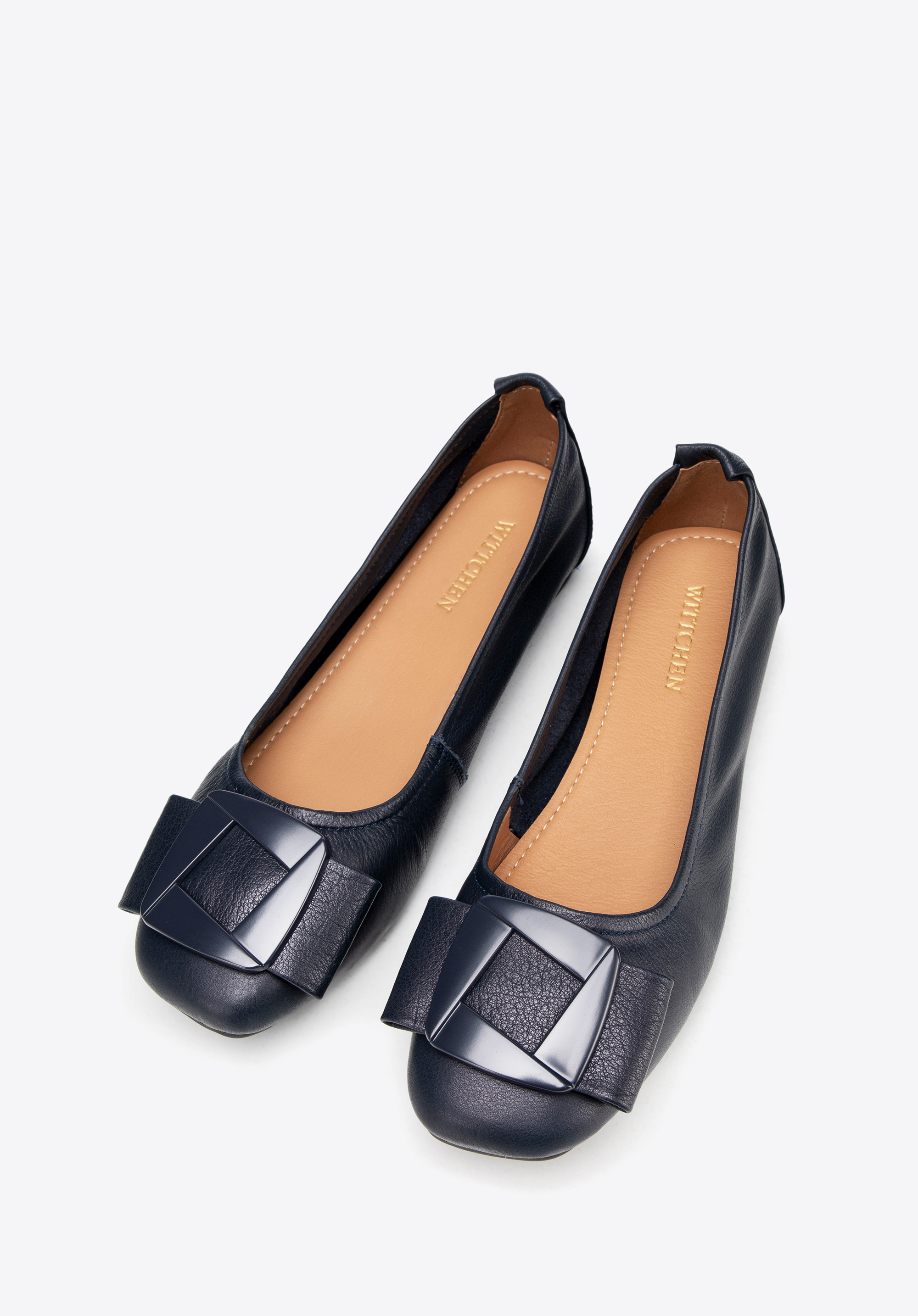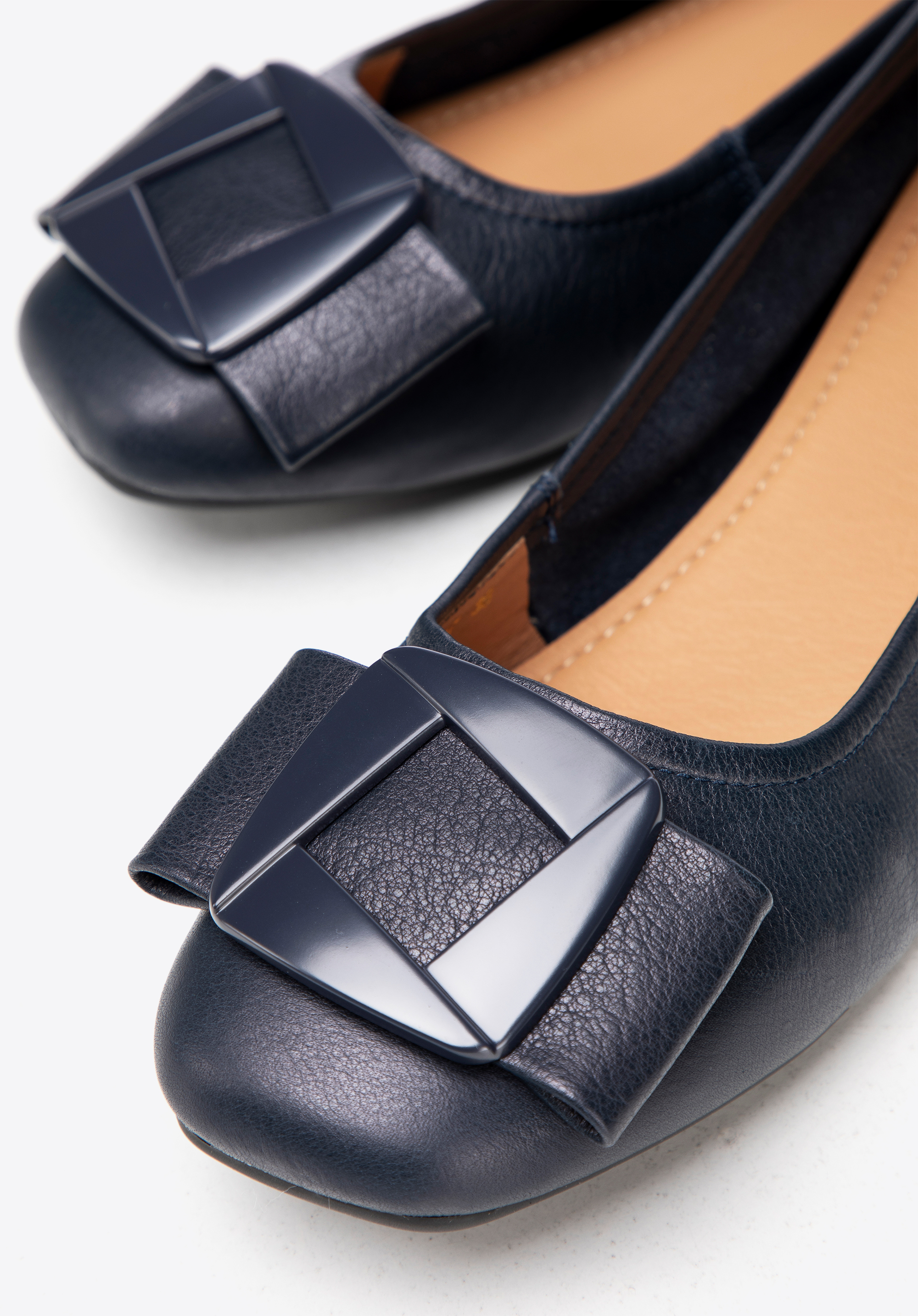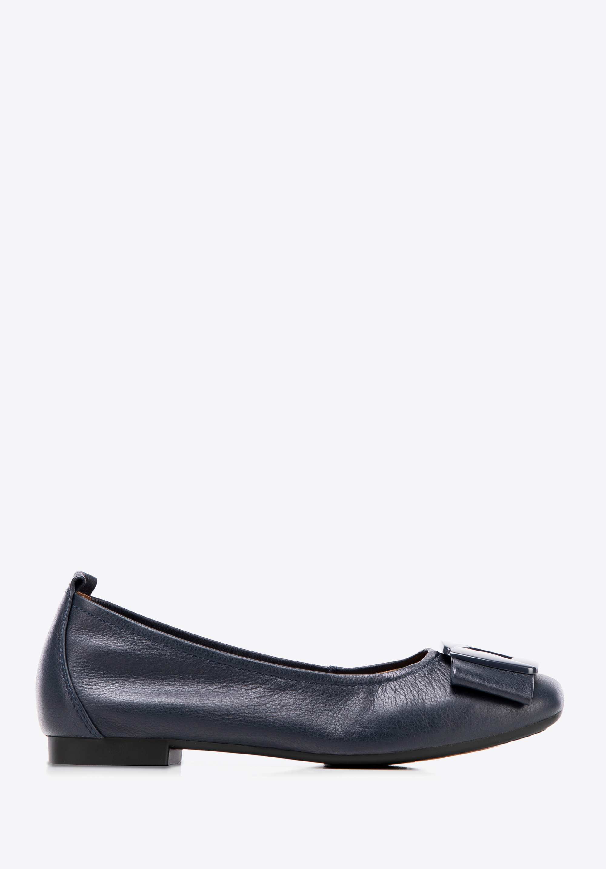 Klasyka z geometrycznym akcentem – damskie baleriny ze skóry