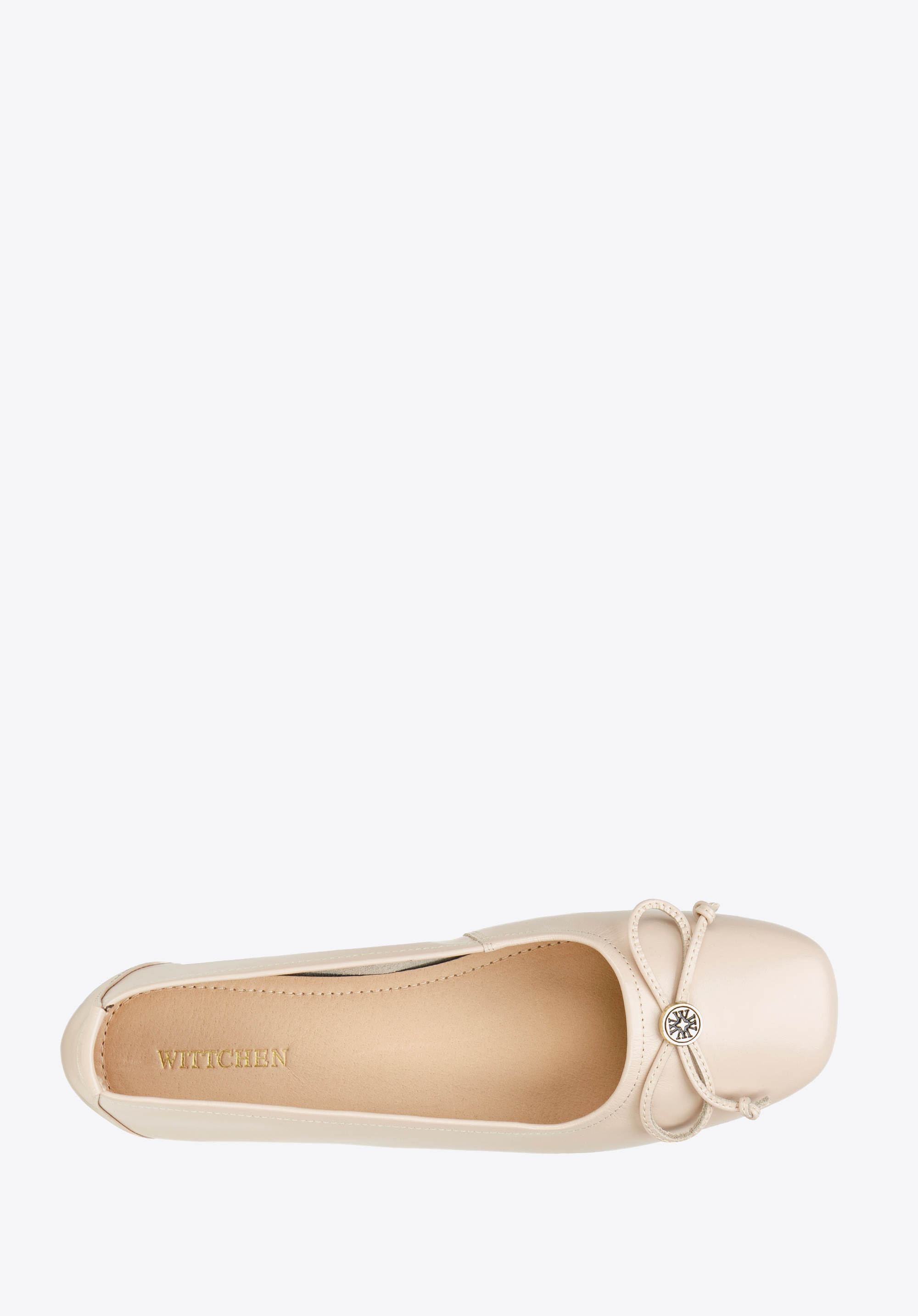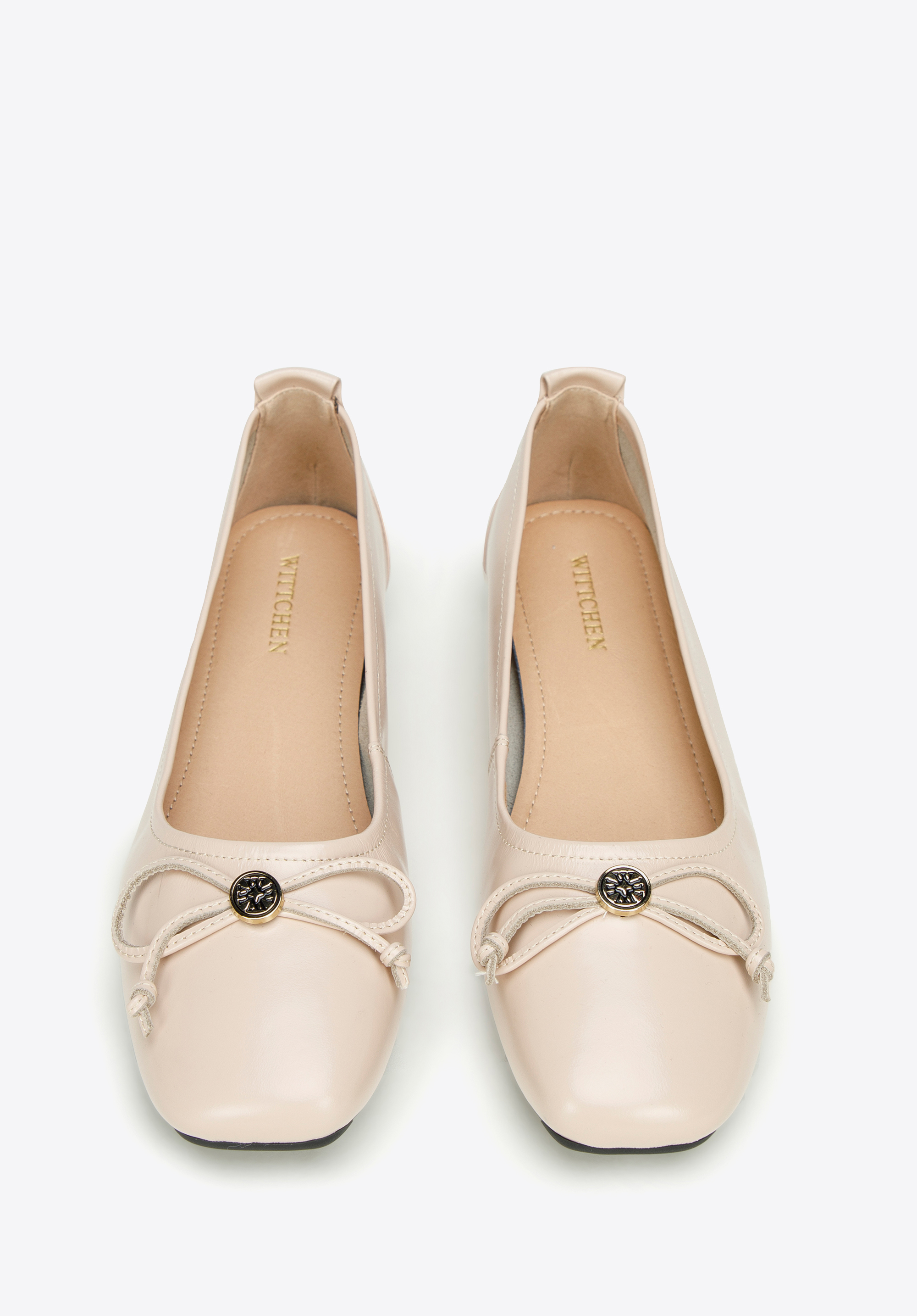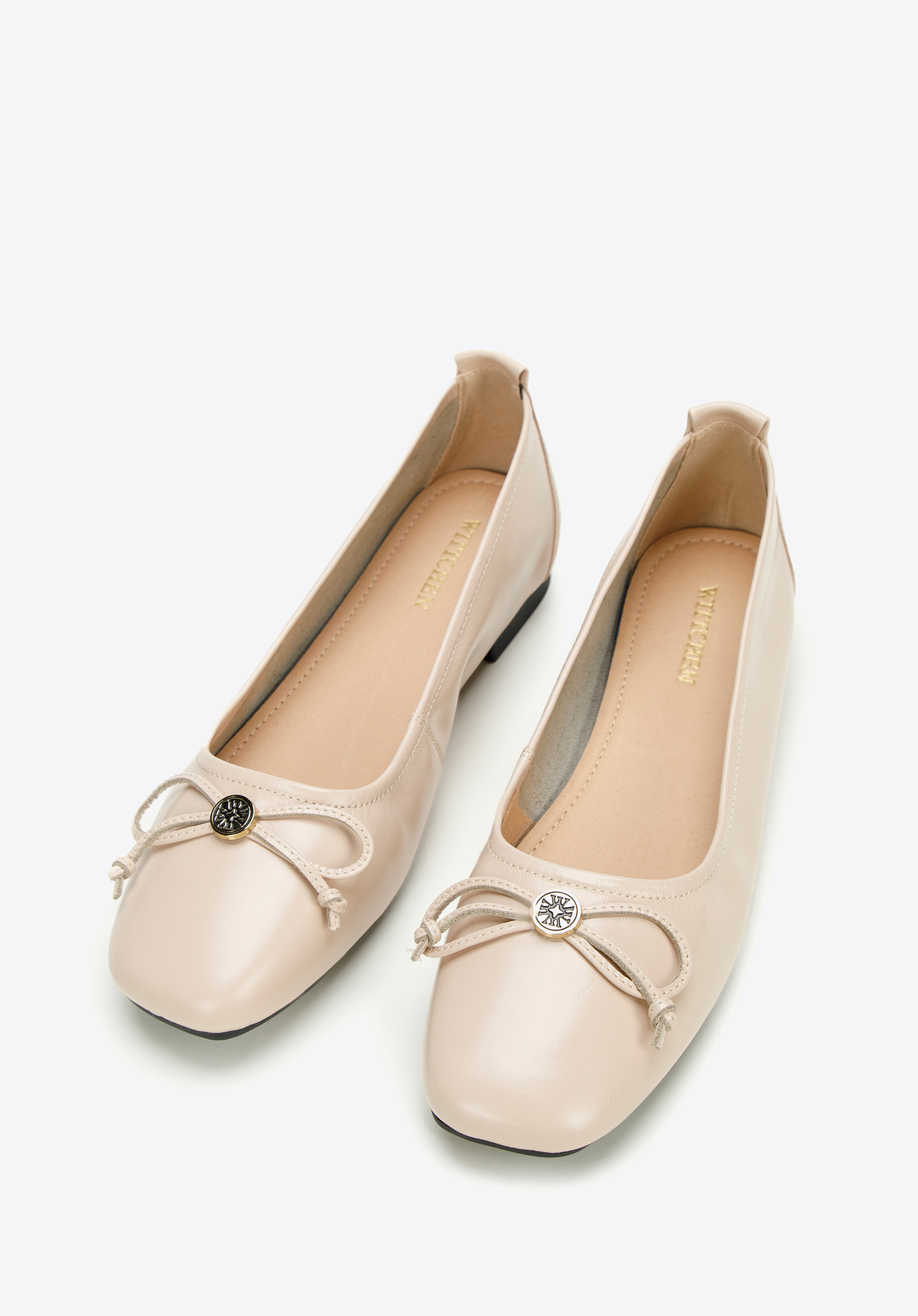 Baleriny z miękkiej skóry z kokardką z monogramem przydadzą Ci się wiosną i latem na wiele okazji.