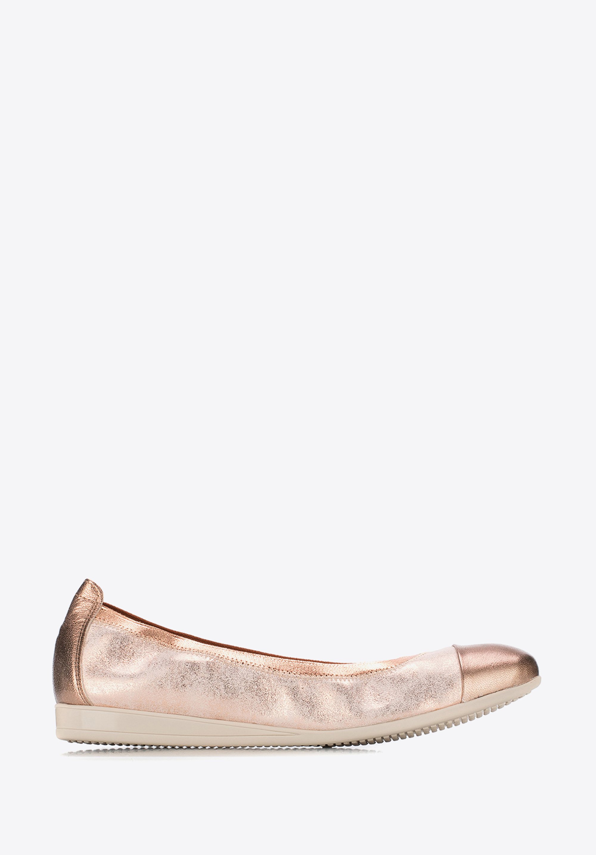 Wiosenne baletki w metalicznym odcieniu różu to dziewczęcy model, który doda stylizacjom uroku. Nieprzeciętne zdobienia urozmaicają klasyczny fason obuwia, który jest niezwykle wygodny. Funkcjonalne rozwiązania to elastyczna wstawka i płaska podeszwa w białym odcieniu, które podkreślają niezobowiązujący charakter baletek. Nasza rada: metaliczne dodatki noś także za dnia!