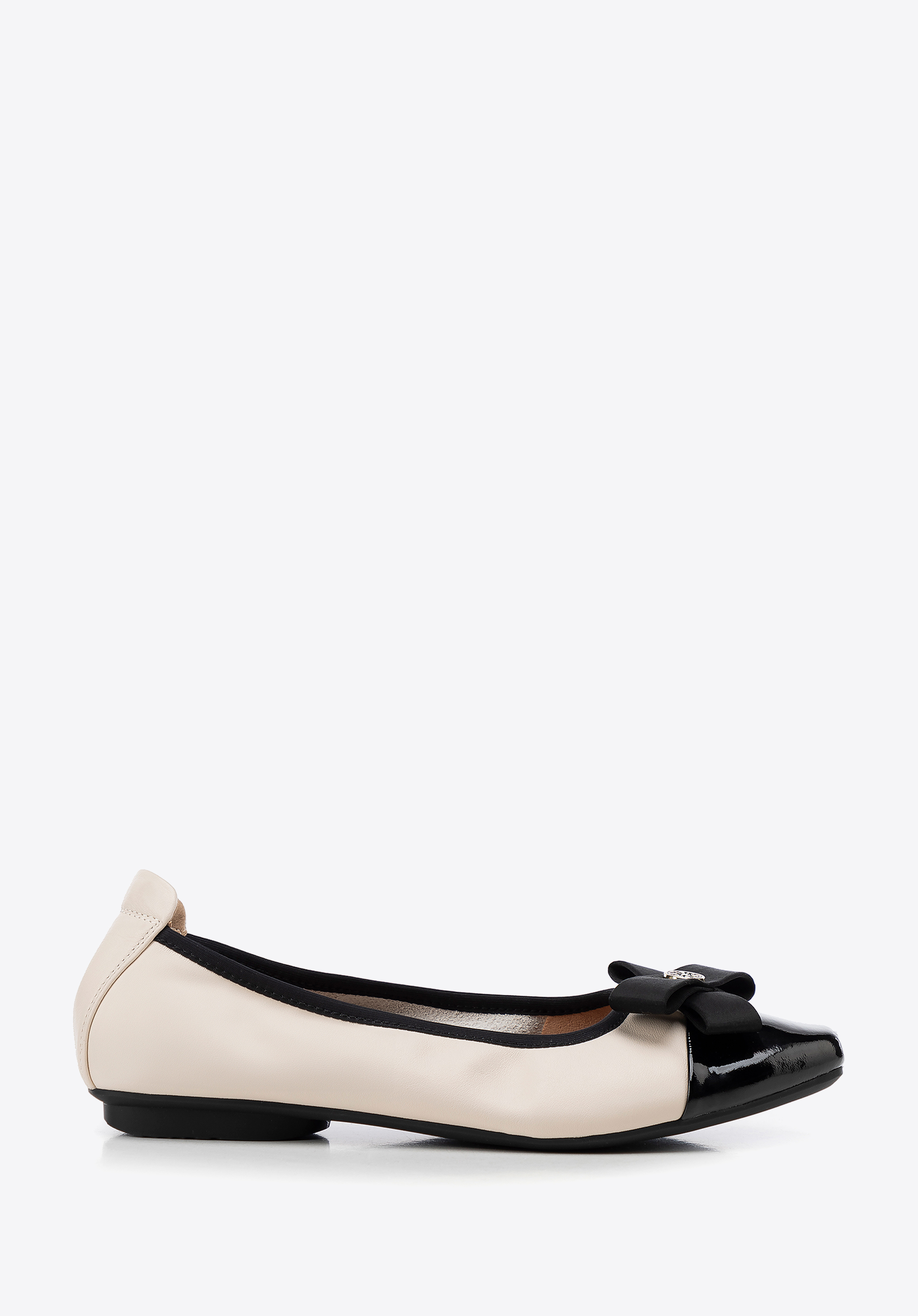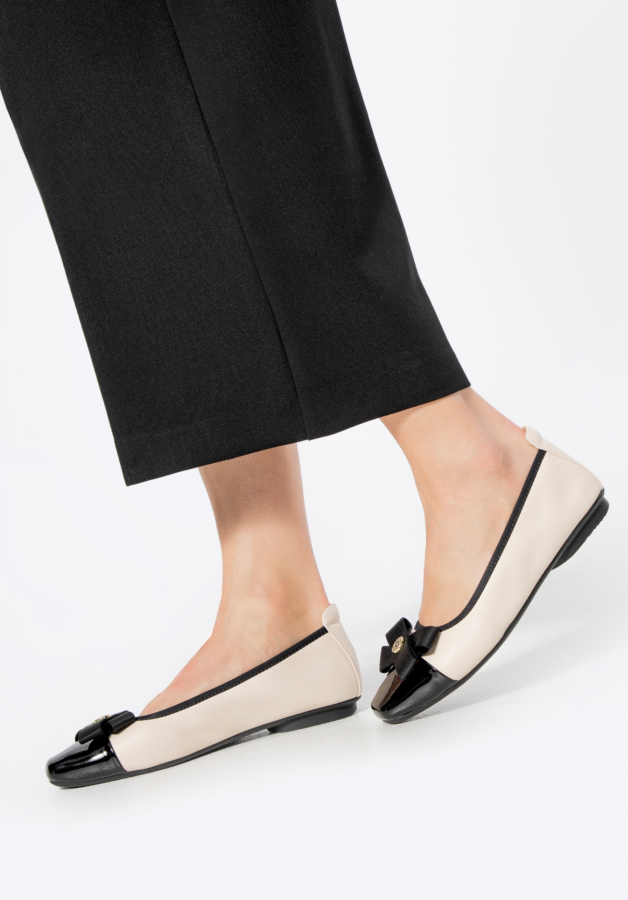 - Matowa i lakierowana skóra: Zestawienie tych dwóch faktur dodaje balerinom elegancji i sprawia, że łatwo dopasujesz je zarówno do codziennych, jak i bardziej wyrafinowanych stylizacji.