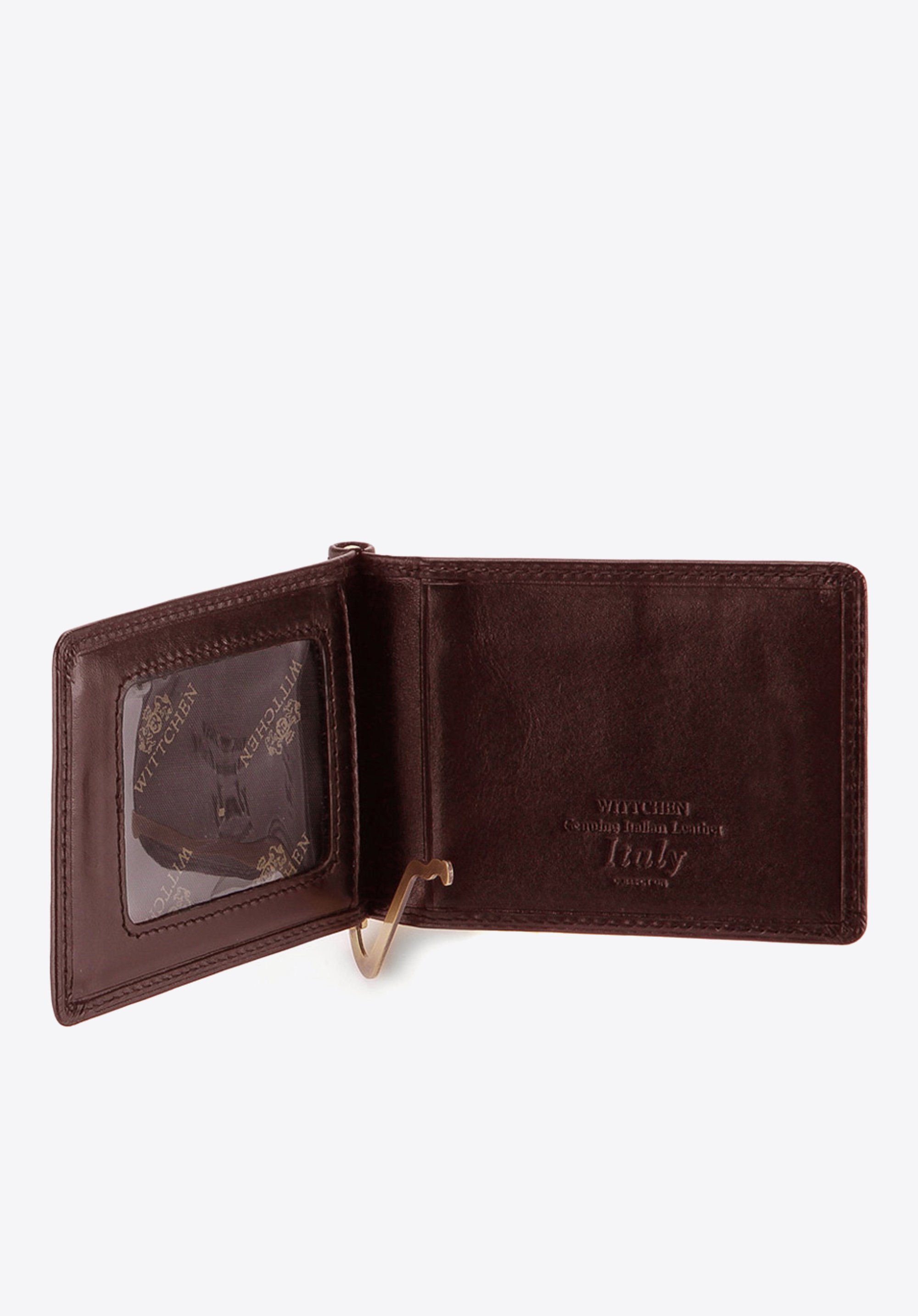 Mały skórzany portfel z wytłoczonym logo marki to wyjątkowo gustowny i poręczny dodatek. Model posiada praktyczne wykończenia: metalowy klips na banknoty oraz zamknięcie na magnes. Dzięki temu zawartość z pewnością pozostanie na miejscu.
