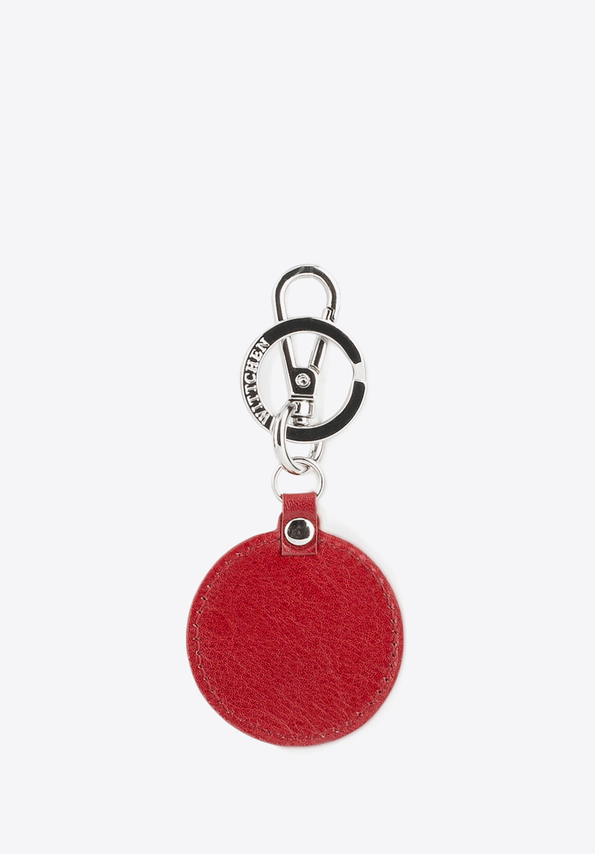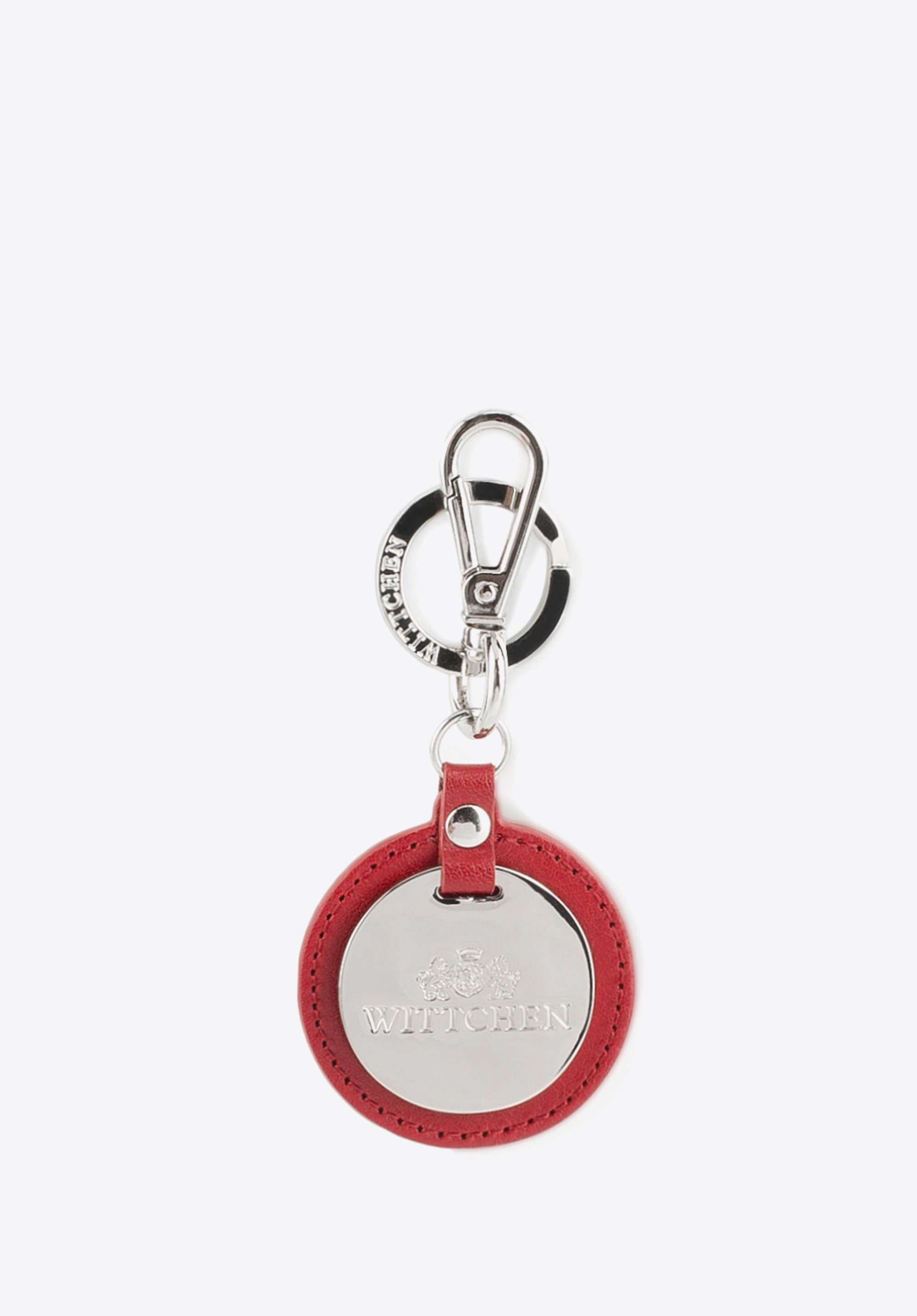Skórzany brelok Elegancki brelok w kształcie koła wykonany ze skóry naturalnej oraz metalowej cześci, na której wygrawerowano logo ozdobione herbem WITTCHEN. Model jest wyposażony w kółko i karabińczyk do przypięcia. Nasza rada: portfel, etui, teczka, torebka czy klucze zyskają na ekskluzywnym wyglądzie za sprawą skórzanego breloka z elementamiw kolorze srebra.