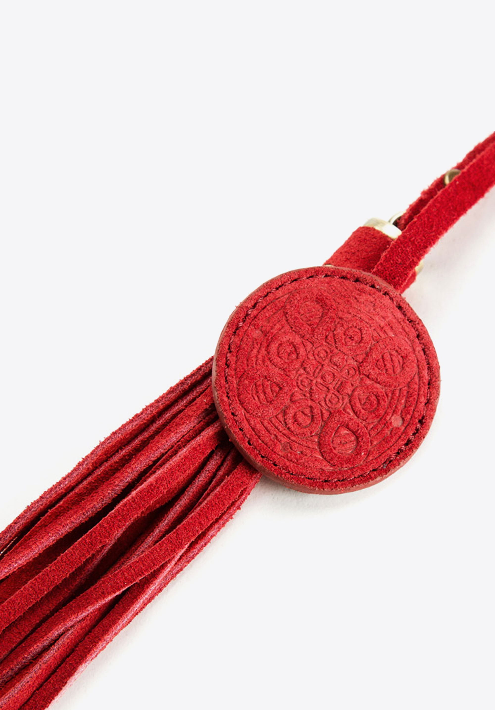 Breloczek na karabińczyku w formie ozdobnego chwosta z frędzlami. Model doskonale sprawdzi się jako zawieszka do torebki, czy jako breloczek do kluczy.