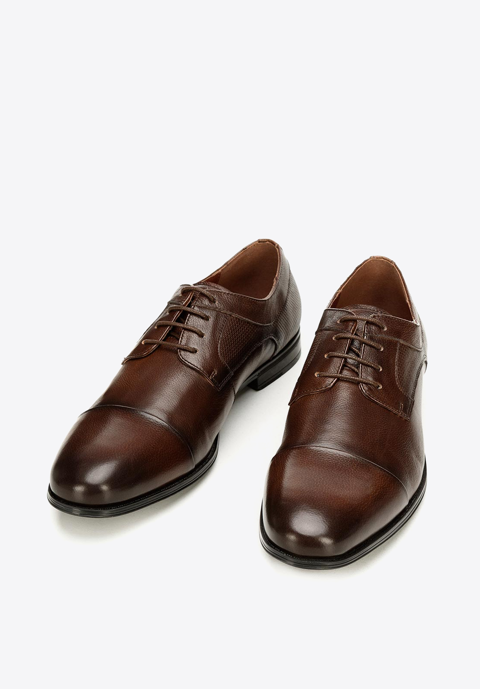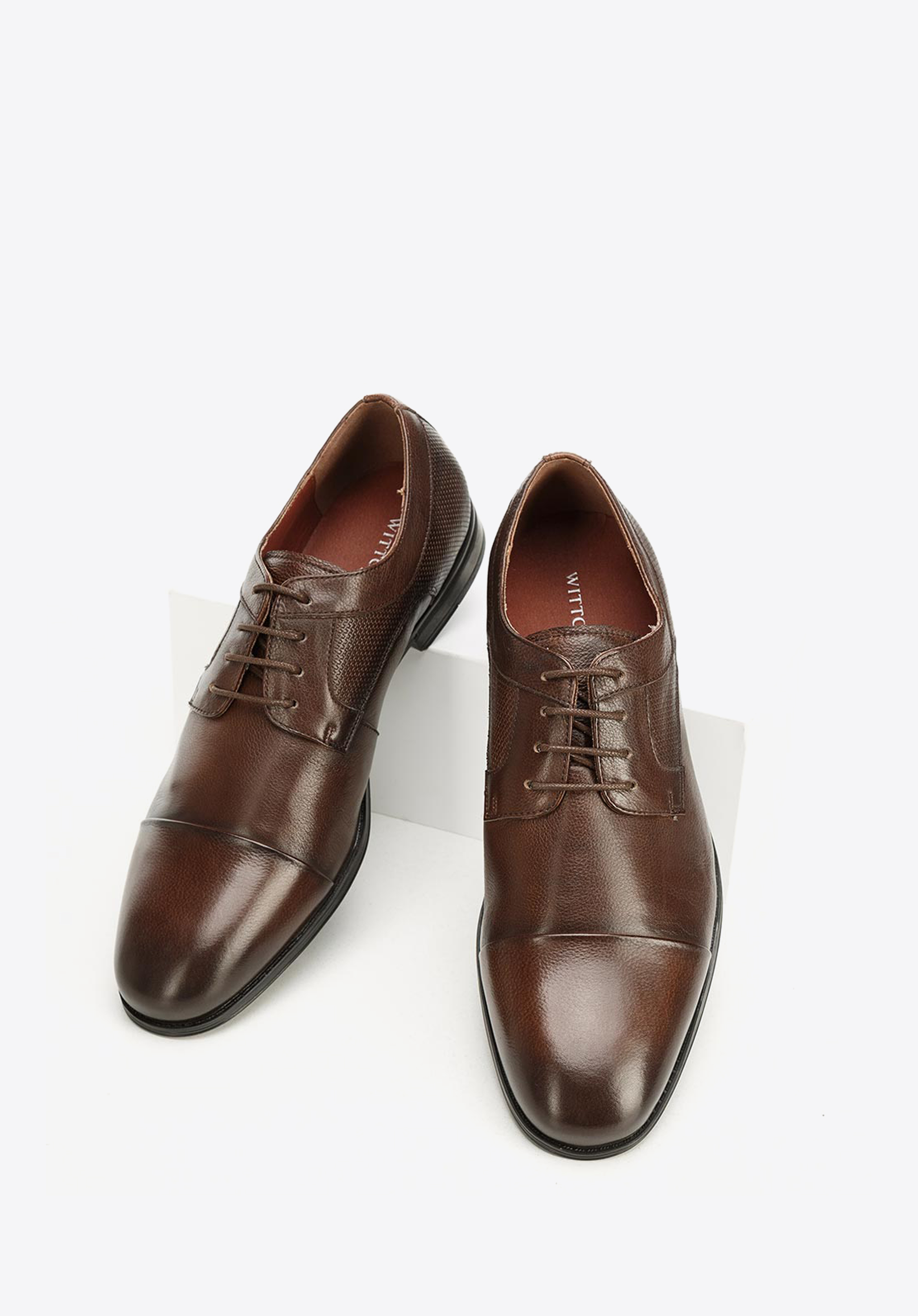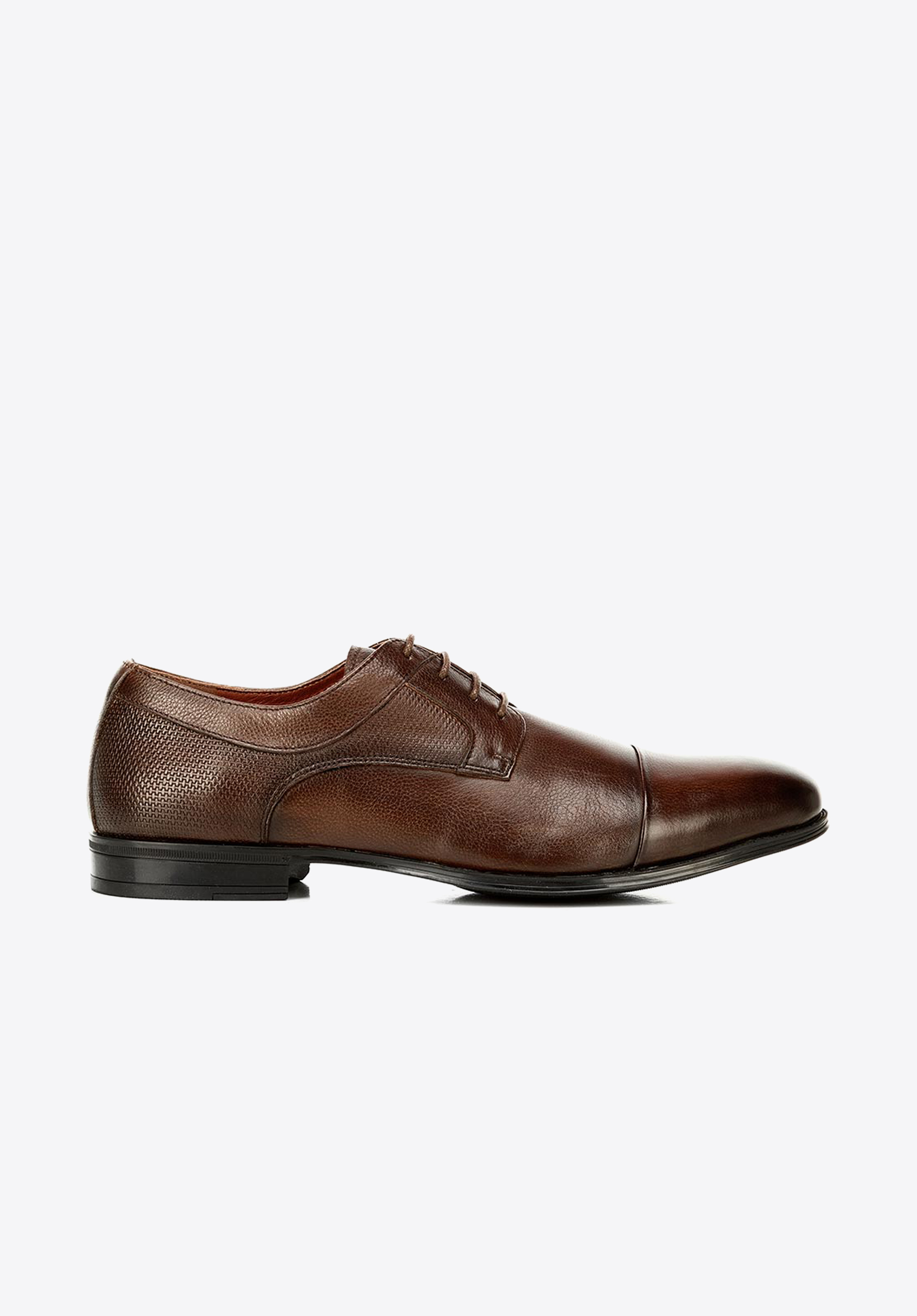 Te klasyczne męskie buty typu derby doskonale nadają się do garnituru. Są na tyle stonowane, by nie skupiać na sobie uwagi, ale jedocześnie tak stylowe, że nadadzą się i na najbardziej eleganckie okazje, na przykład na ślub. Wykonane są z wysokiej jakości tłoczonej skory, która z wiekiem jeszcze lepiej dopasuje się do Twojej stopy. Migdałowy kształt noska i smukły profil buta nada Twojej sylwetce właściwych proporcji. Te skórzane buty będą pasowały do garniturów o różnym stopniu formalności, jak również do zestawów koordynowanych. Z pewnością jest to jeden z najbardziej stylowych rodzajów męskiego obuwia.