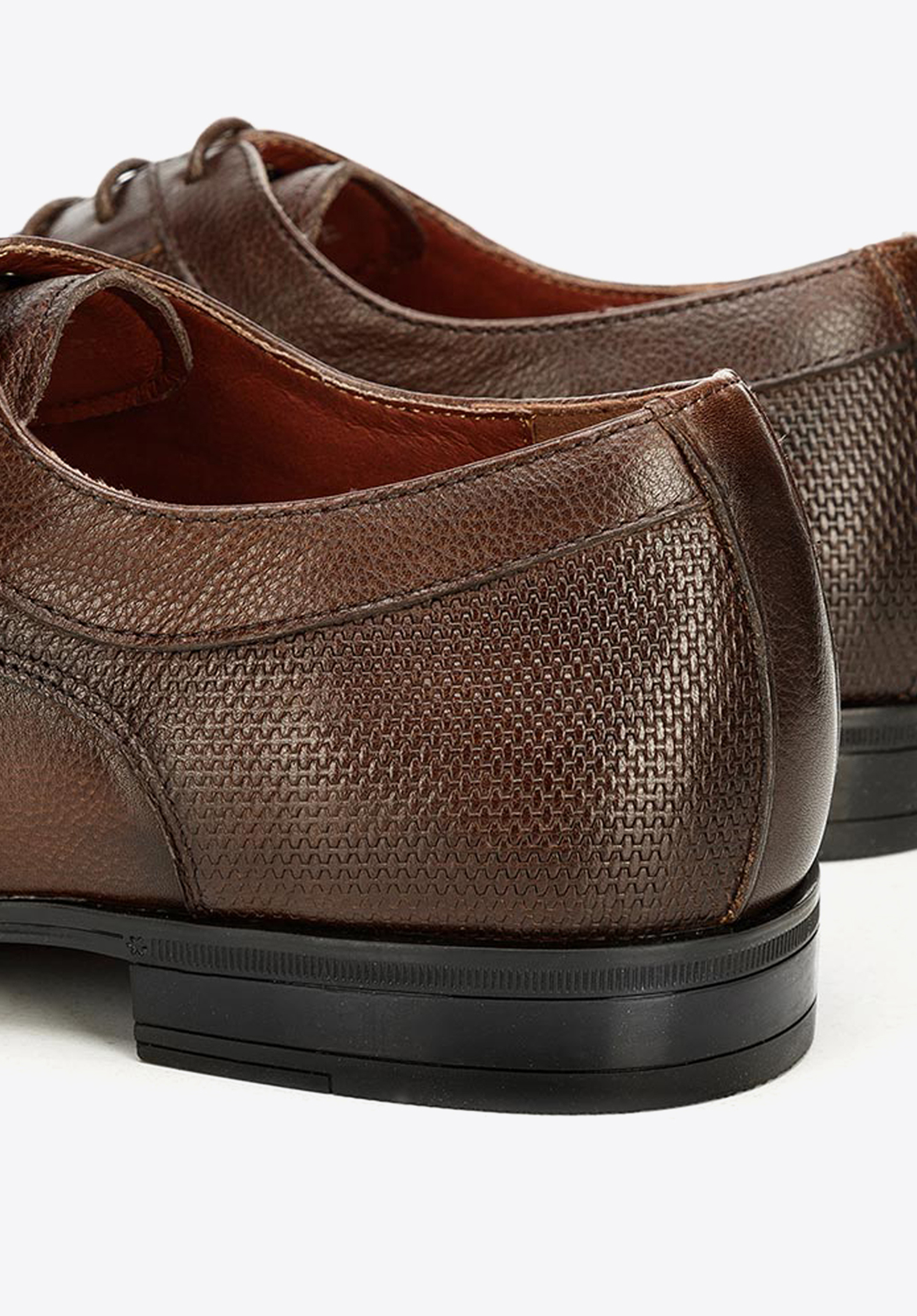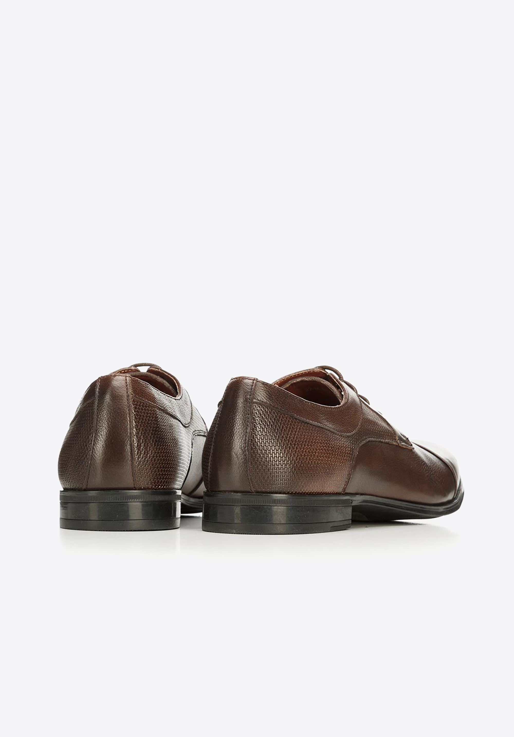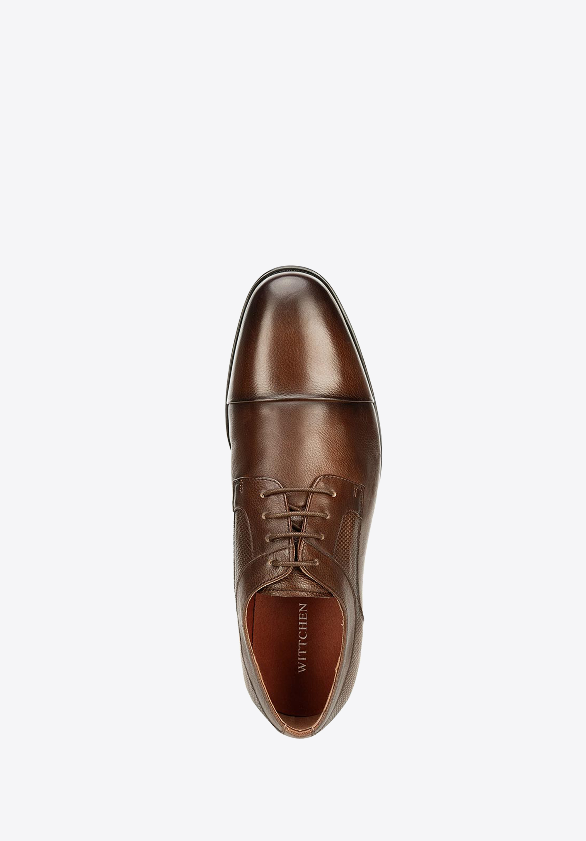 Te klasyczne męskie buty typu derby doskonale nadają się do garnituru. Są na tyle stonowane, by nie skupiać na sobie uwagi, ale jedocześnie tak stylowe, że nadadzą się i na najbardziej eleganckie okazje, na przykład na ślub. Wykonane są z wysokiej jakości tłoczonej skory, która z wiekiem jeszcze lepiej dopasuje się do Twojej stopy. Migdałowy kształt noska i smukły profil buta nada Twojej sylwetce właściwych proporcji. Te skórzane buty będą pasowały do garniturów o różnym stopniu formalności, jak również do zestawów koordynowanych. Z pewnością jest to jeden z najbardziej stylowych rodzajów męskiego obuwia.