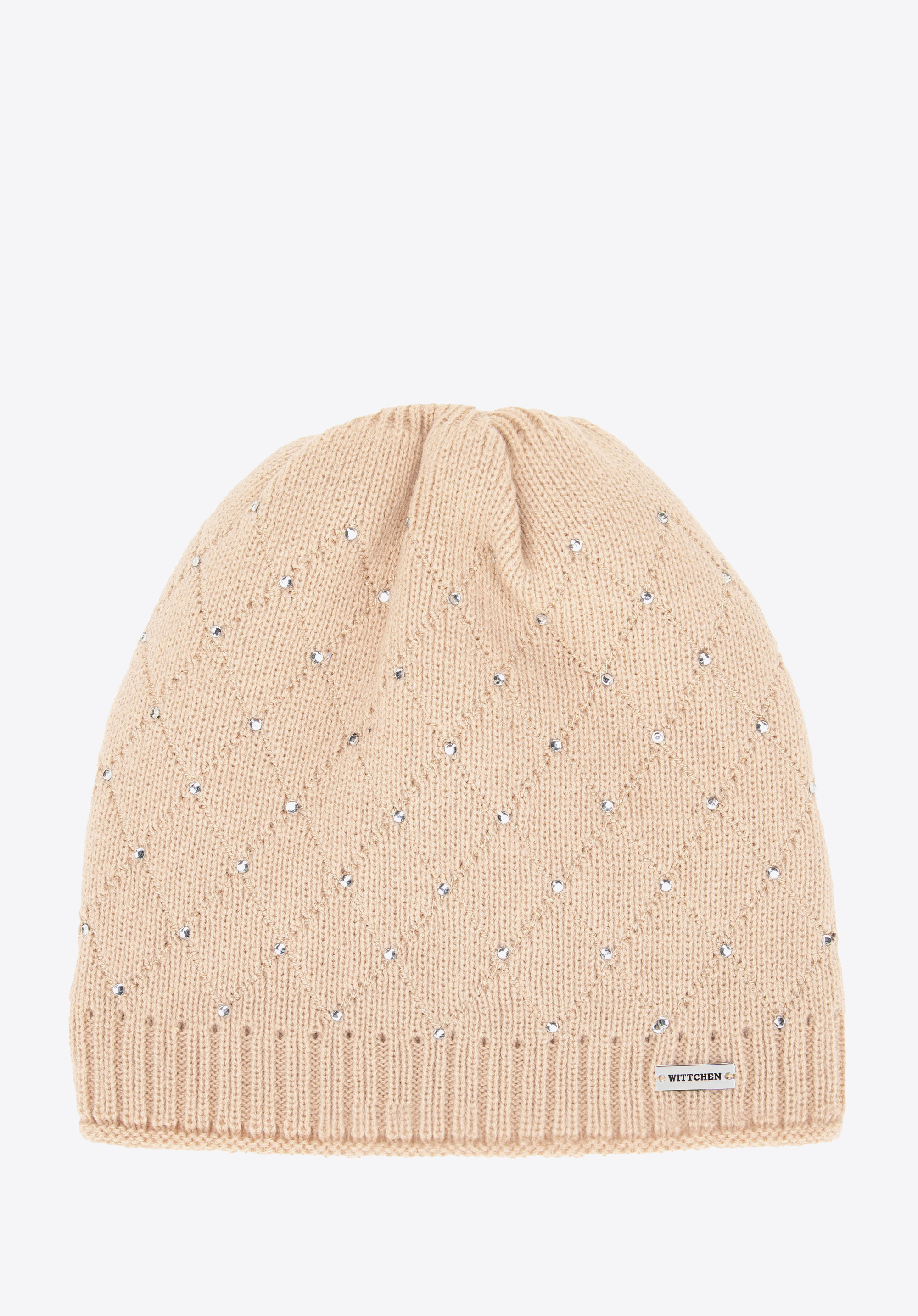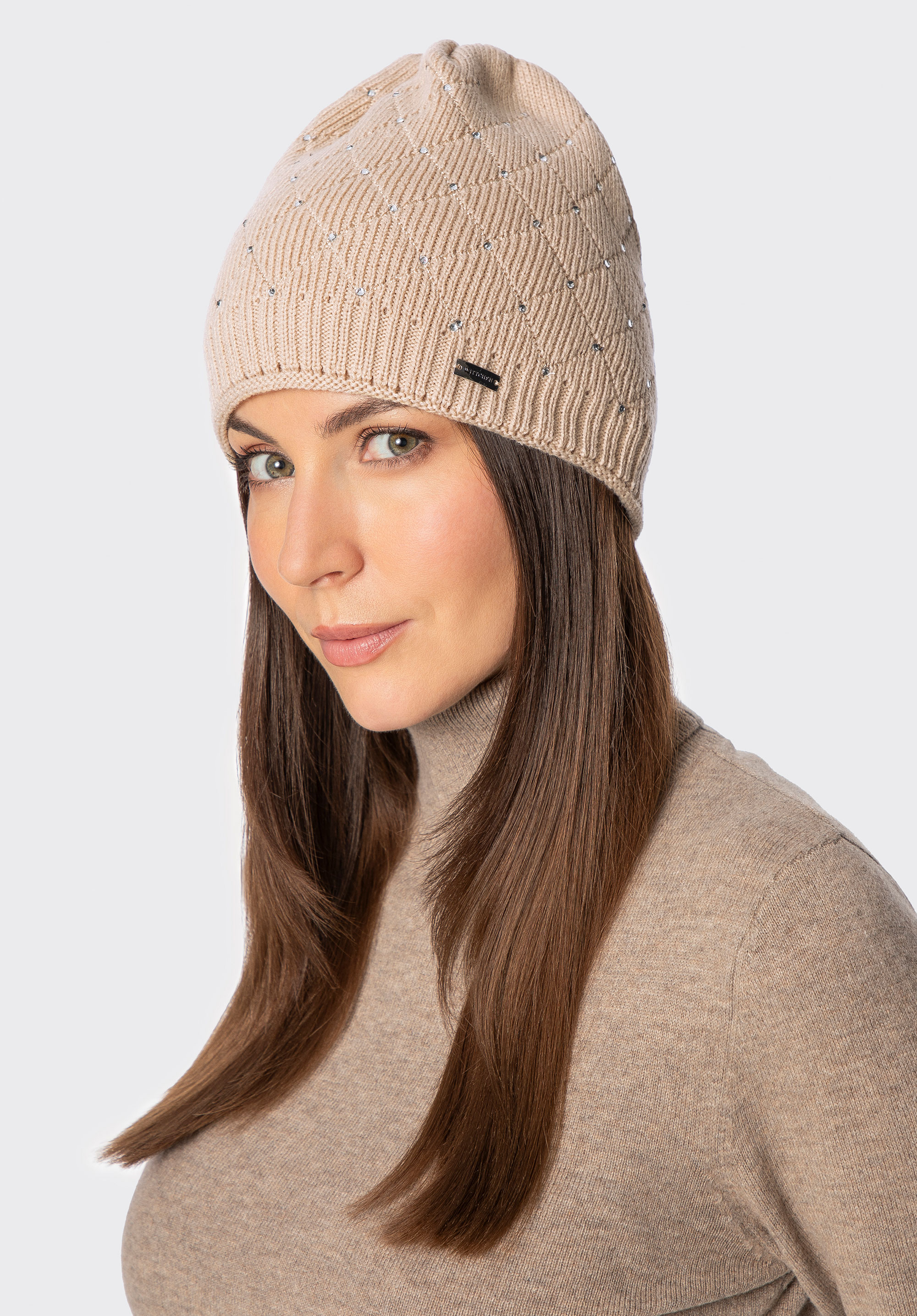 Czapka damska z geometrycznym wzorem i subtelnym blaskiem