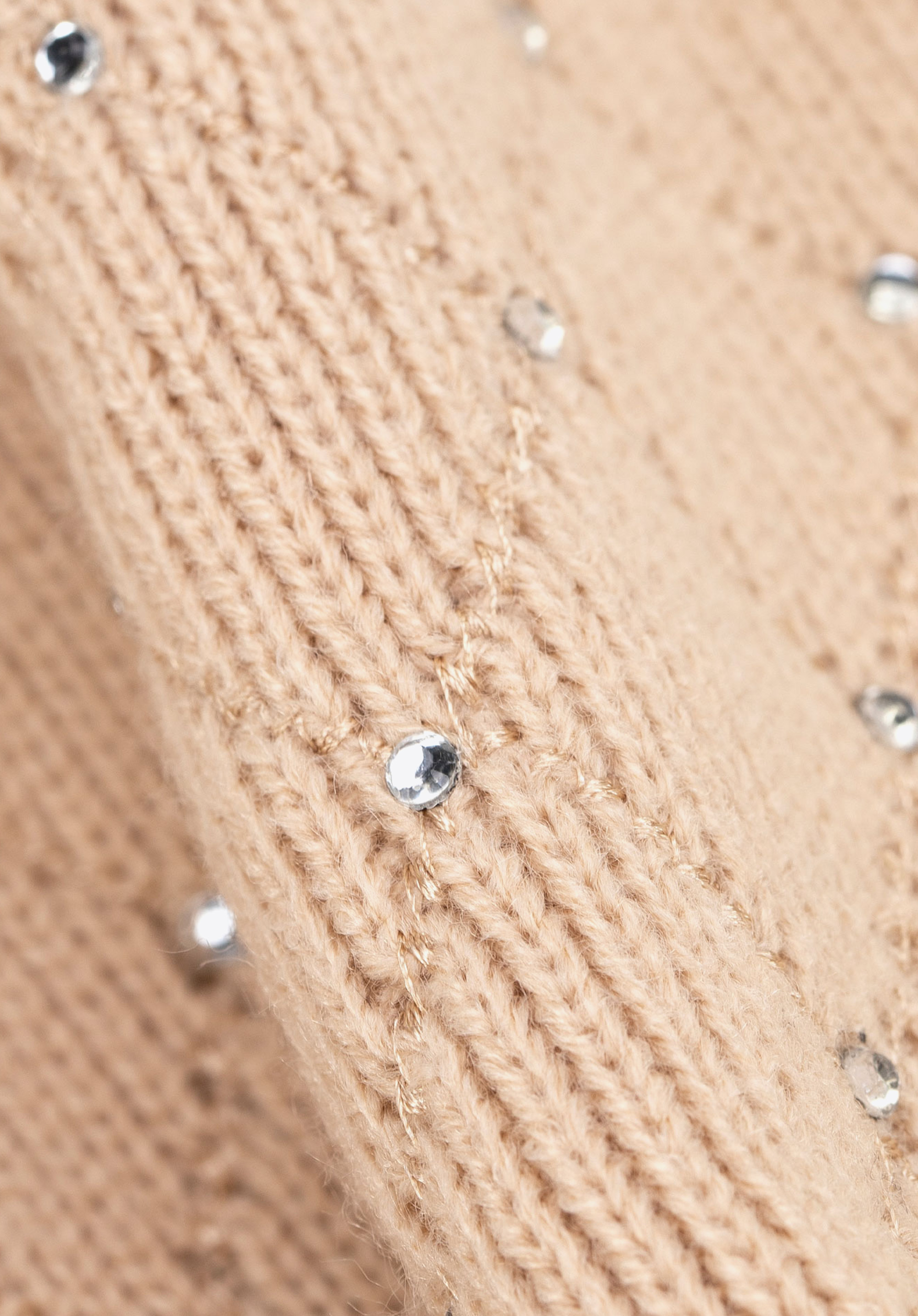 - Ozdoby: Małe cyrkonie rozmieszczone na czapce dodają jej delikatnego połysku, wzbogacając całość stylizacji o luksusowy detal.