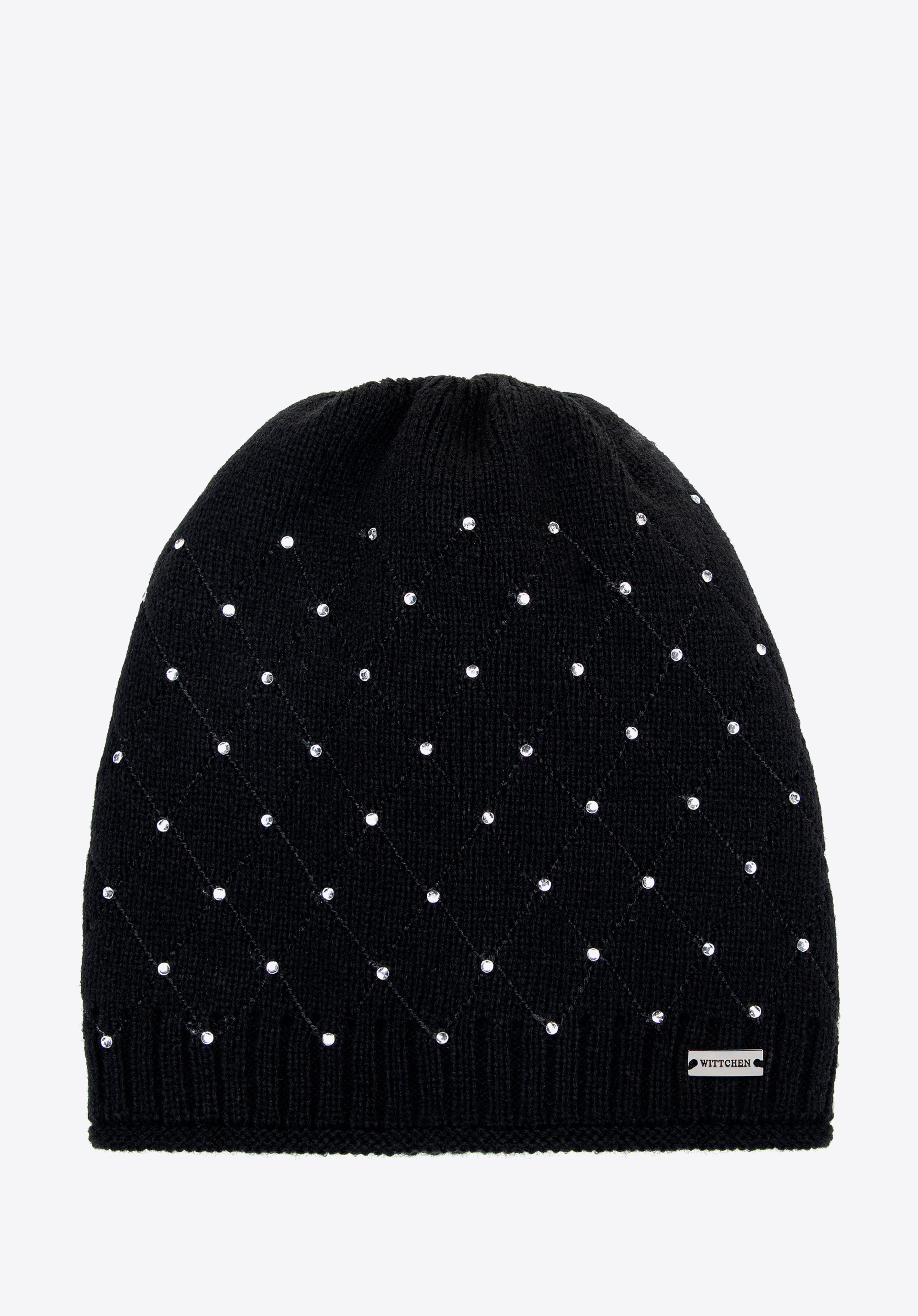Czapka damska z geometrycznym wzorem i subtelnym blaskiem