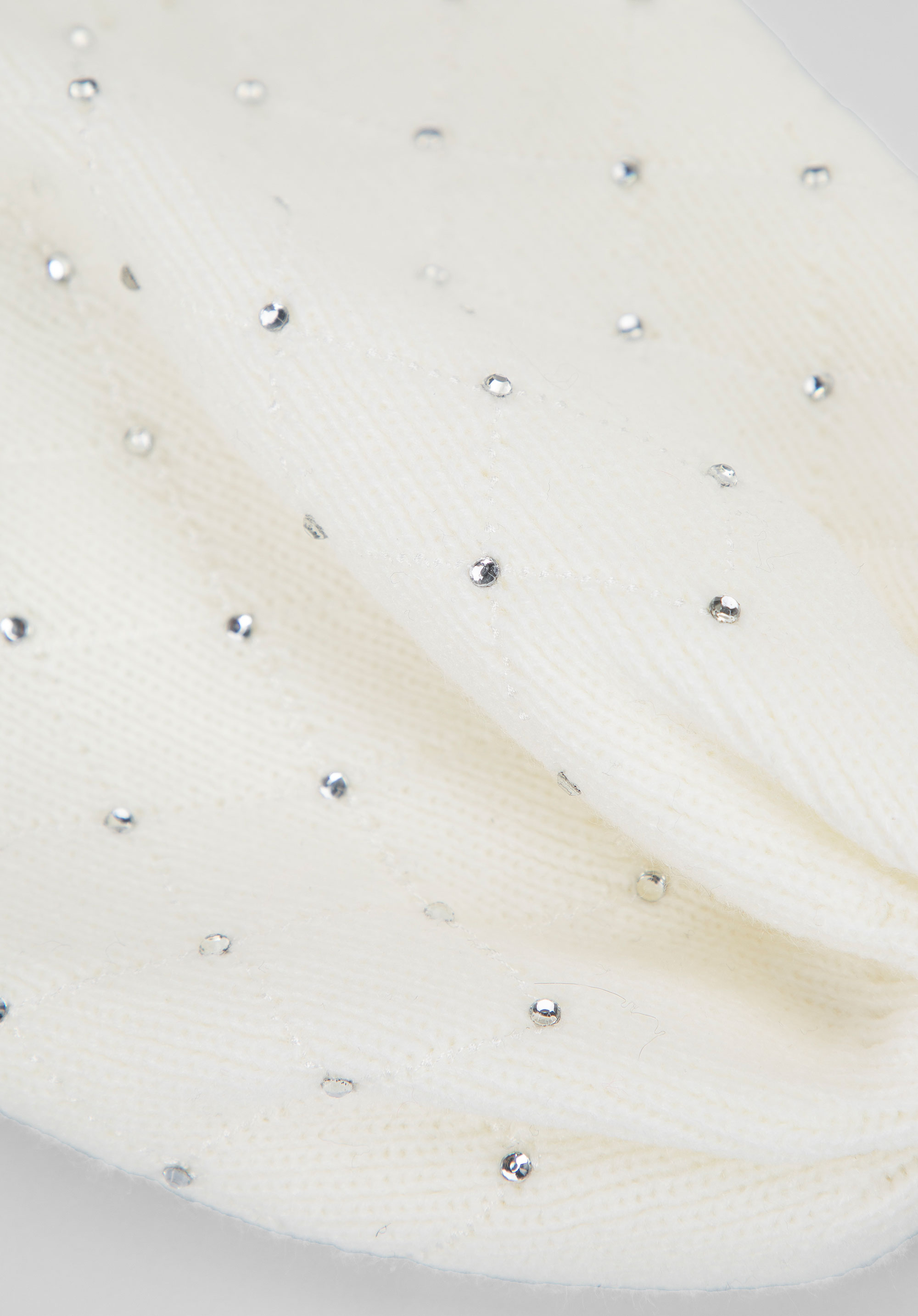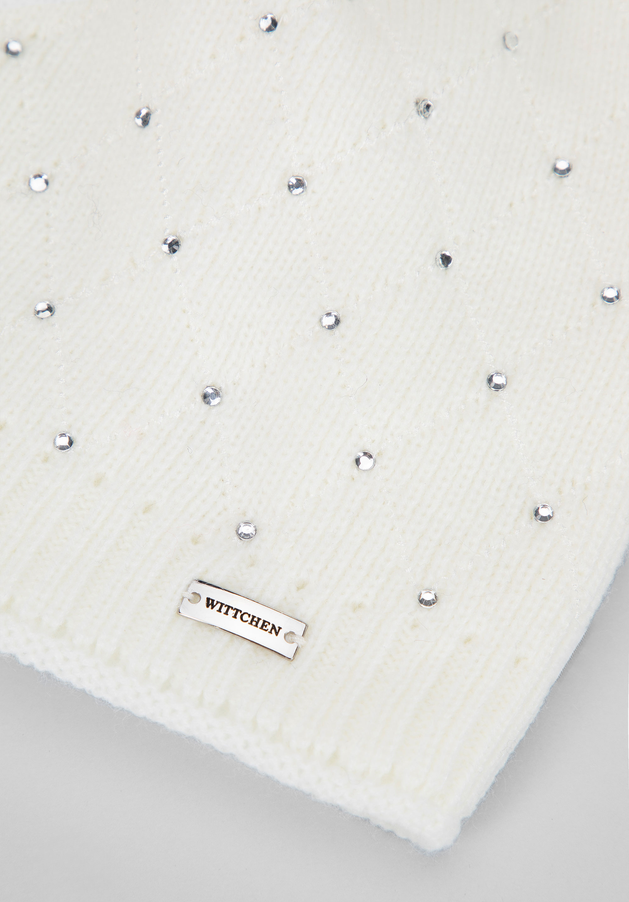 - Ozdoby: Małe cyrkonie rozmieszczone na czapce dodają jej delikatnego połysku, wzbogacając całość stylizacji o luksusowy detal.