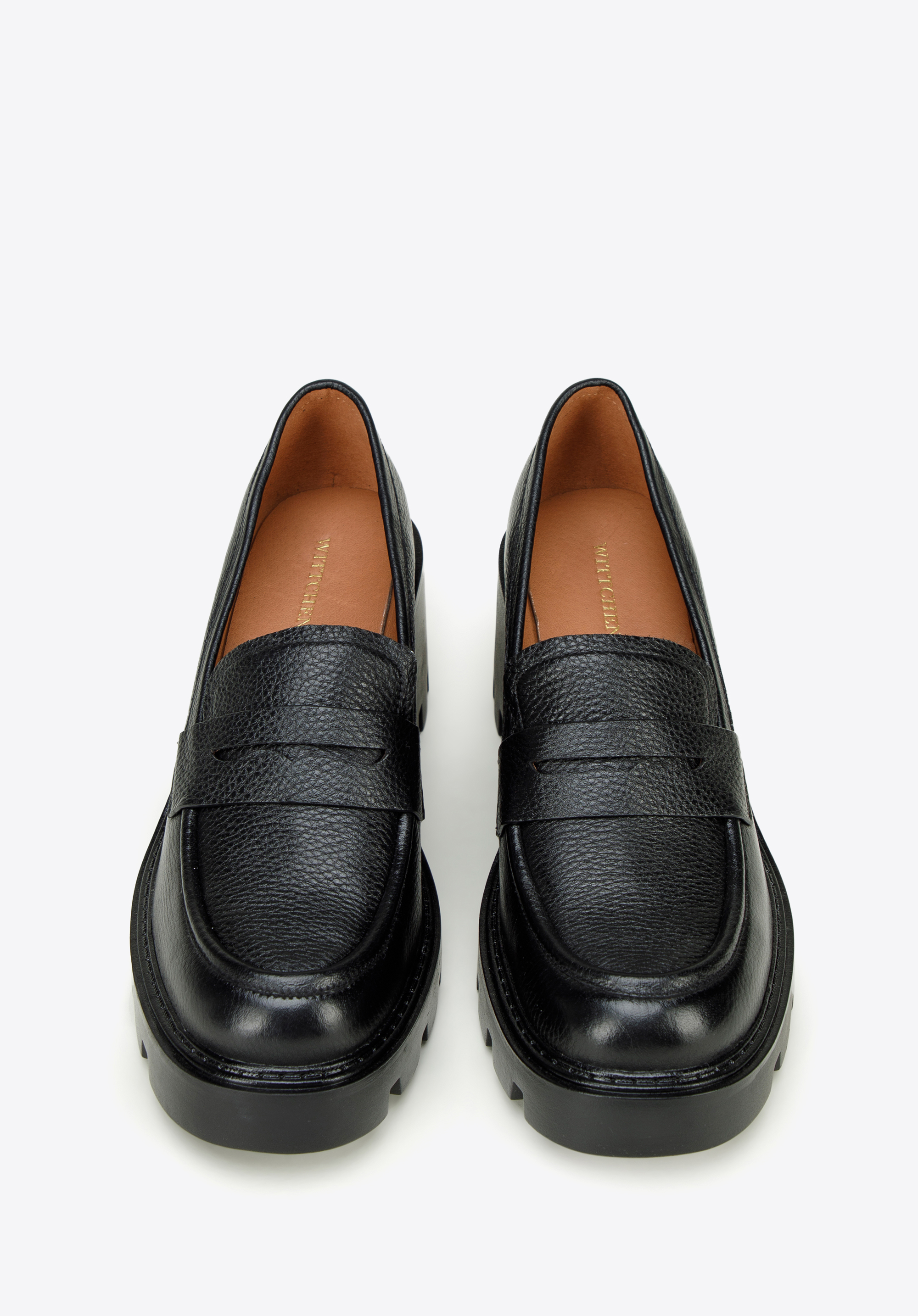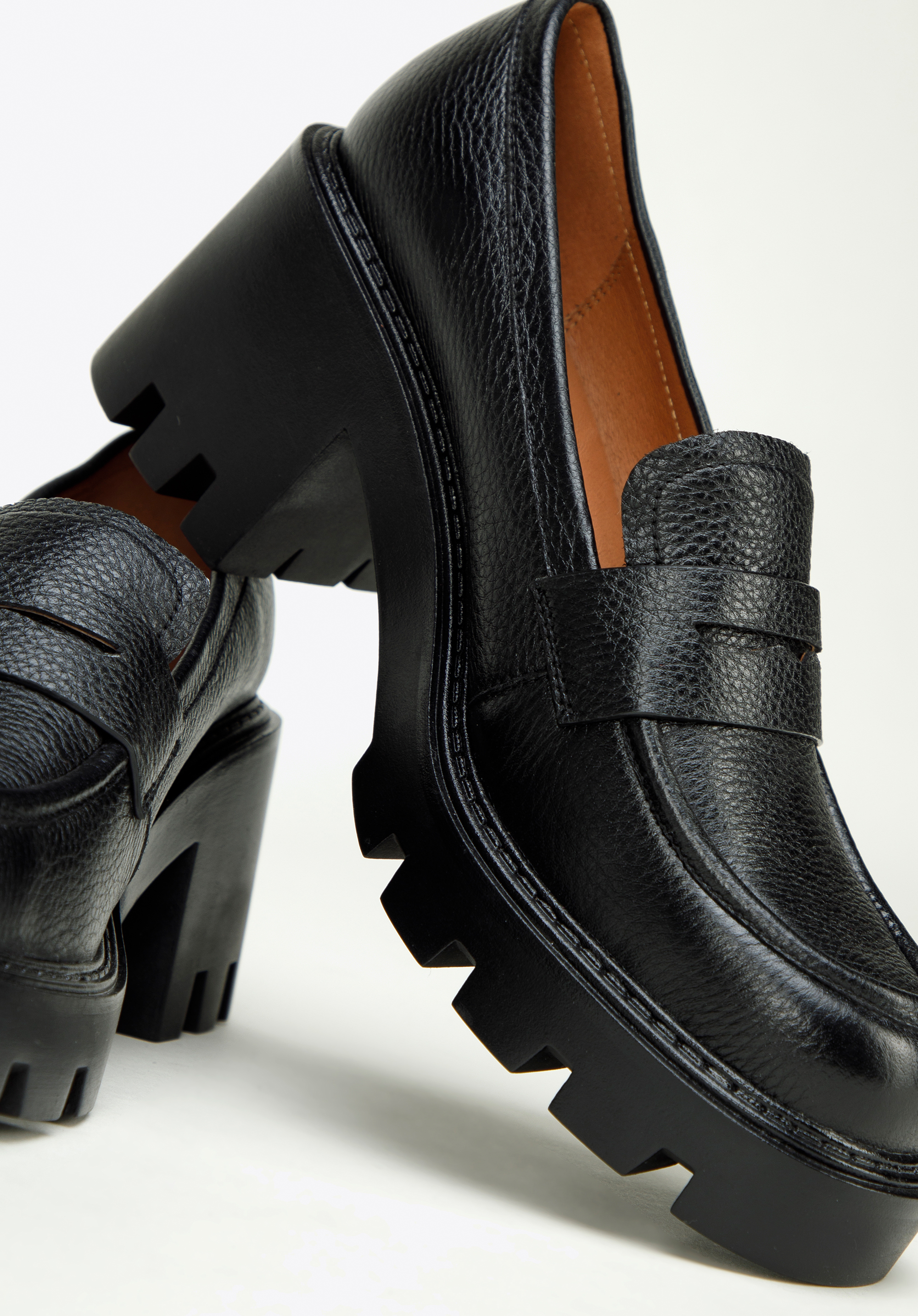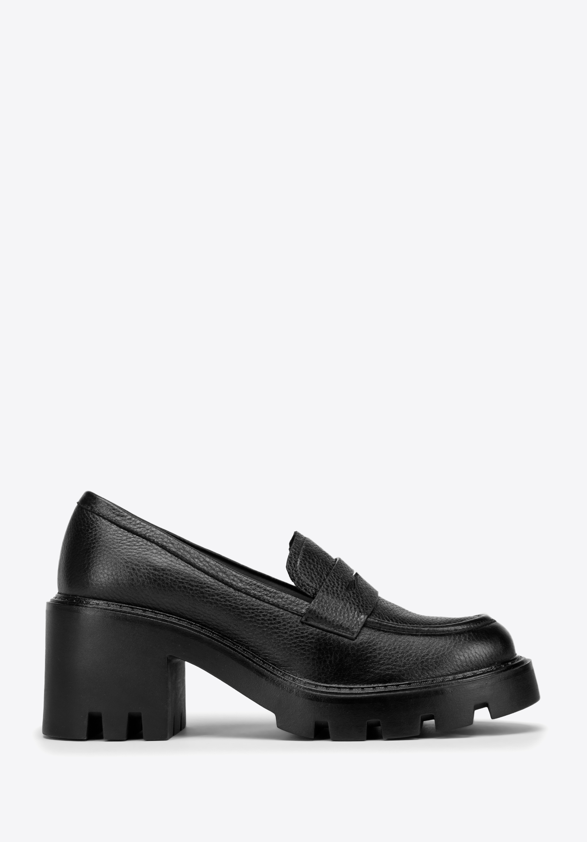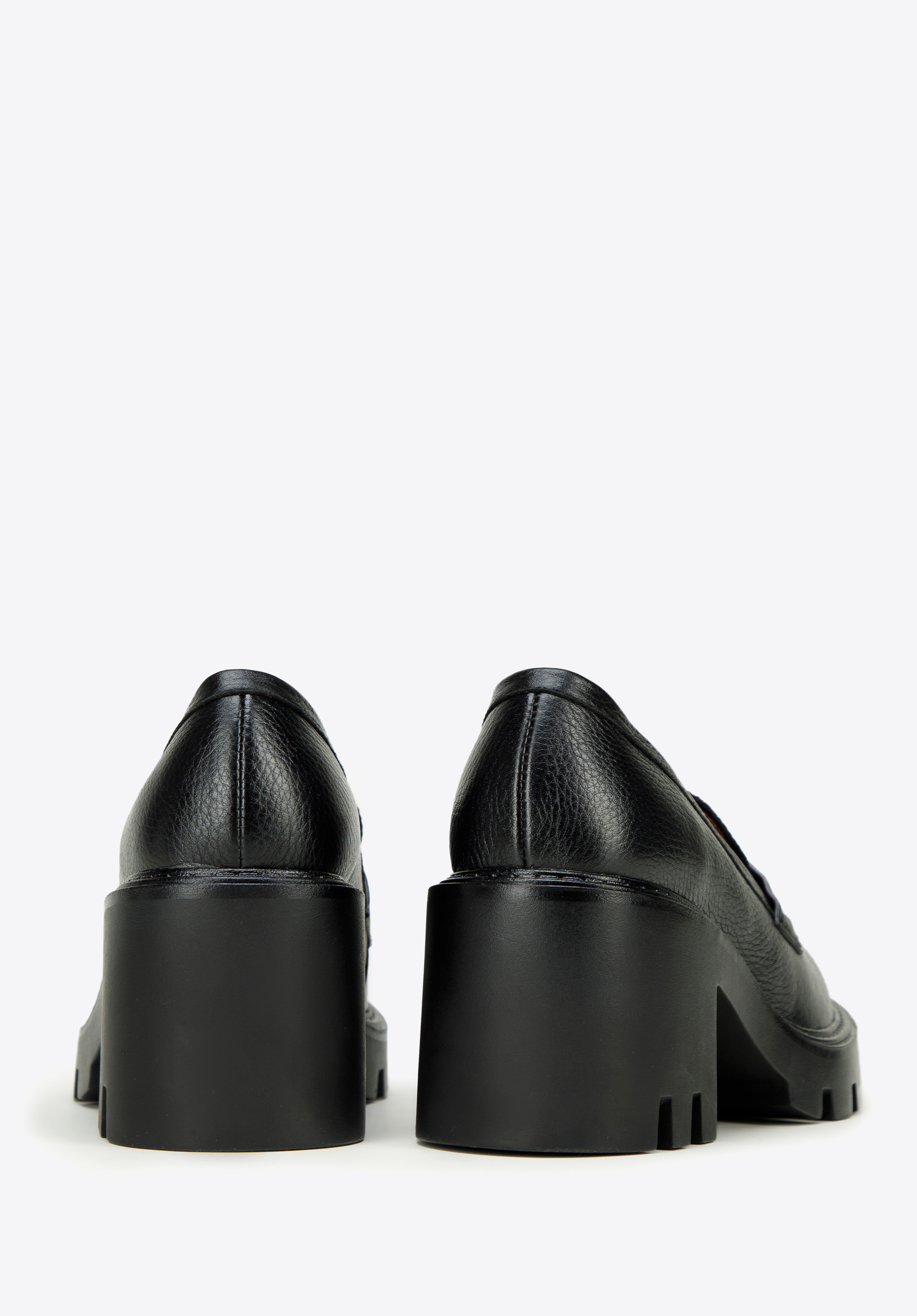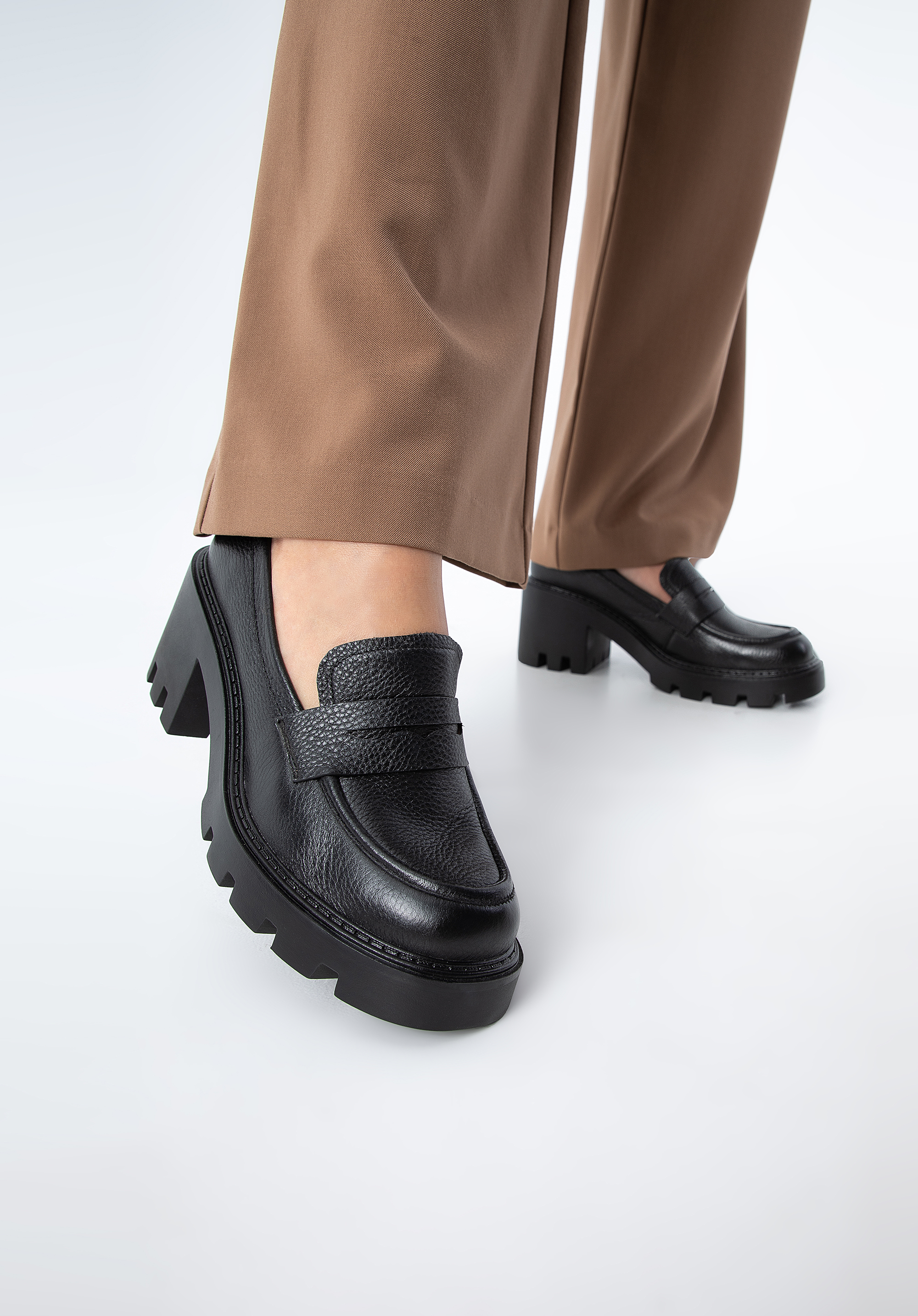 Czółenka skórzane na platformie z bieżnikiem przydadzą Ci się na wiele okazji, zarówno biznesowe spotkanie, jak i wyjście do kina.