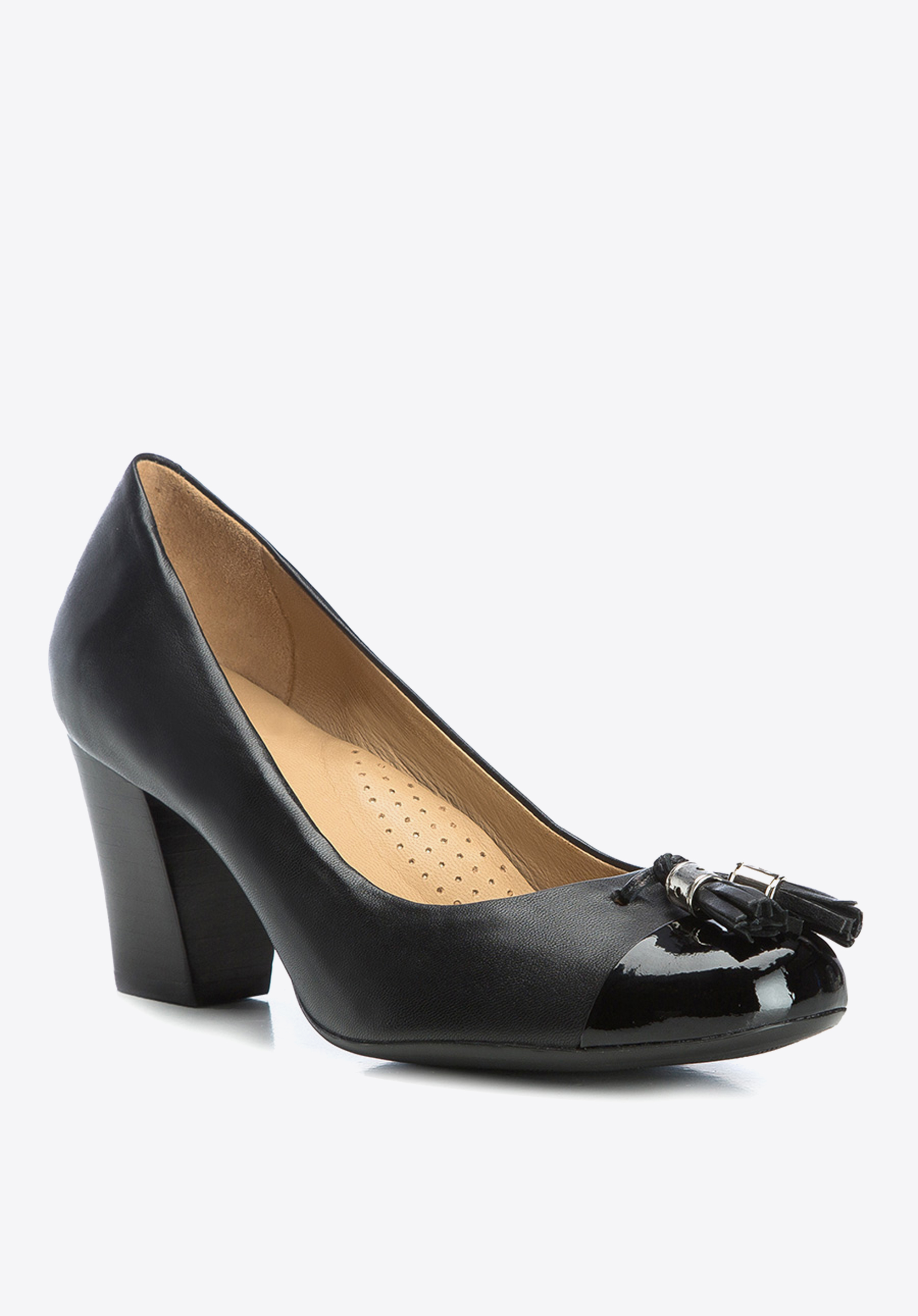 Niezwykle szykowne czółenka damskie, które urzekają zdobieniem w postaci dwóch małych chwostów na przodzie buta. Model ten to propozycja dla pań, które poszukują w modzie wygodnych i eleganckich rozwiązań.