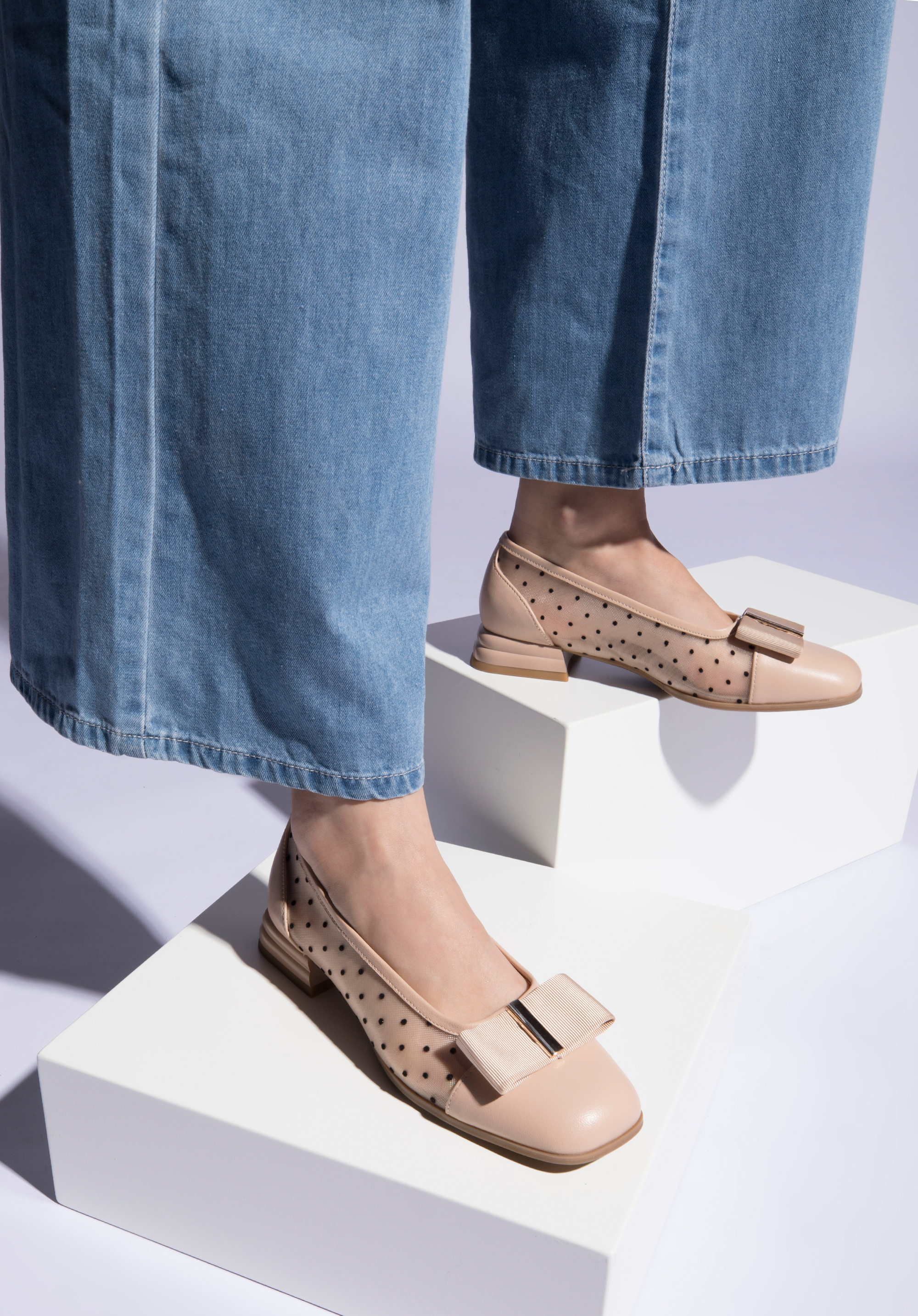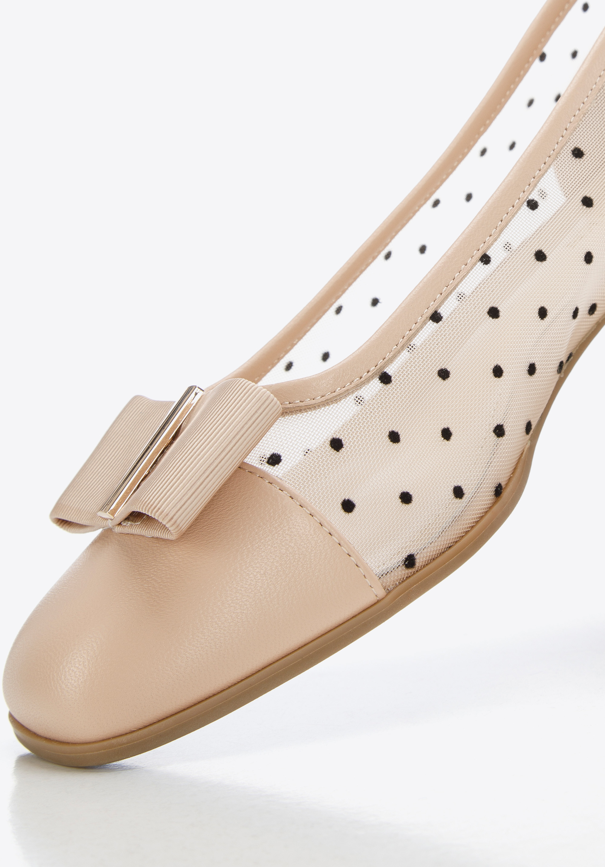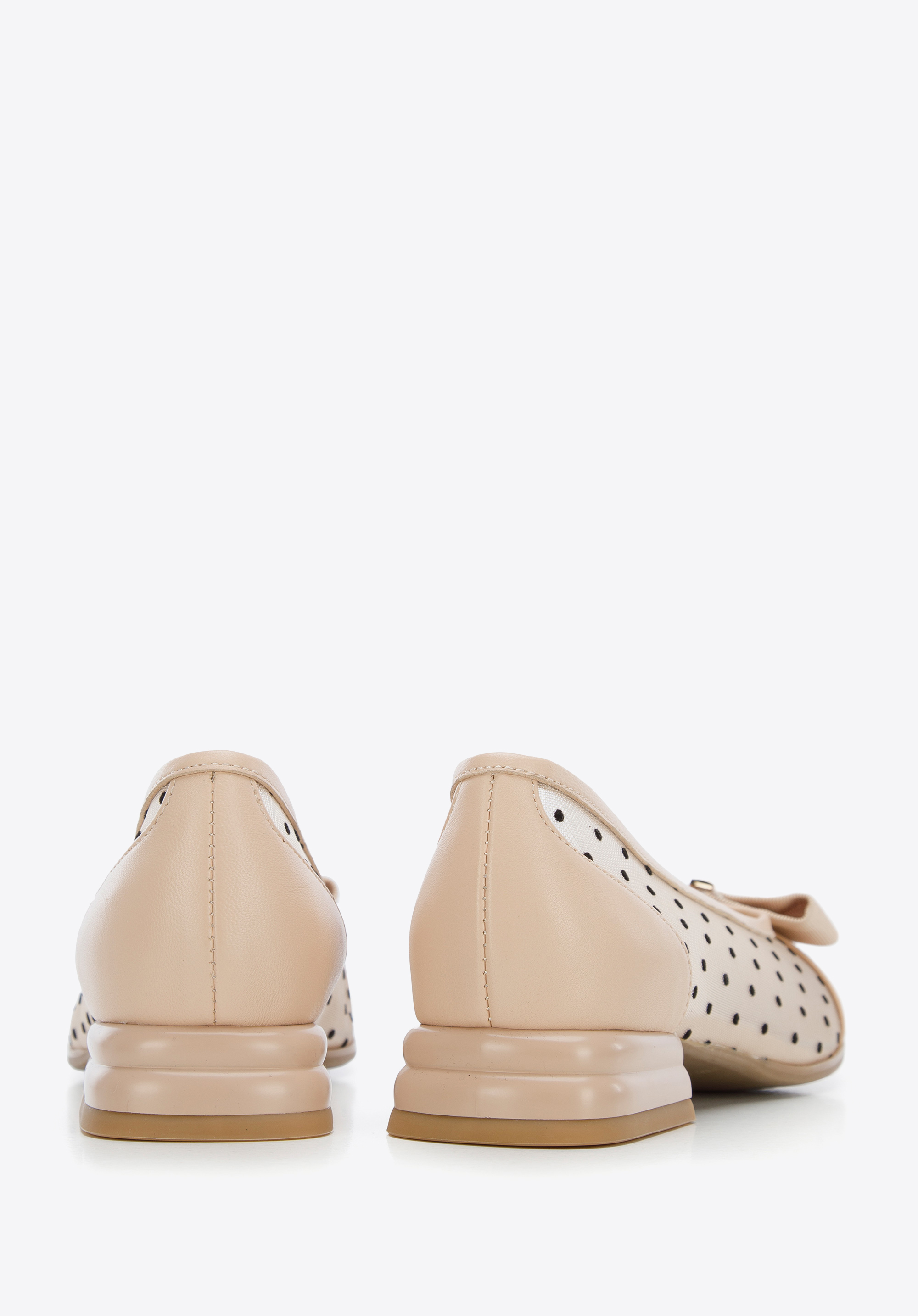 wykonane z transparentnej siateczki, a palce i piętę obszyte mają skórą naturalną.
