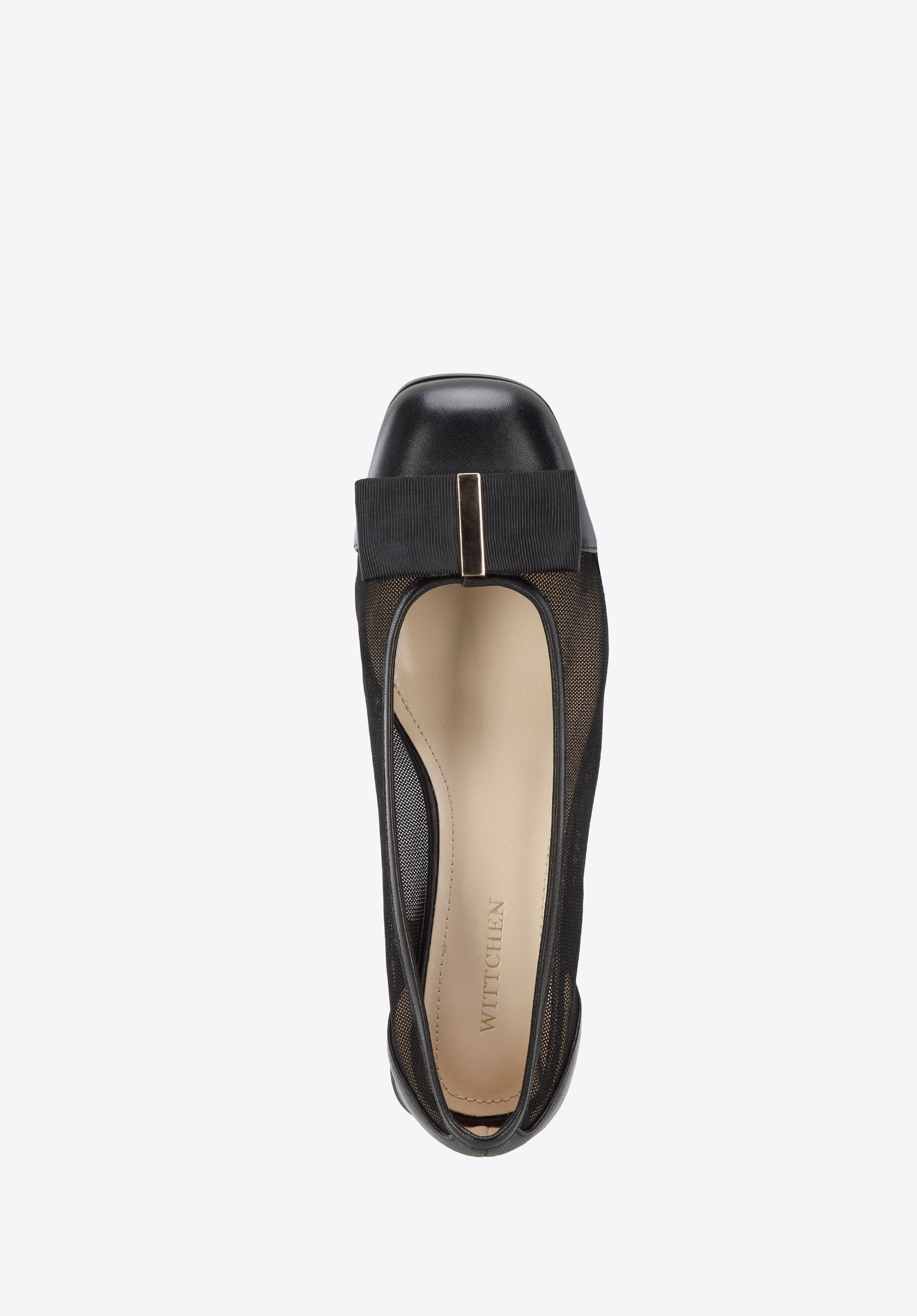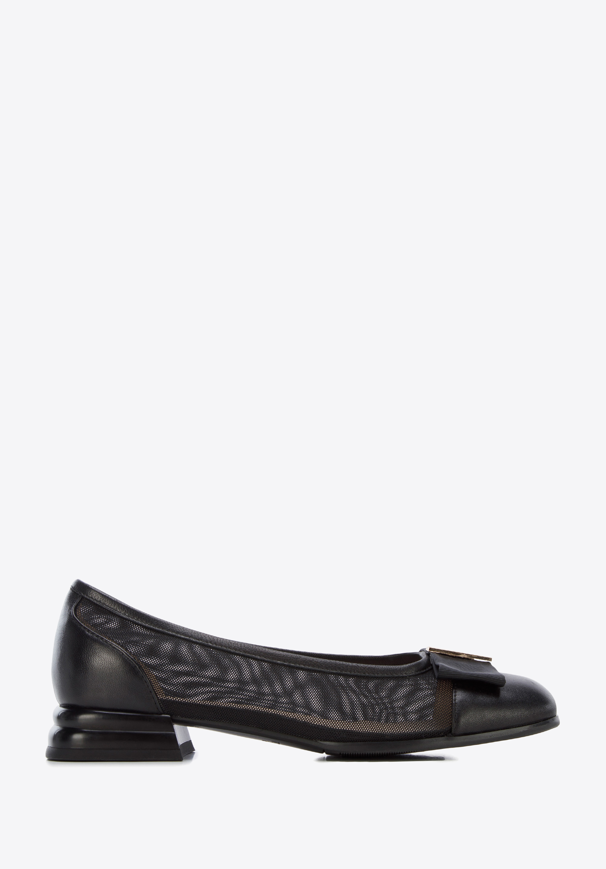 wykonane z transparentnej siateczki, a palce i piętę obszyte mają skórą naturalną.