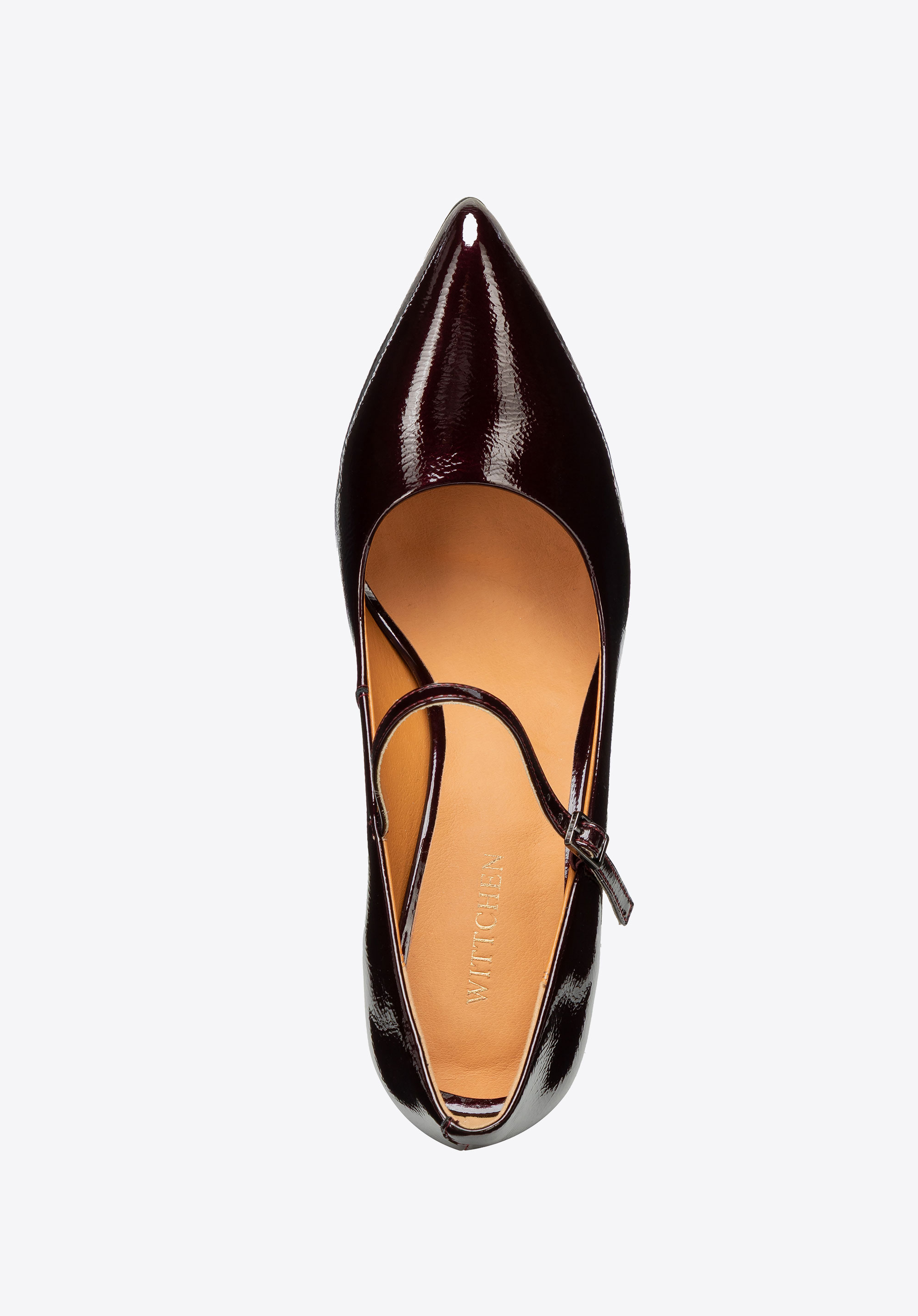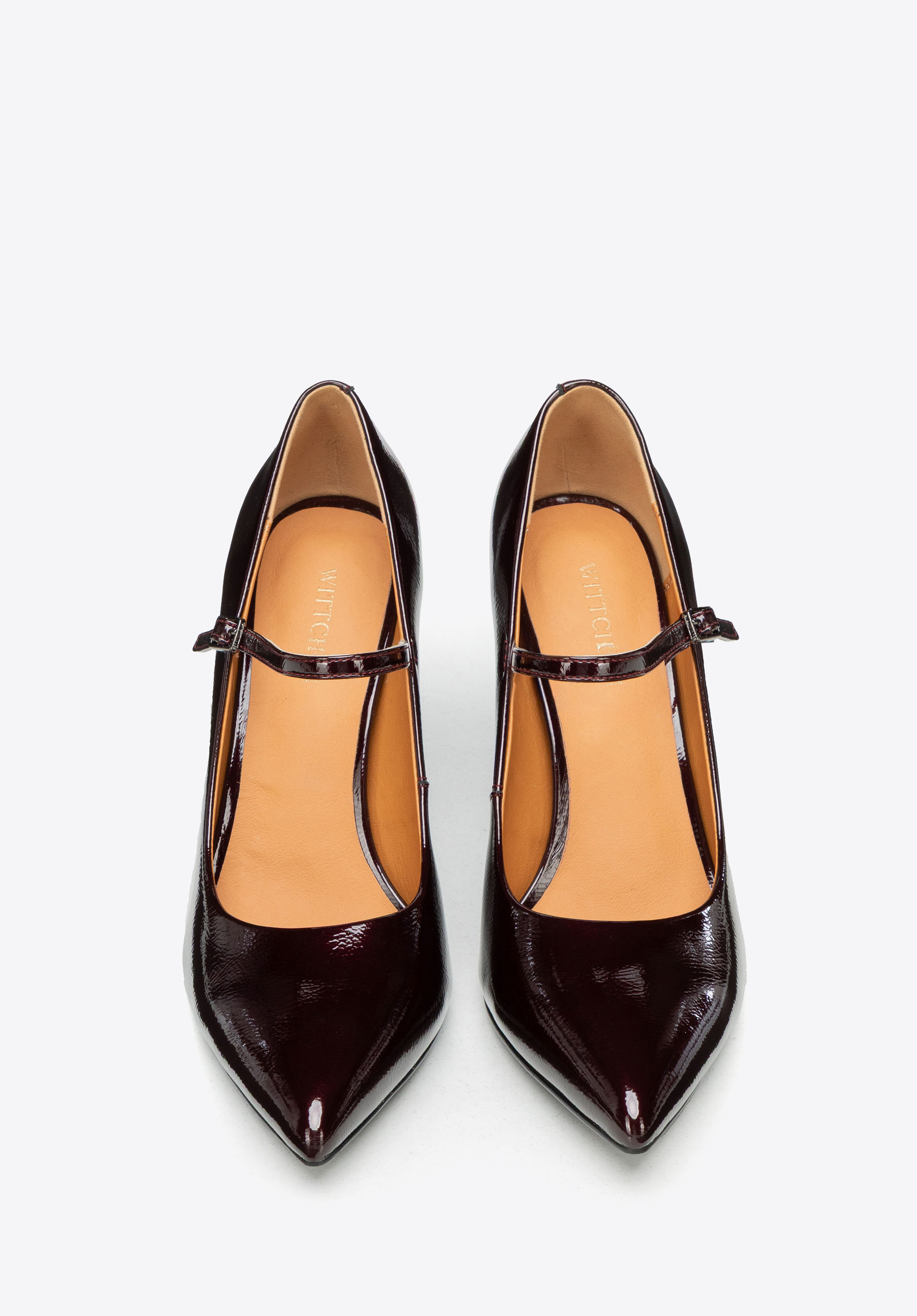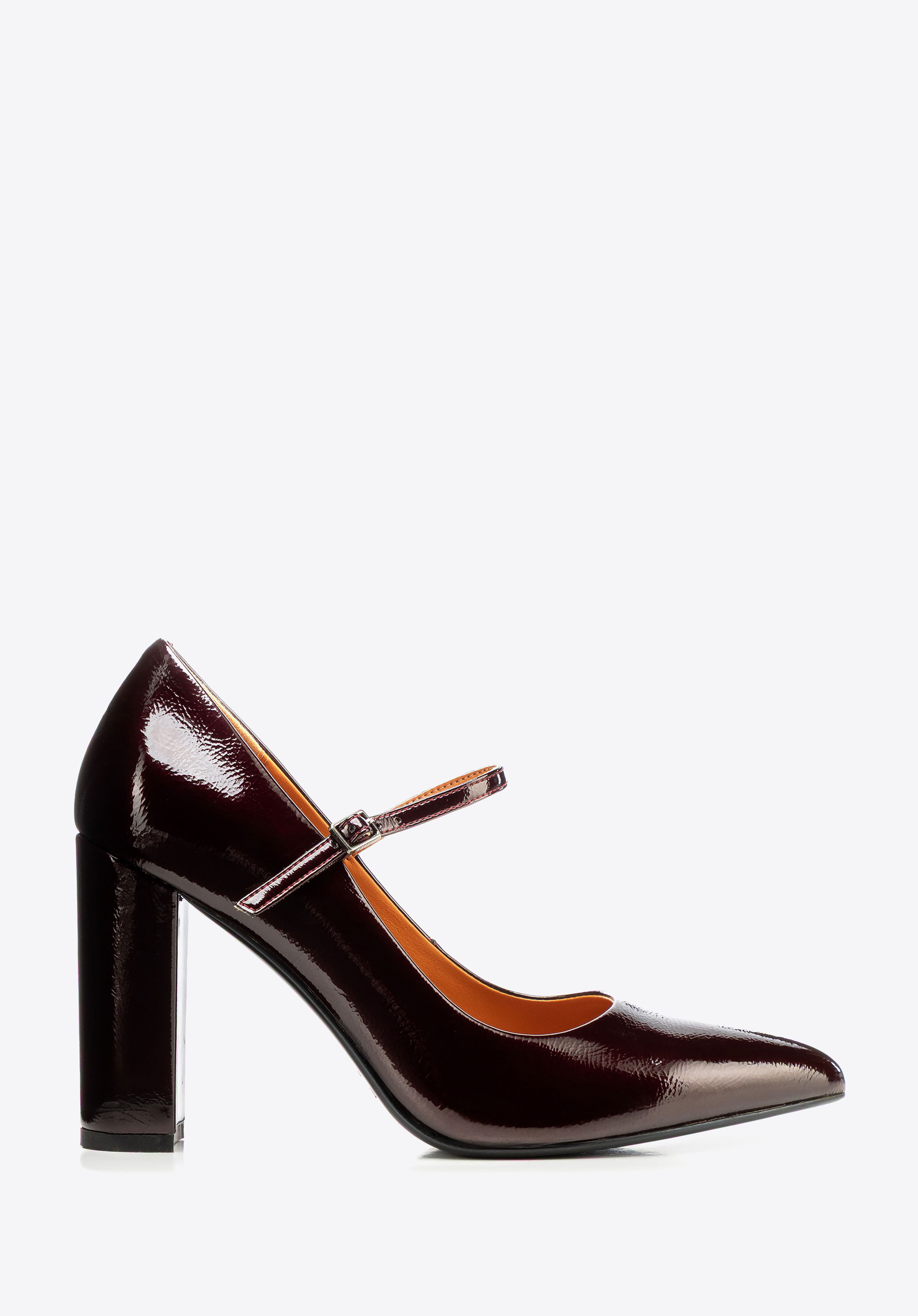 Czółenka ze skóry lakierowanej na wysokim słupku bordowe