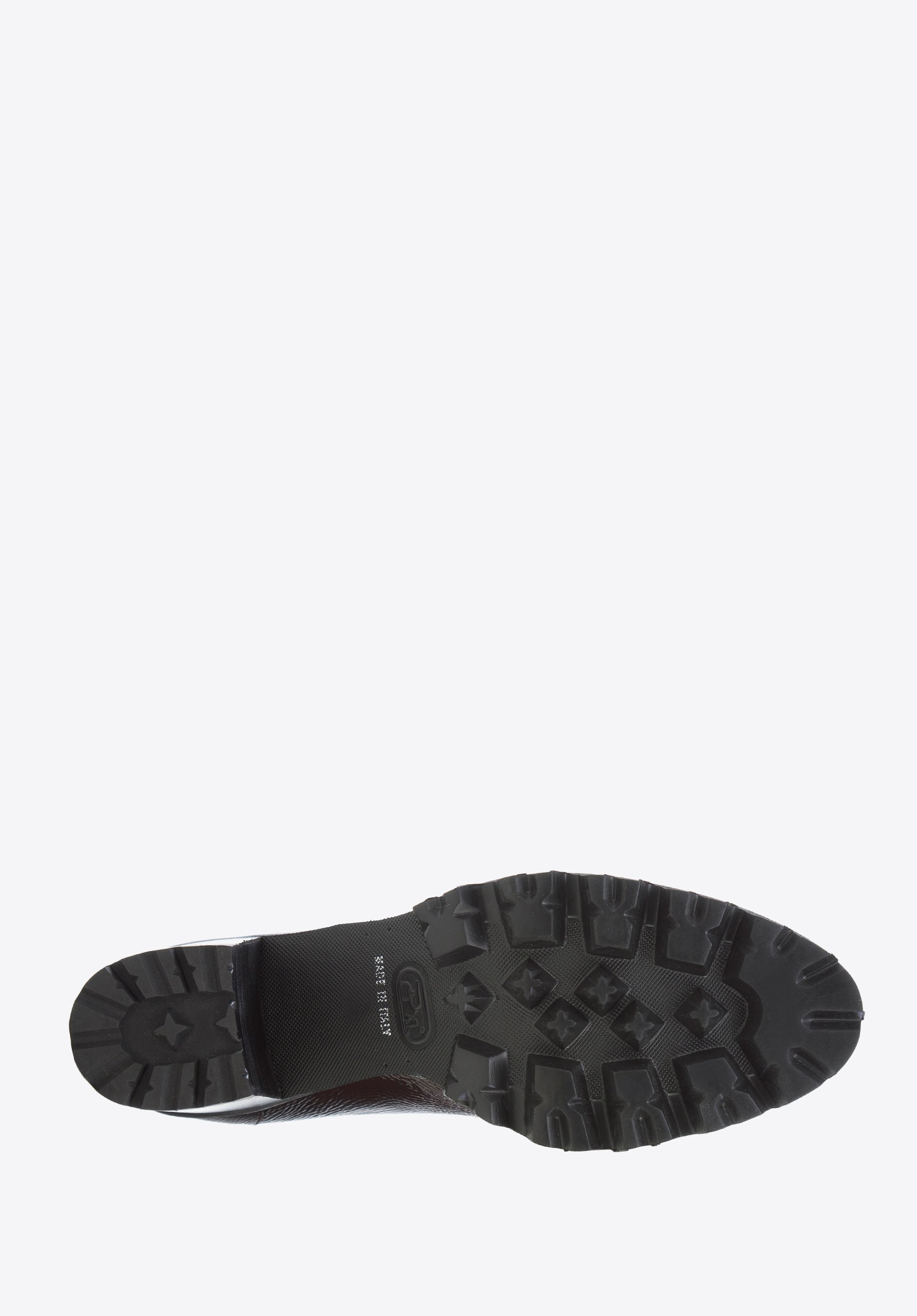 z wysokiej jakości lakierowanej skóry. Zdobi je