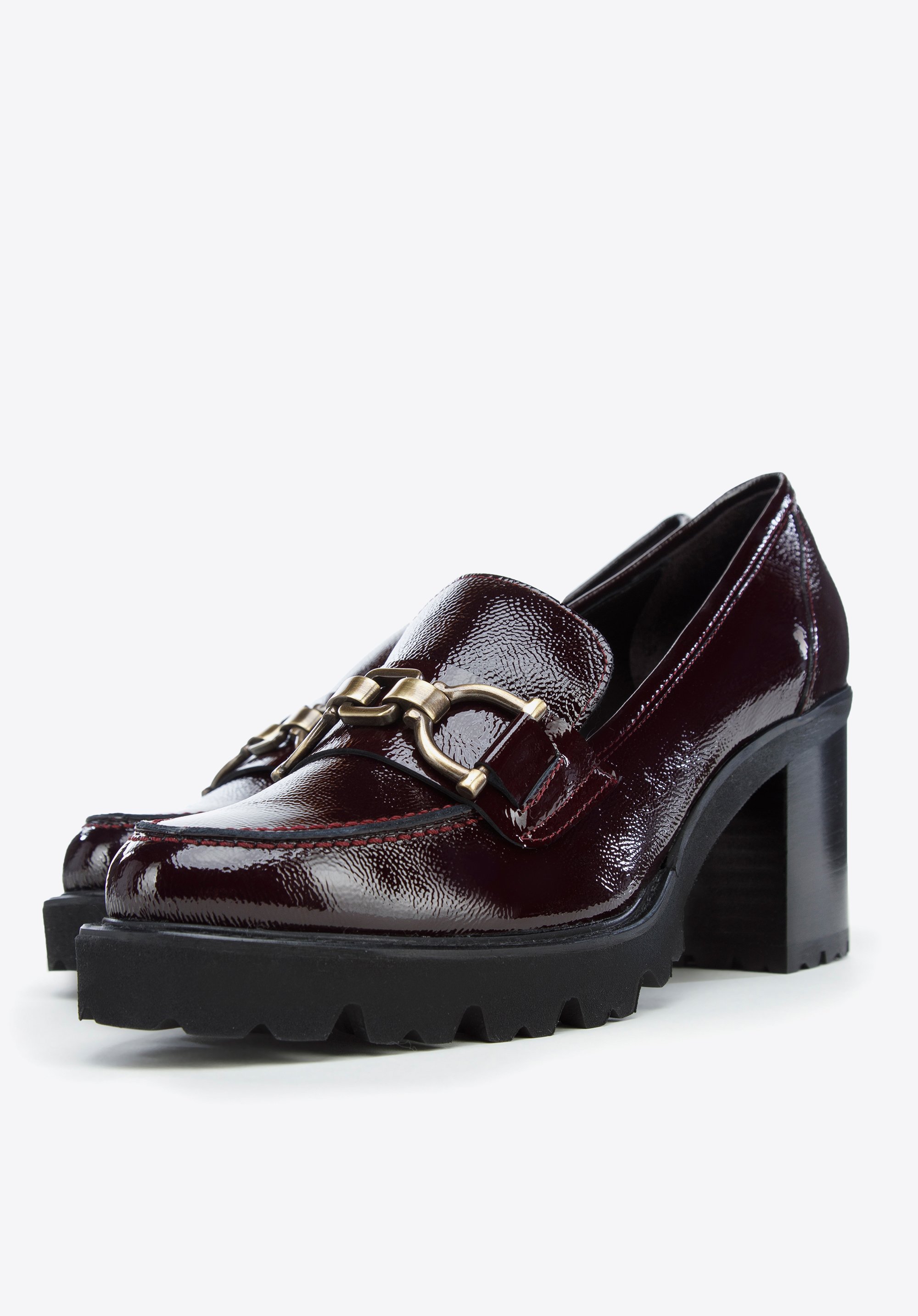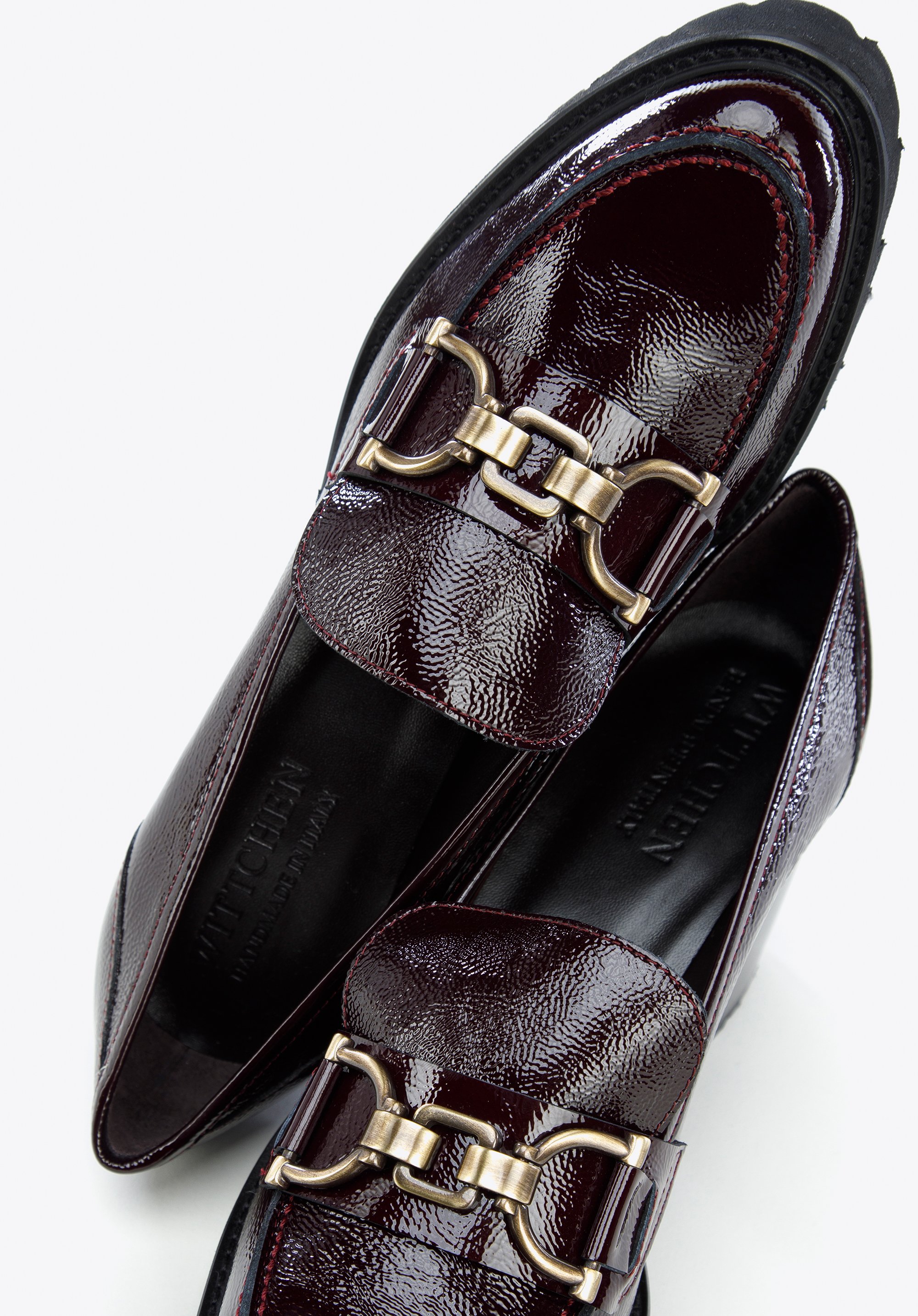 Czółenka ze skóry lakierowanej z klamerką dopełnią elegancki kobiety garnitur, a stylizacji z chinosami i koszulą dodadzą szyku.