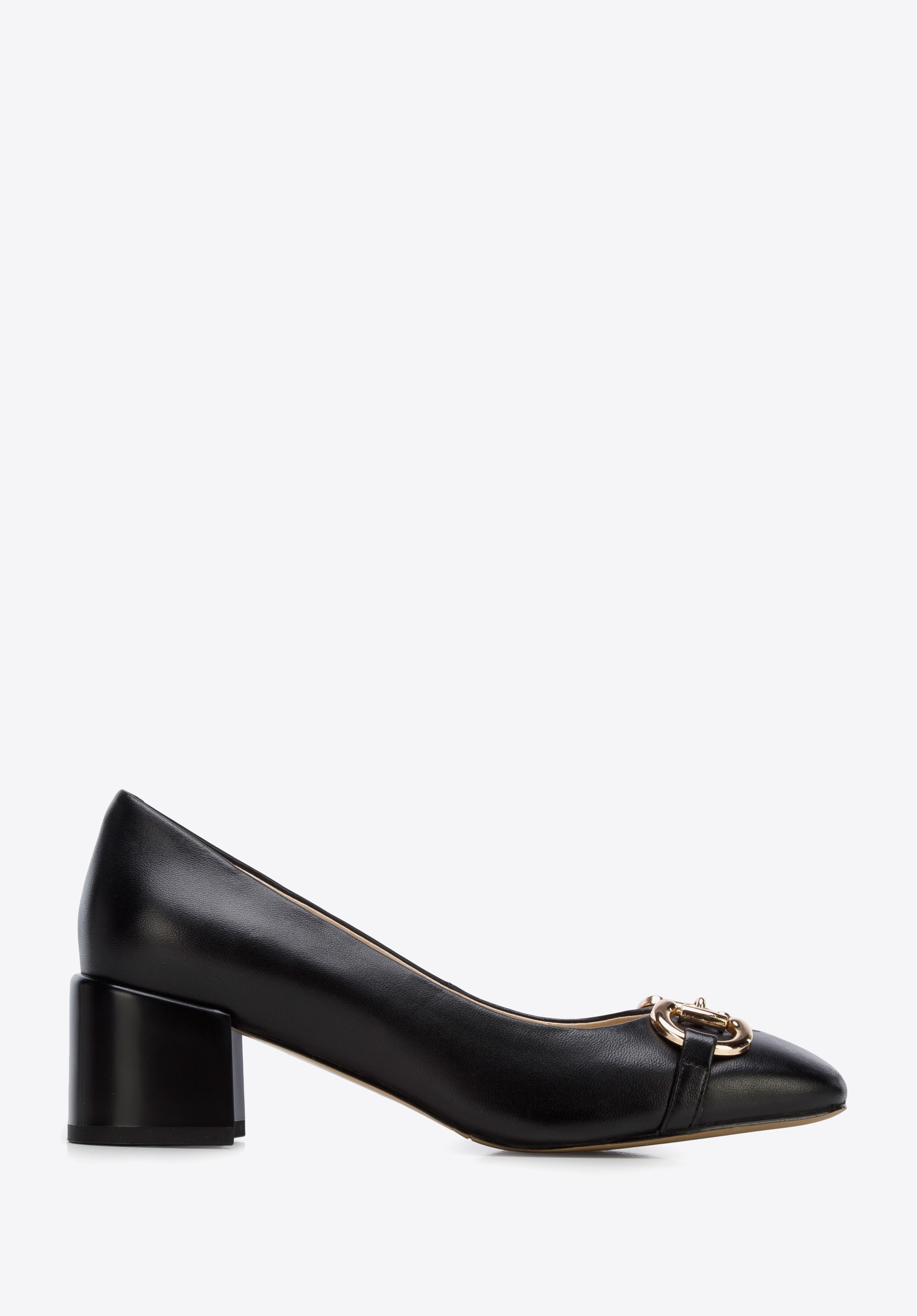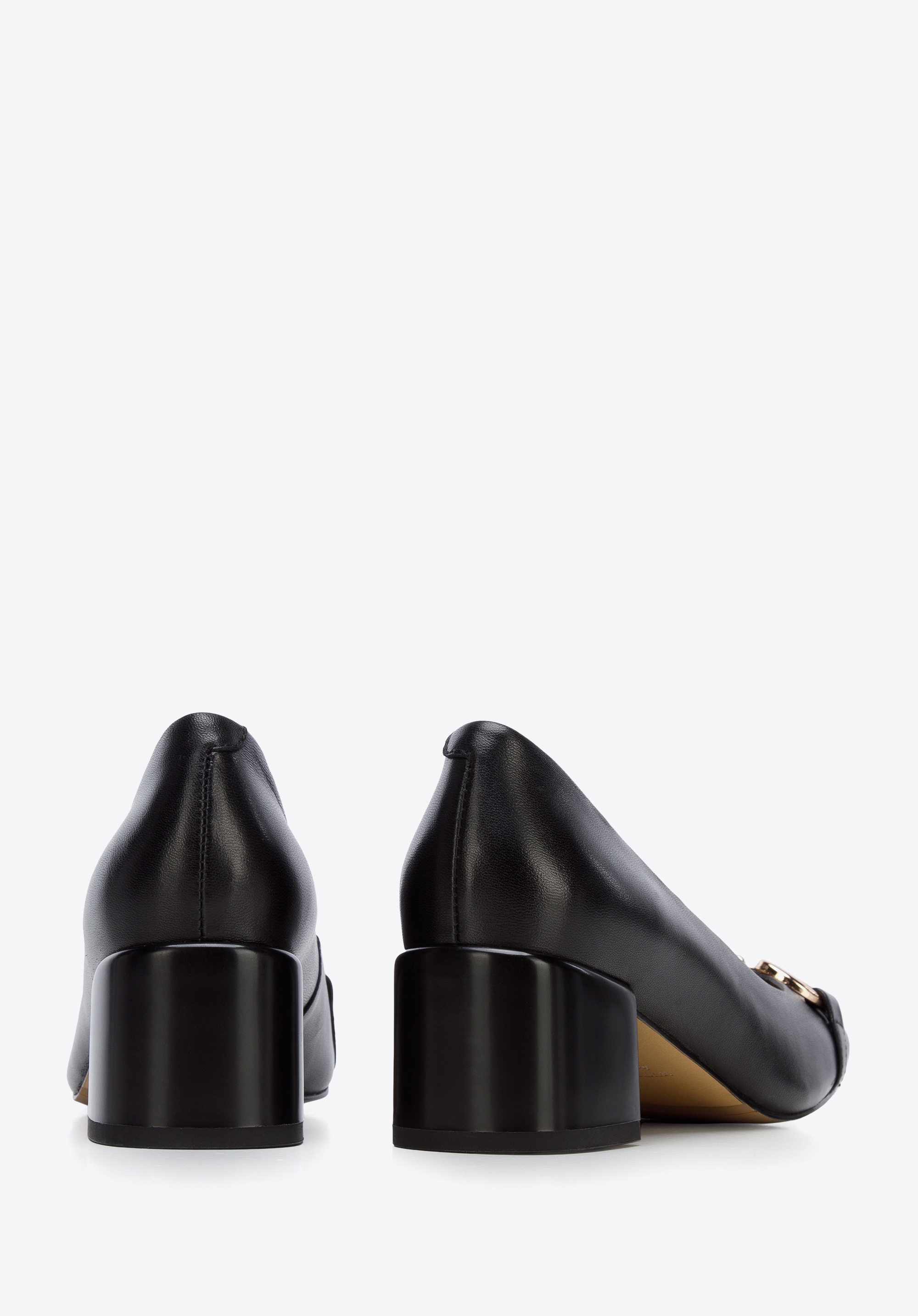 Czółenka ze skóry z klamerką na słupku to ponadczasowy dodatek dla każdej eleganckiej kobiety.