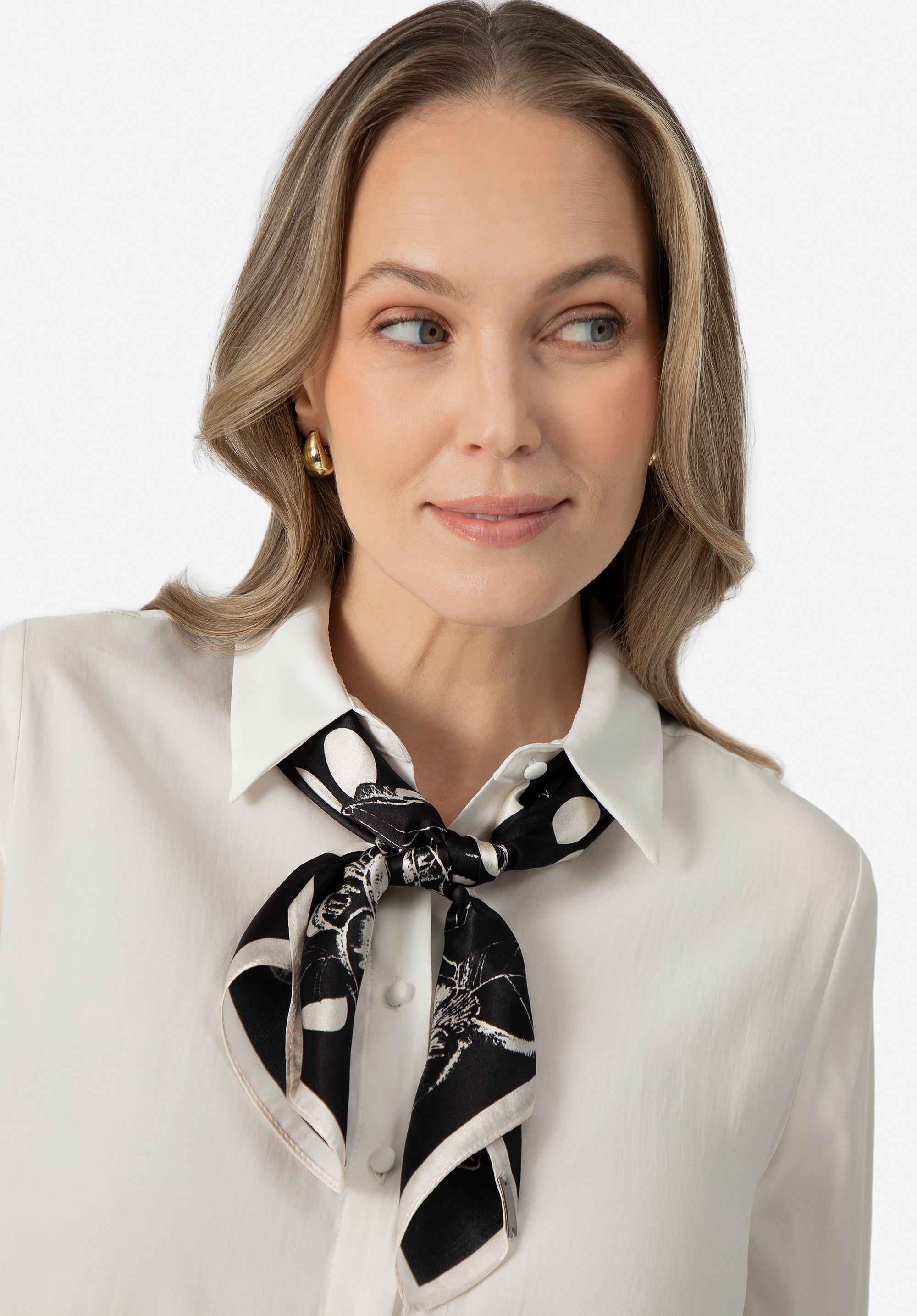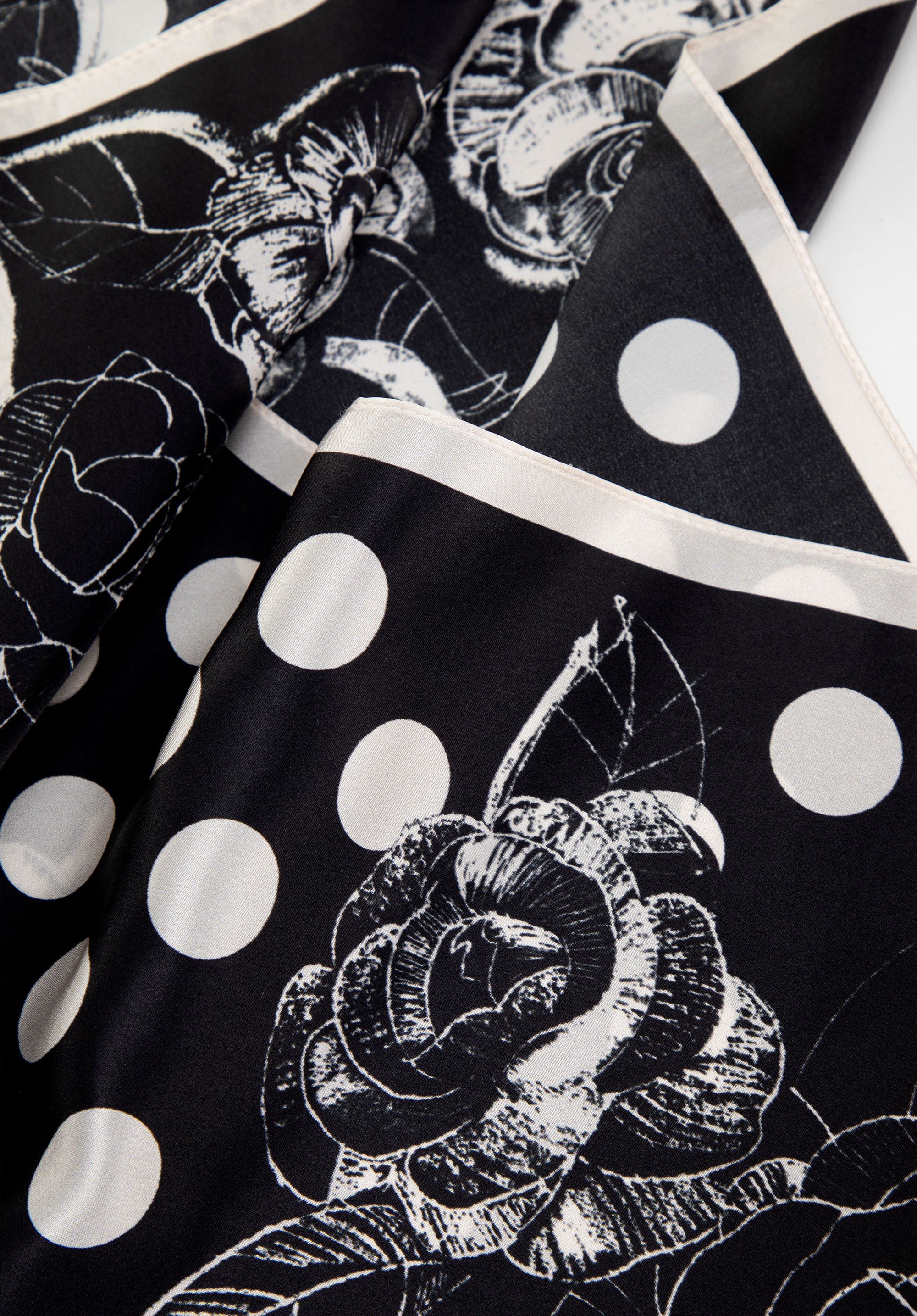 Damska apaszka jedwabna we wzory czarno - biała