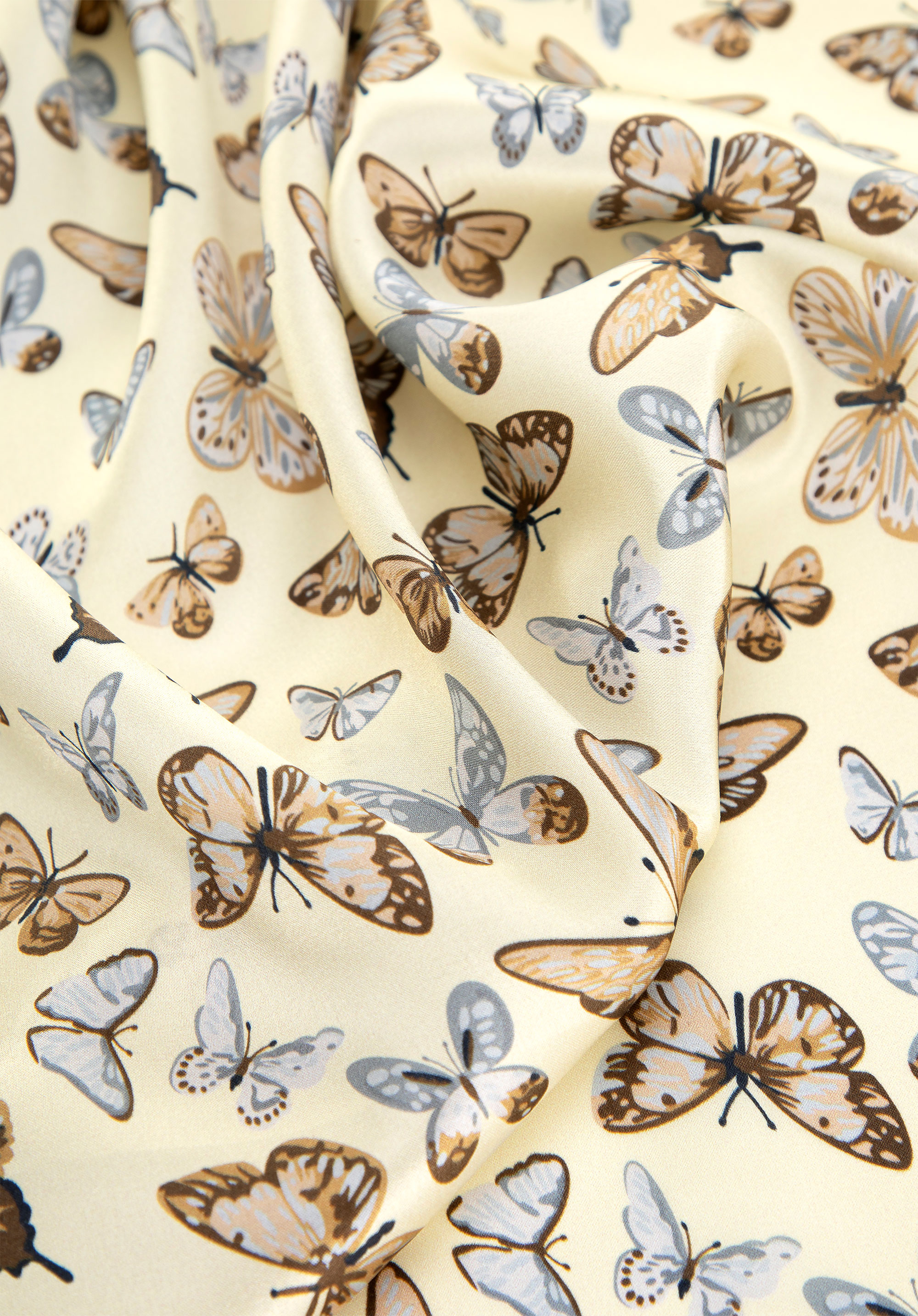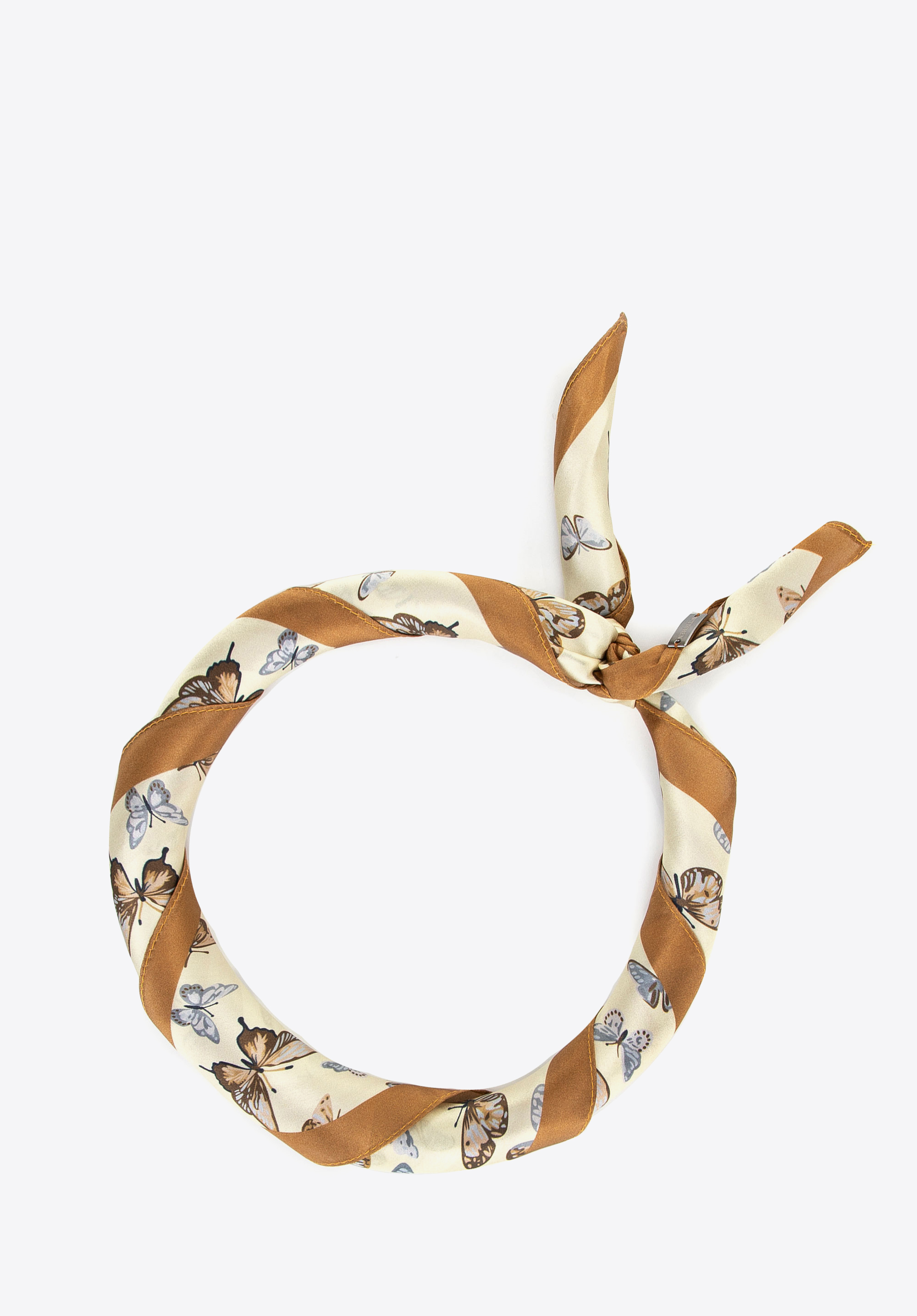 Damska apaszka jedwabna we wzory kremowo - brązowa