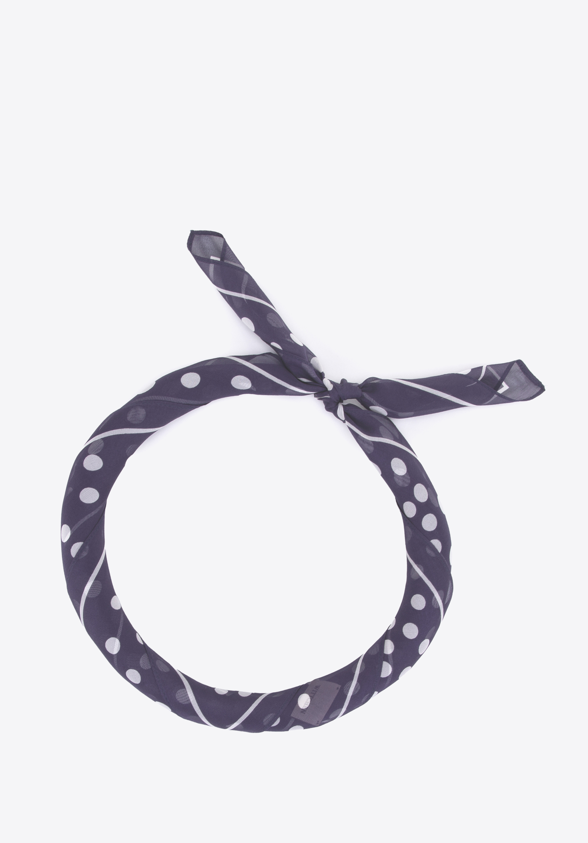 Damska apaszka doda Twojej stylizacji elegancji, a wzór w groszki podkreśli jej piękno. Wykonana jest z gładkiego materiału o delikatnym połysku. Apaszka jest lekka i pięknie się układa, dzięki czemu idealnie podkreśli walory Twojej stylizacji. To ponadczasowa klasyka, która sprawdza się niemal w każdej kreacji.