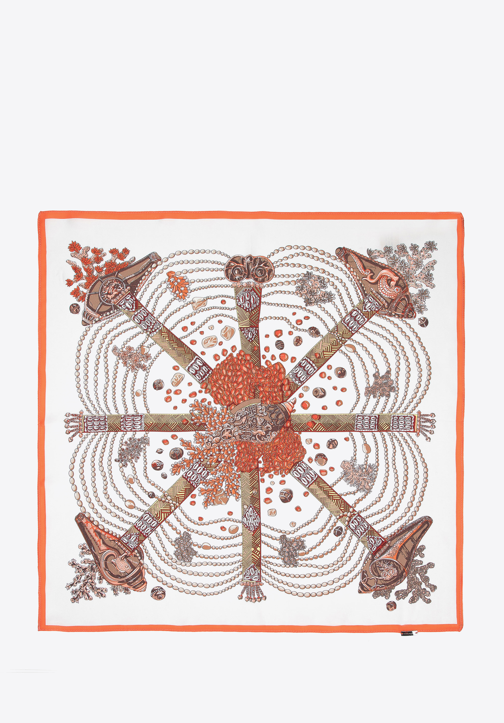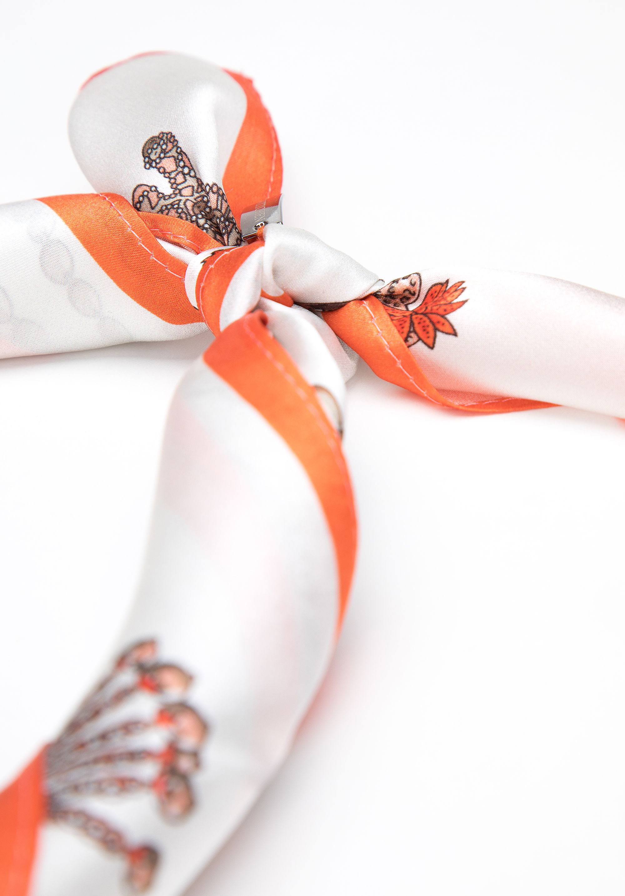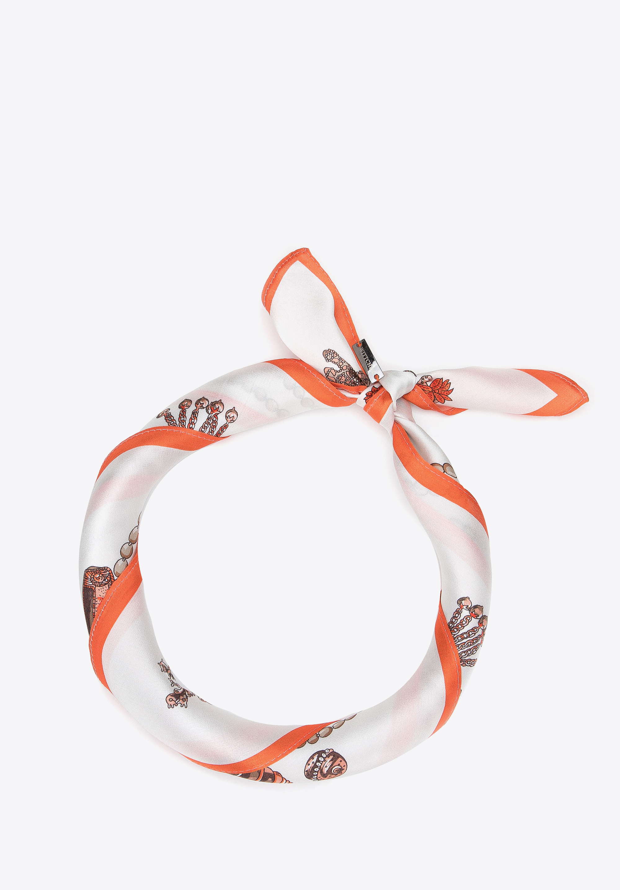 Wprowadź do swojej garderoby powiew lekkości dzięki apaszce wykonanej z delikatnego, naturalnego jedwabiu. Ten szlachetny materiał miękko układa się wokół szyi, otulając skórę i pięknie odbijając światło. Morski motyw – inspirowany muszlami i koralowcami – nadaje apaszce wyjątkowego charakteru i przywołuje atmosferę wakacyjnej swobody. Ten kobiecy dodatek znakomicie uzupełni zarówno casualowe zestawy, jak i eleganckie stylizacje. Przewiąż ją na szyi, we włosach lub na torebce, by dodać look’owi nuty wyrafinowanej fantazji.