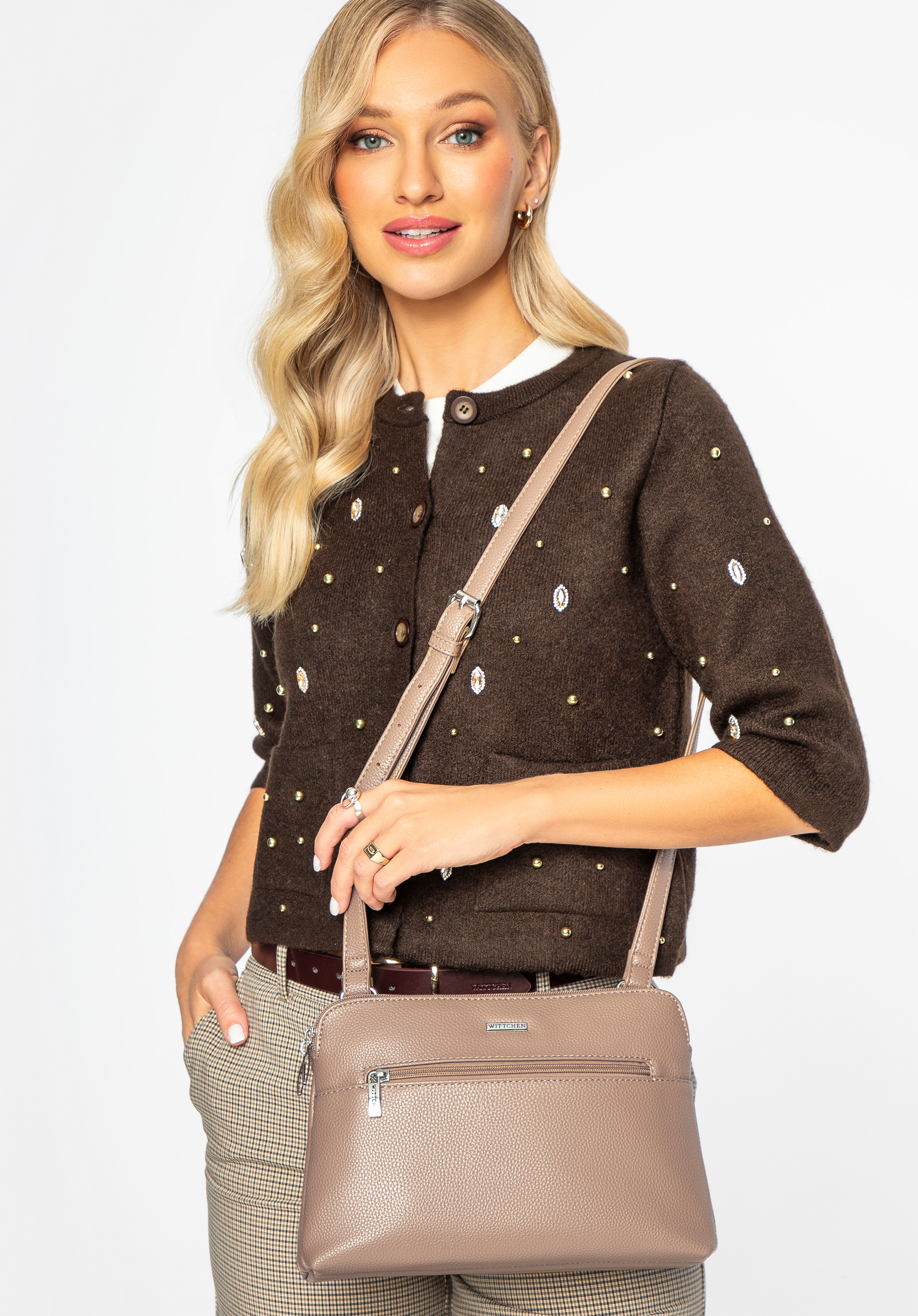 - Jasna podszewka z logo WITTCHEN: Elegancka podszewka nie tylko dodaje klasy, ale także ułatwia znalezienie potrzebnych przedmiotów w torebce.