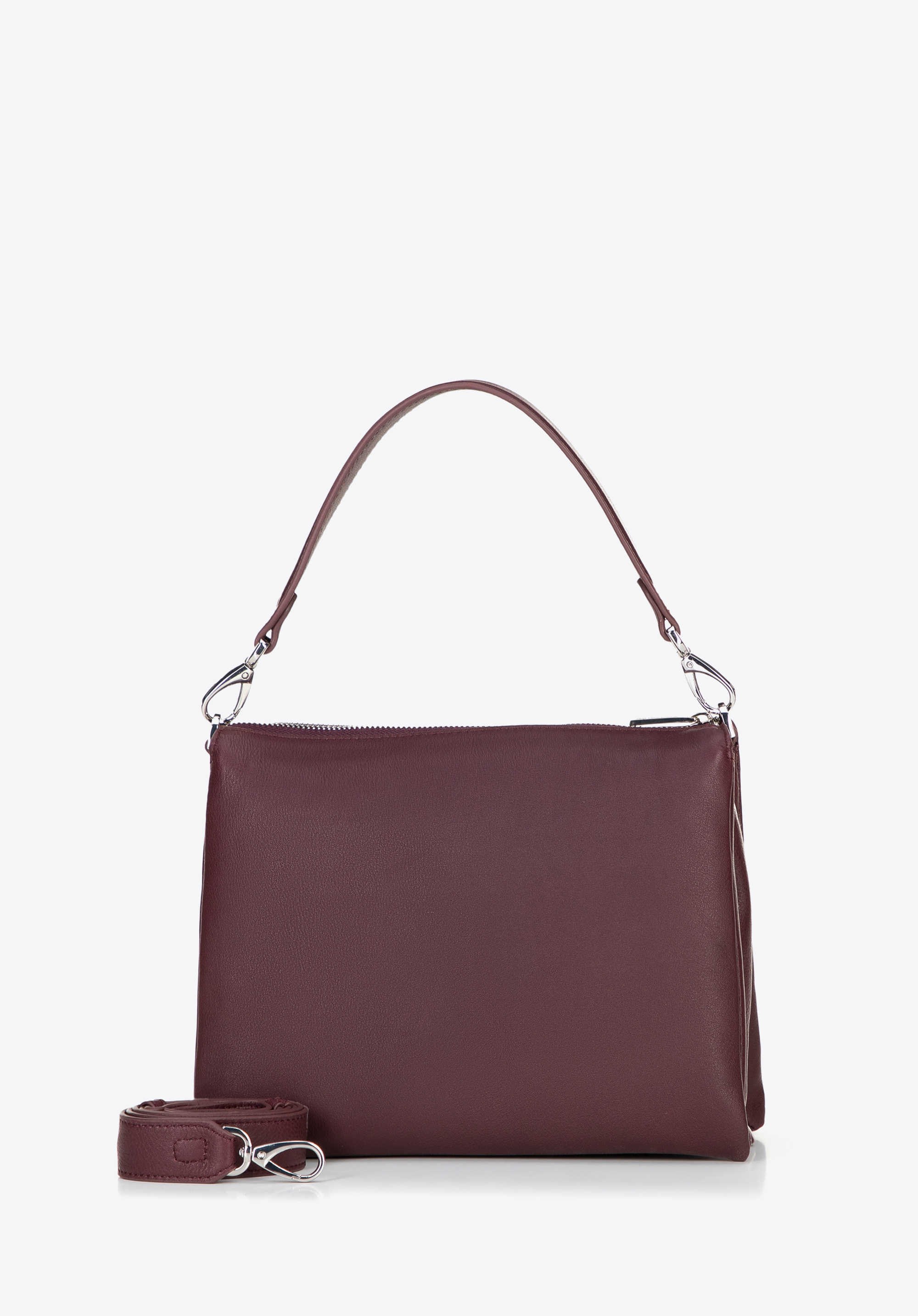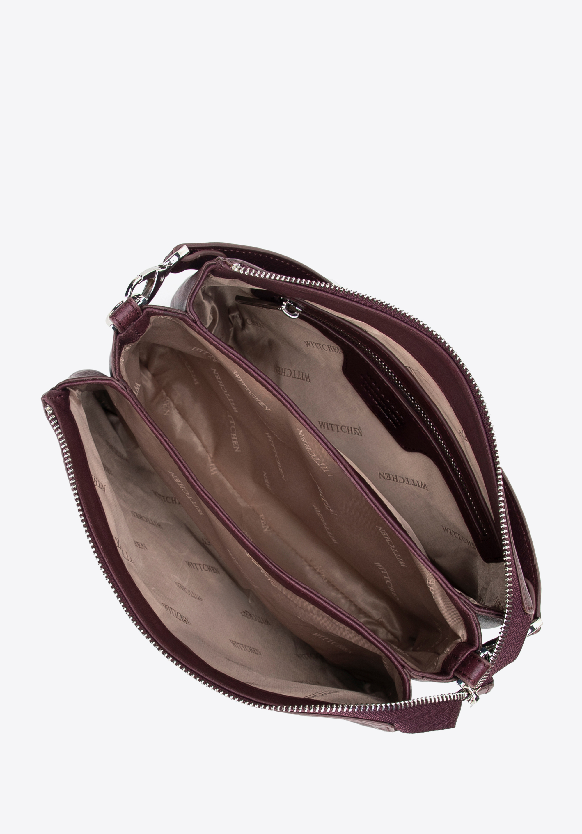 Stylowa i funkcjonalna! Ta damska torebka crossbody ze skóry naturalnej zachwyca trwałością i elegancją. Trójkomorowe wnętrze z kieszenią na zamek zapewnia doskonałą organizację, a regulowany, odpinany pasek i rączka pozwalają nosić ją na dwa sposoby. Klasyczny design dopełnia subtelne logo producenta i bezpieczne zapięcie na zamek.