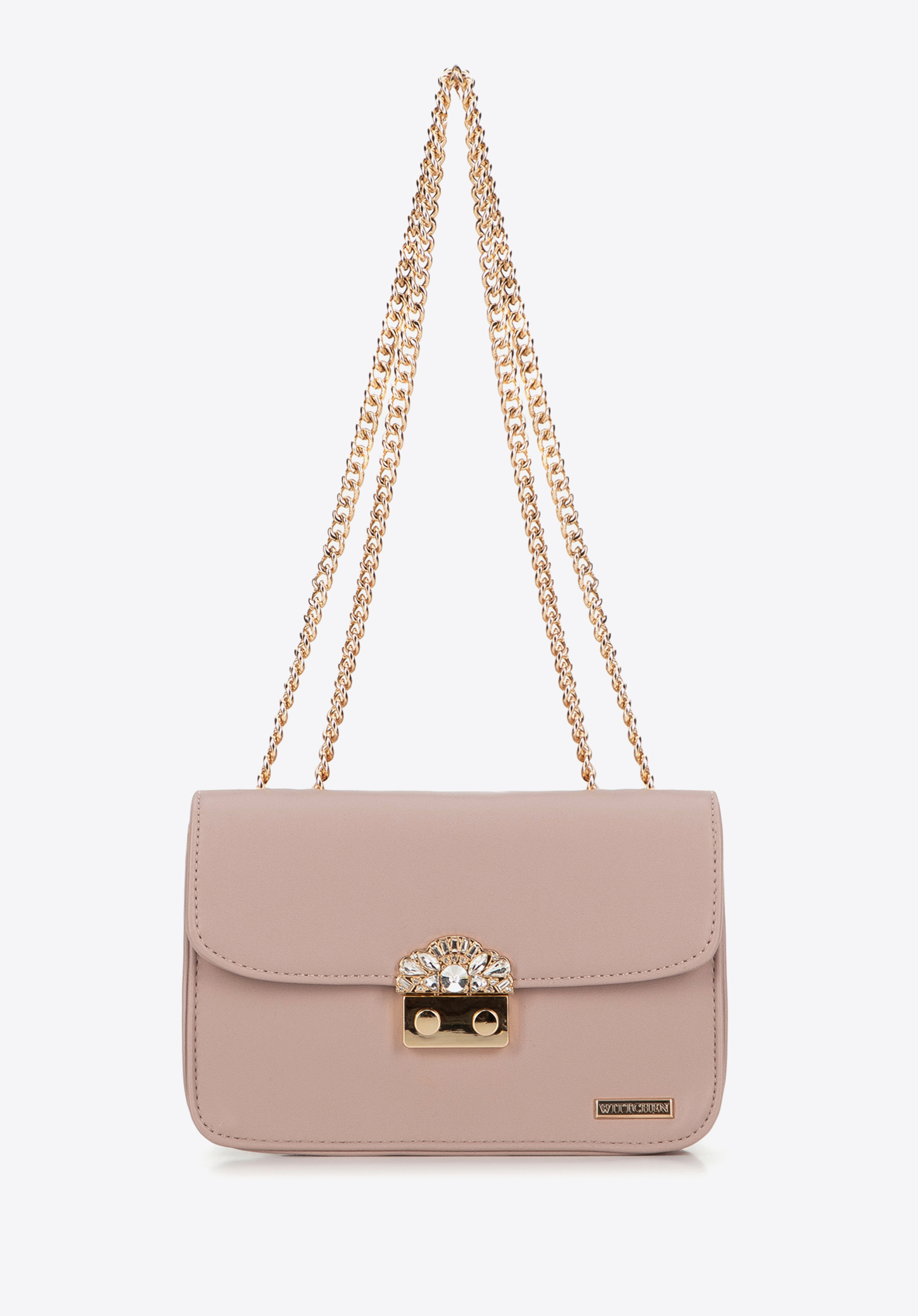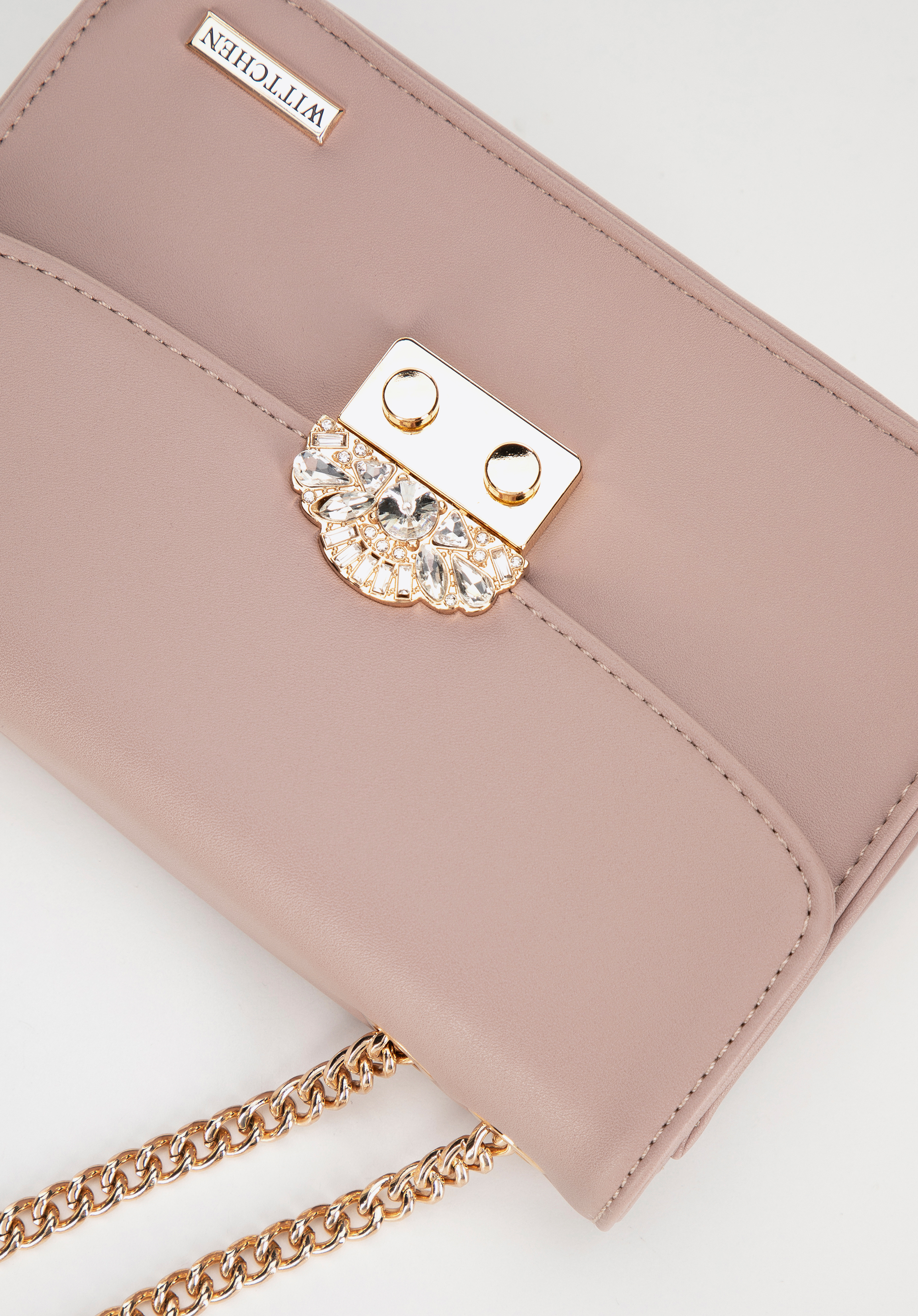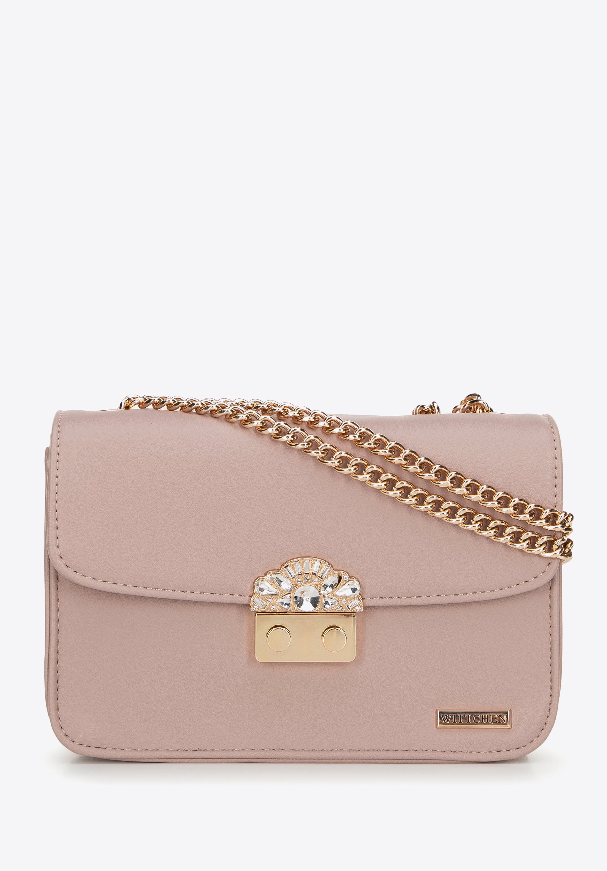 - Zamknięcie: Zapięcie na klamrę z biżuteryjnymi zdobieniami dodaje elegancji i zapewnia bezpieczne przechowywanie Twoich rzeczy.