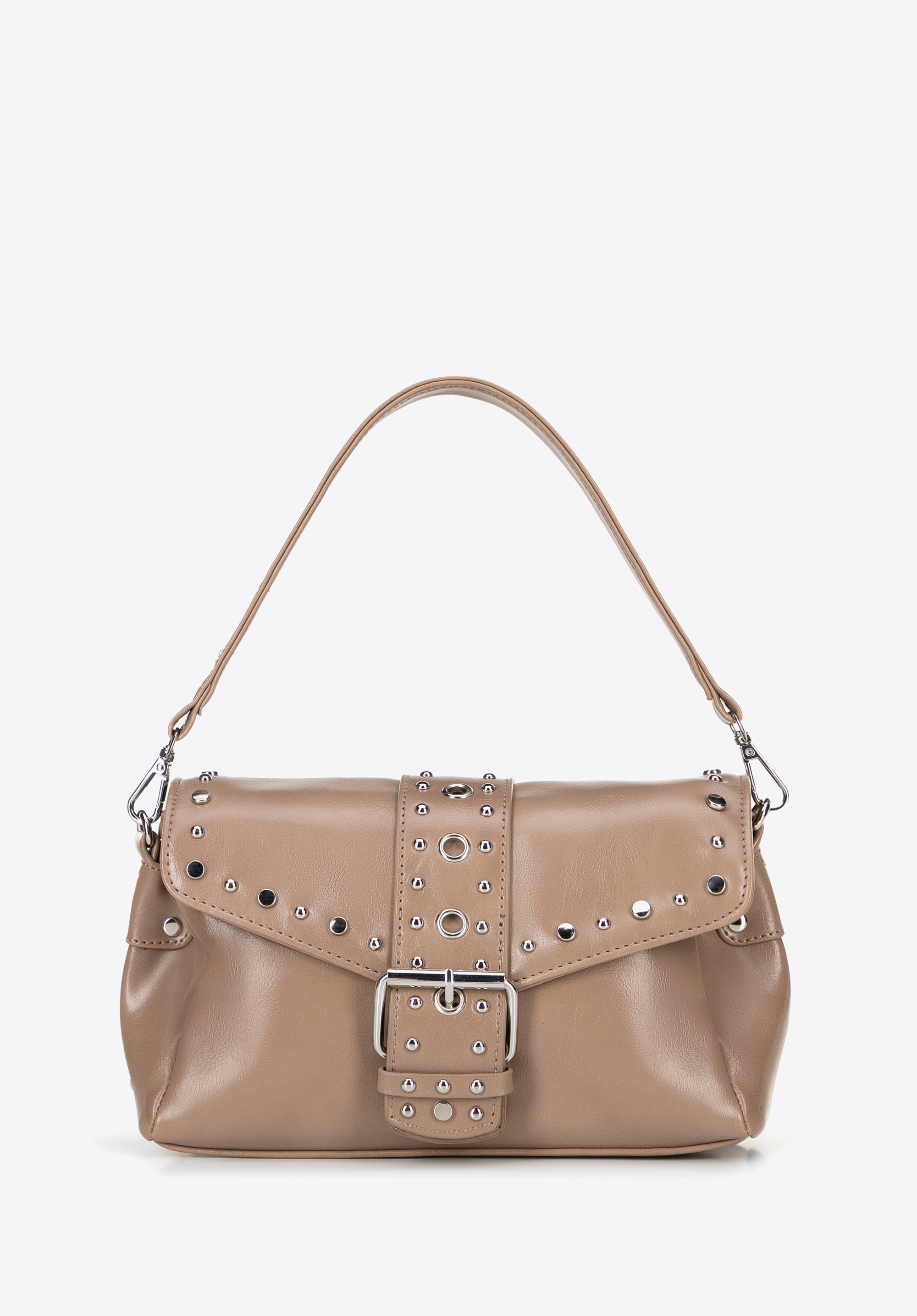 - Dekoracyjne metalowe nity i pasek: Te detale dodają torbie wyrazistości, podkreślając jej nowoczesny i odważny charakter.