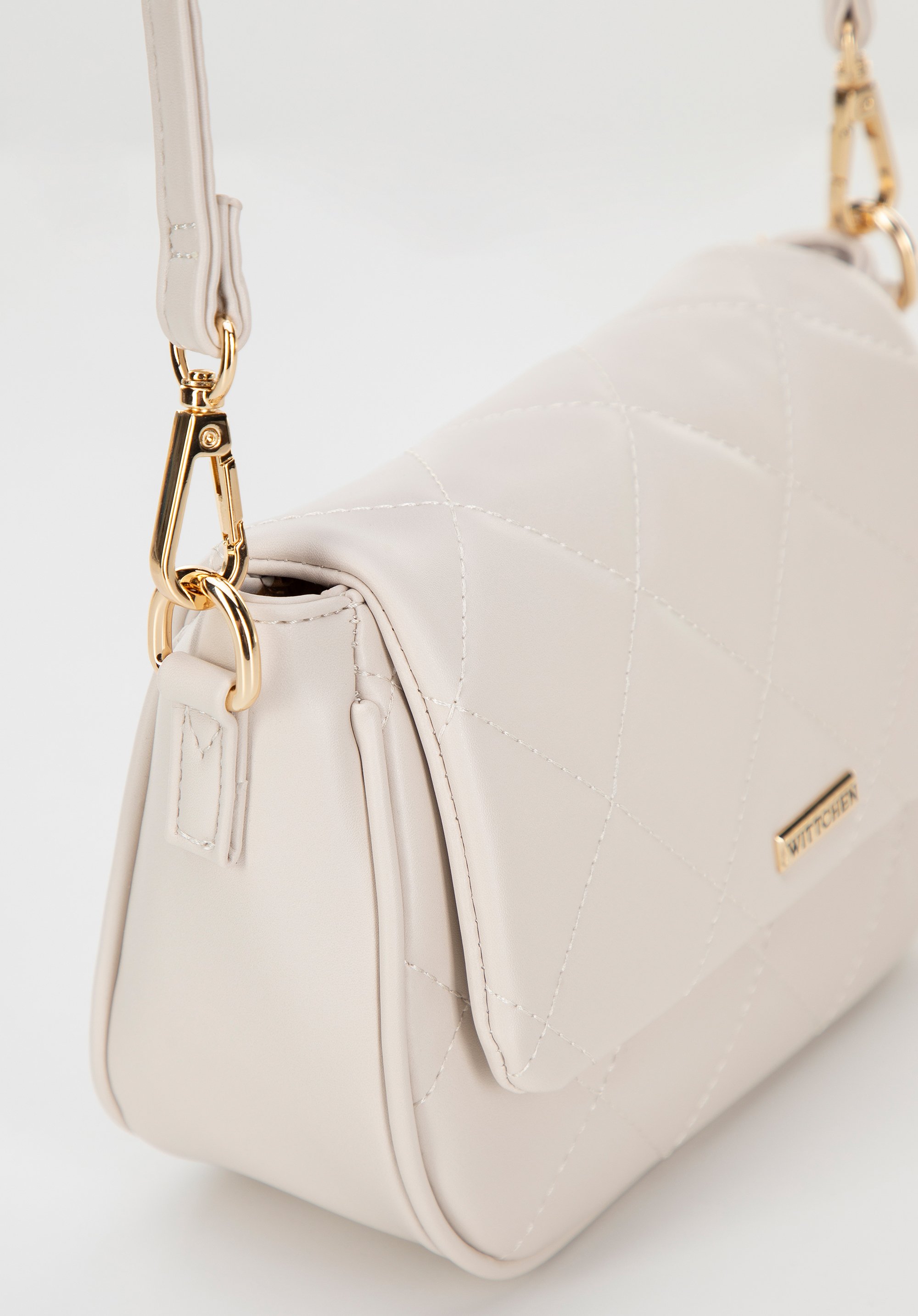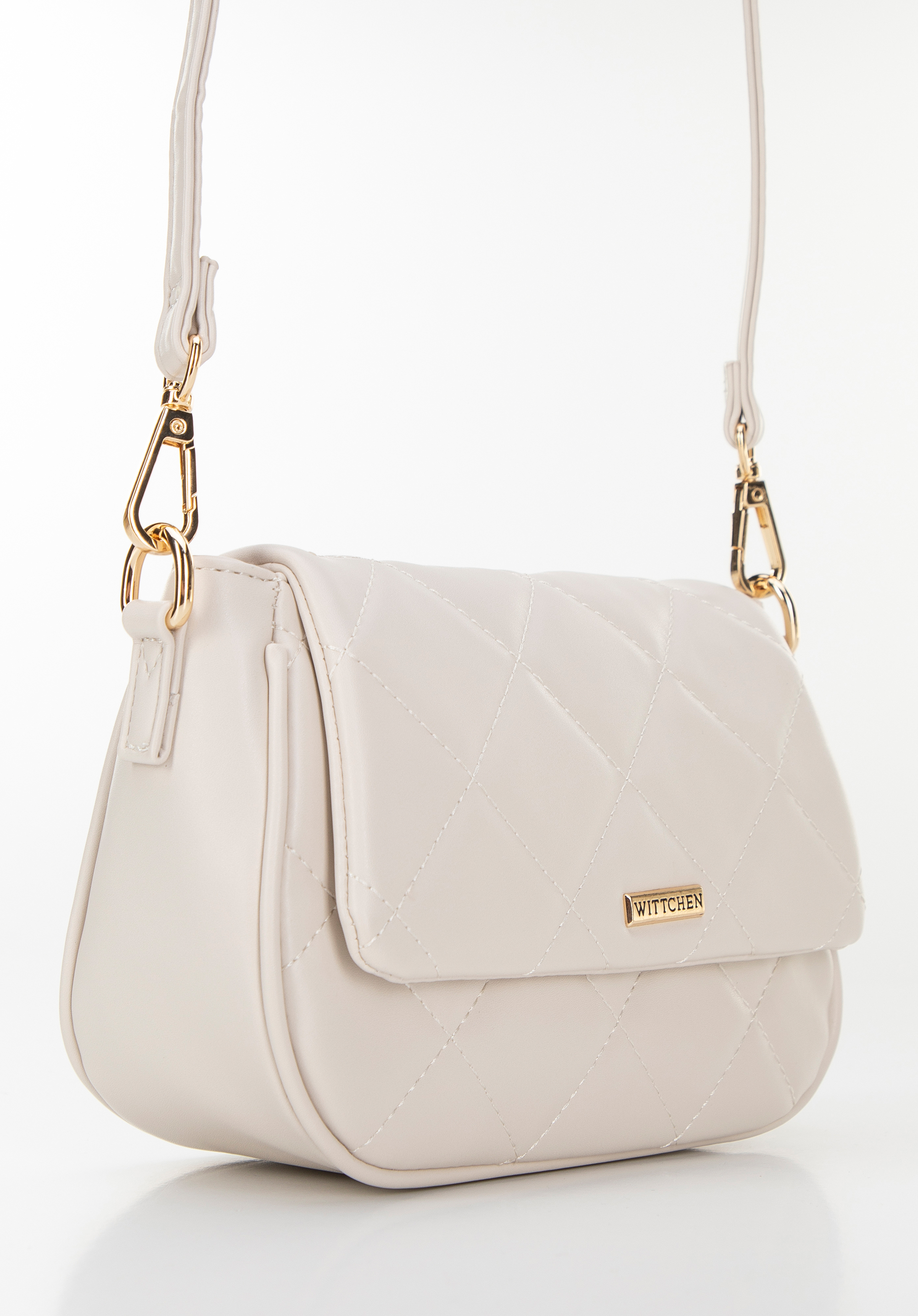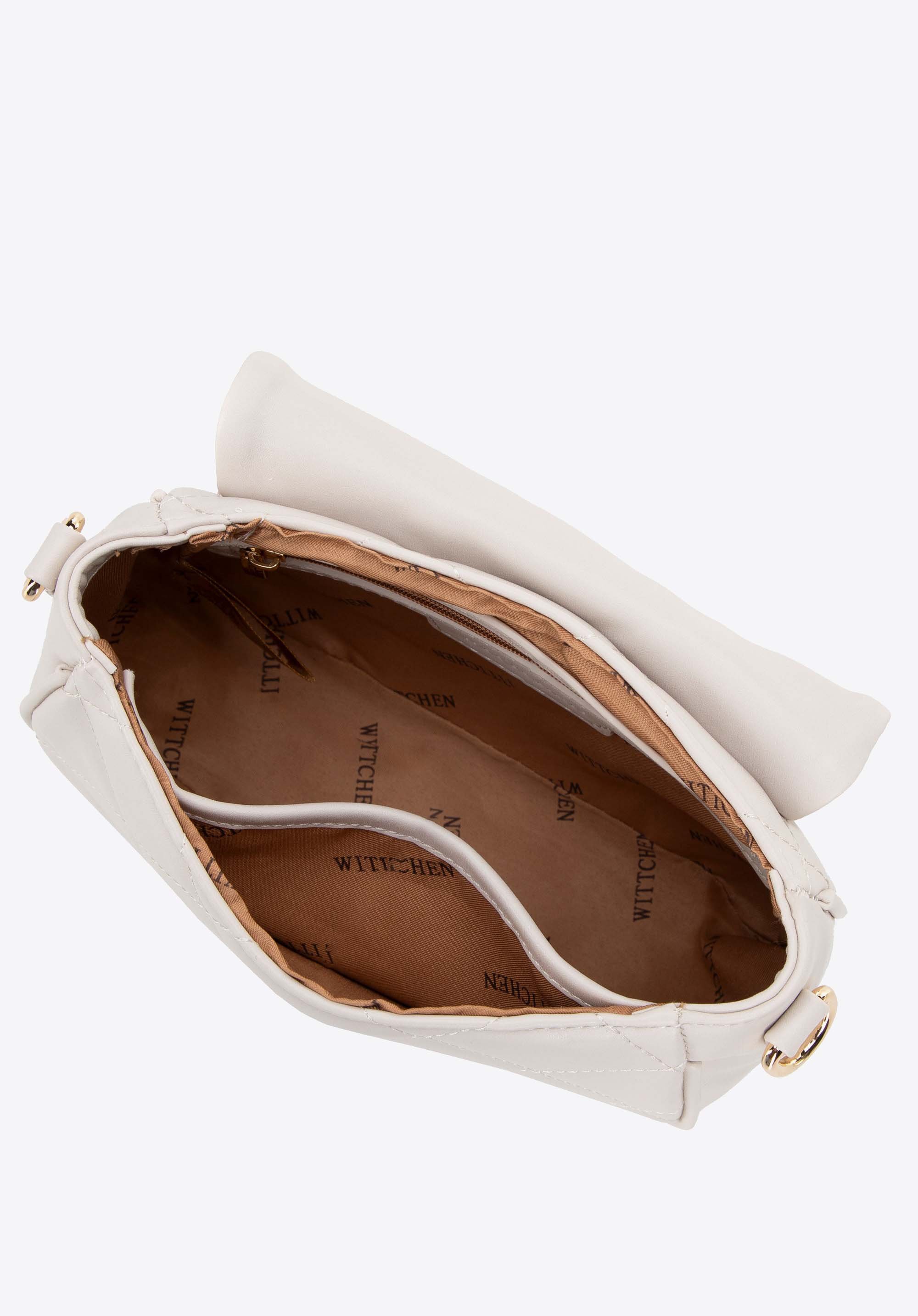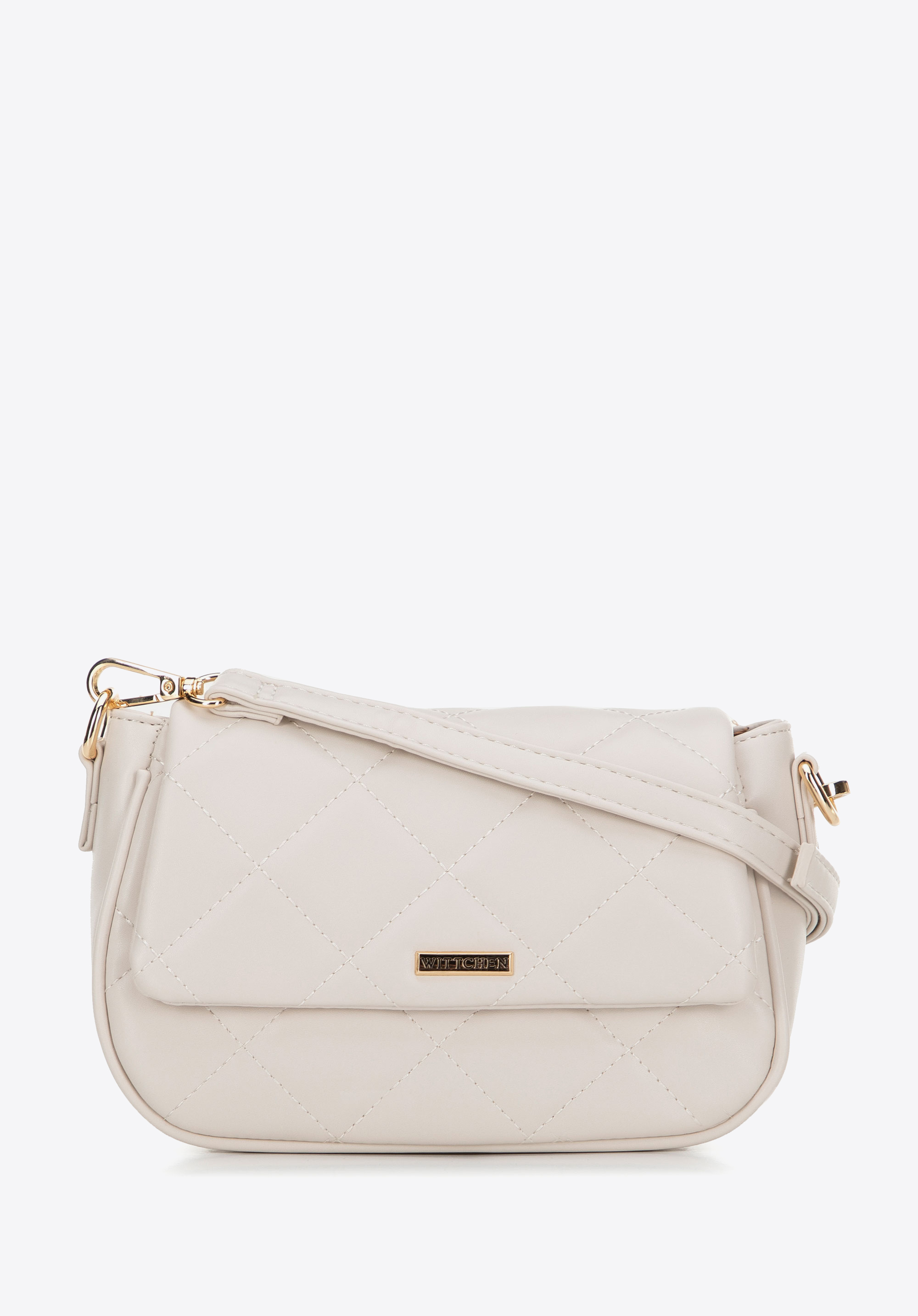 Damska crossbody z ekoskóry w przeszycia kremowa