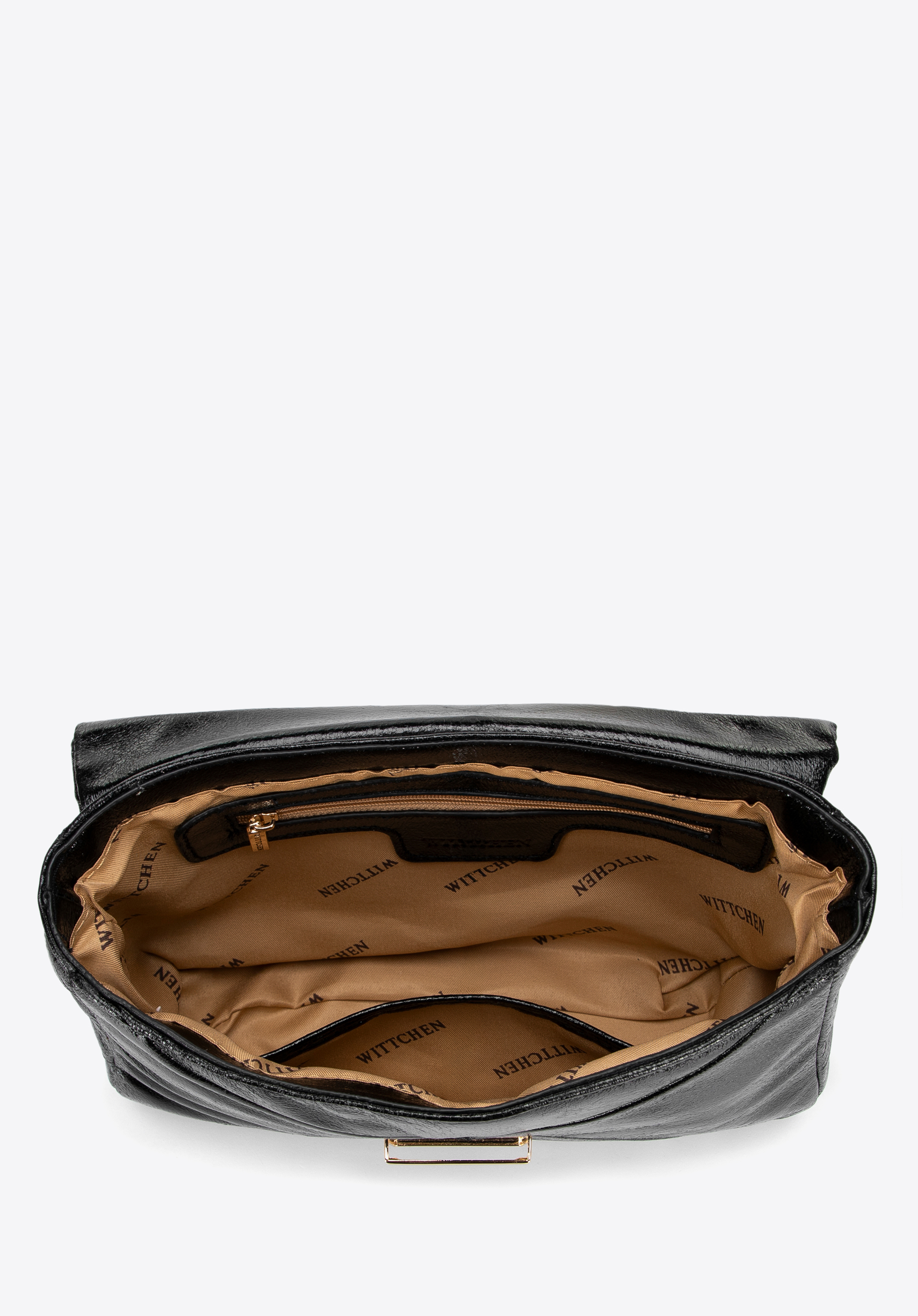 - Jednokomorowe wnętrze z dwiema kieszeniami: Przestronne wnętrze z kieszonkami – w tym jedną na zamek – pozwala na wygodne przechowywanie drobiazgów.