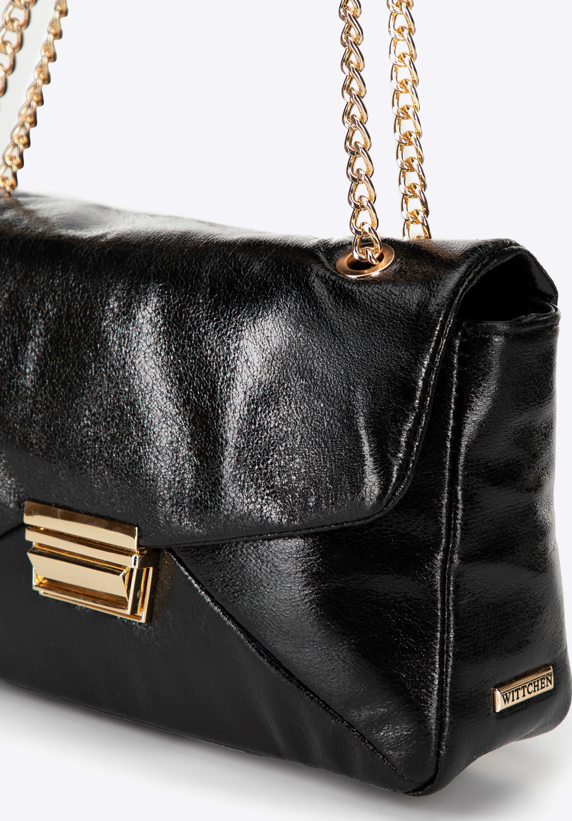 Elegancka torebka crossbody, która łączy nowoczesny design z funkcjonalnością. Wykonana z ekoskóry, zachwyca połyskiem, który nadaje jej wyjątkowego charakteru. Zapięcie na klamrę gwarantuje bezpieczeństwo, a łańcuszek umożliwia dopasowanie długości do indywidualnych preferencji – możesz nosić ją na ramieniu lub w dłoni. Subtelne logo producenta na boku torby podkreśla jej elegancję, a wnętrze, wyposażone w dwie praktyczne kieszonki – w tym jedną na zamek – pozwala utrzymać porządek.