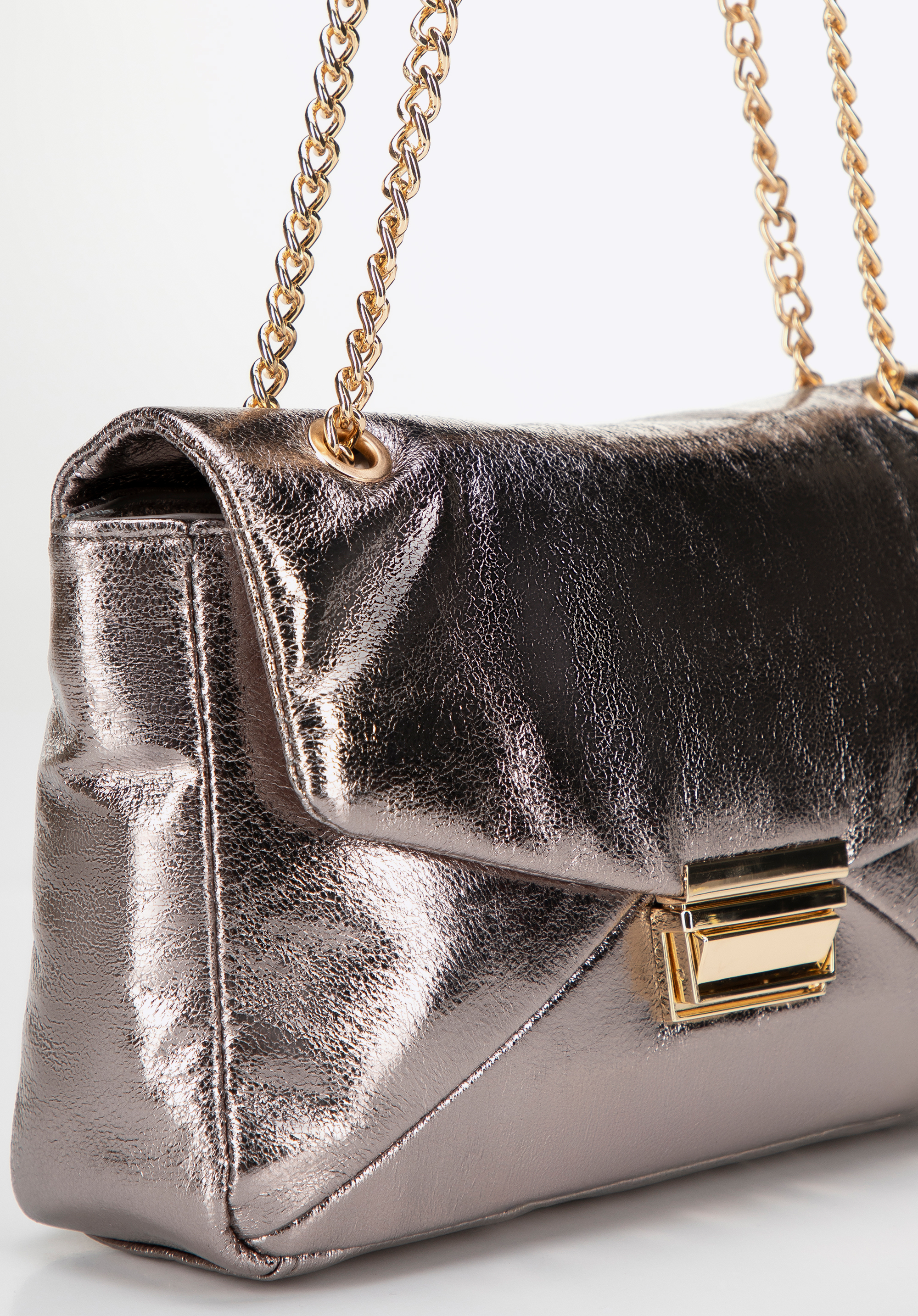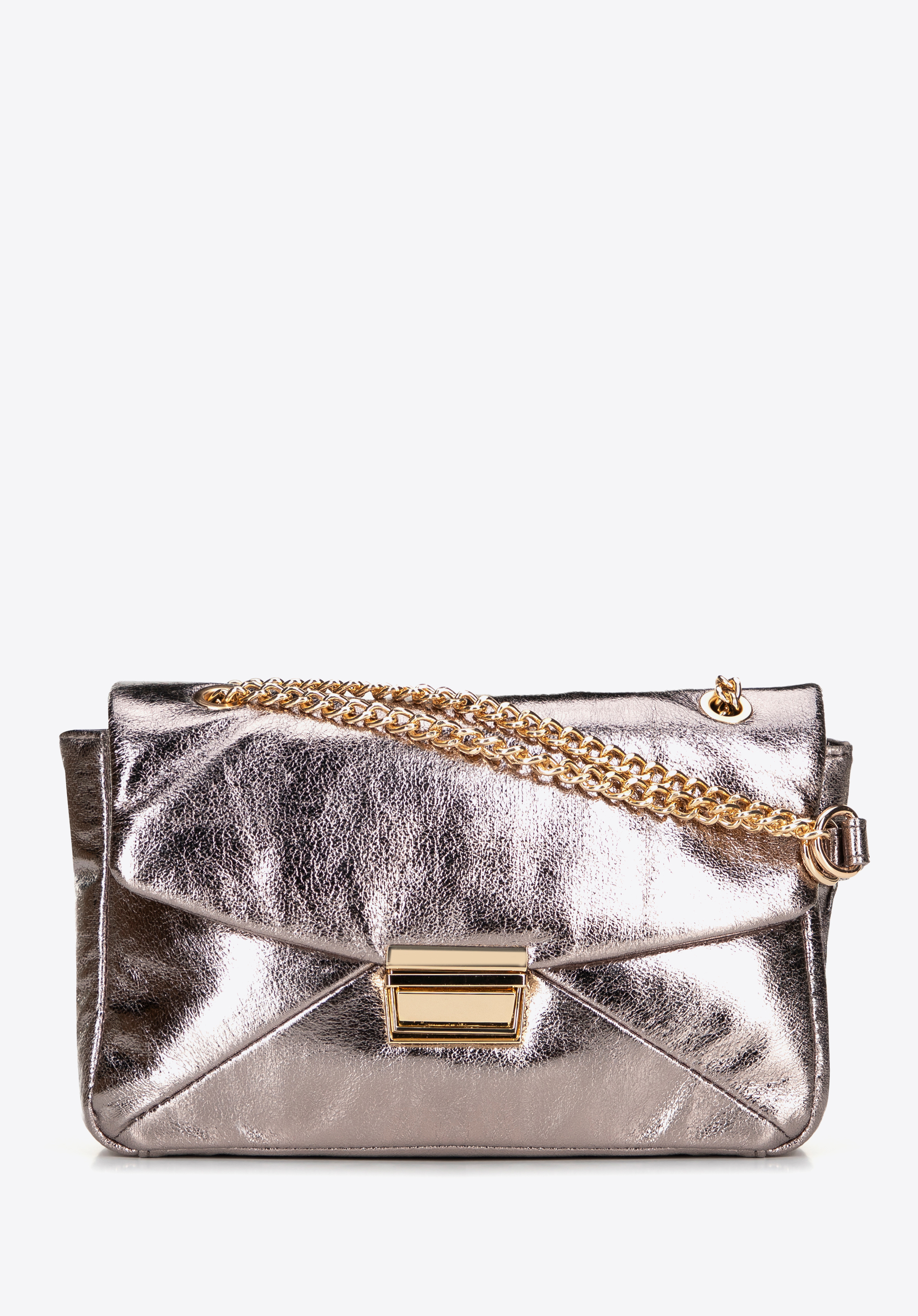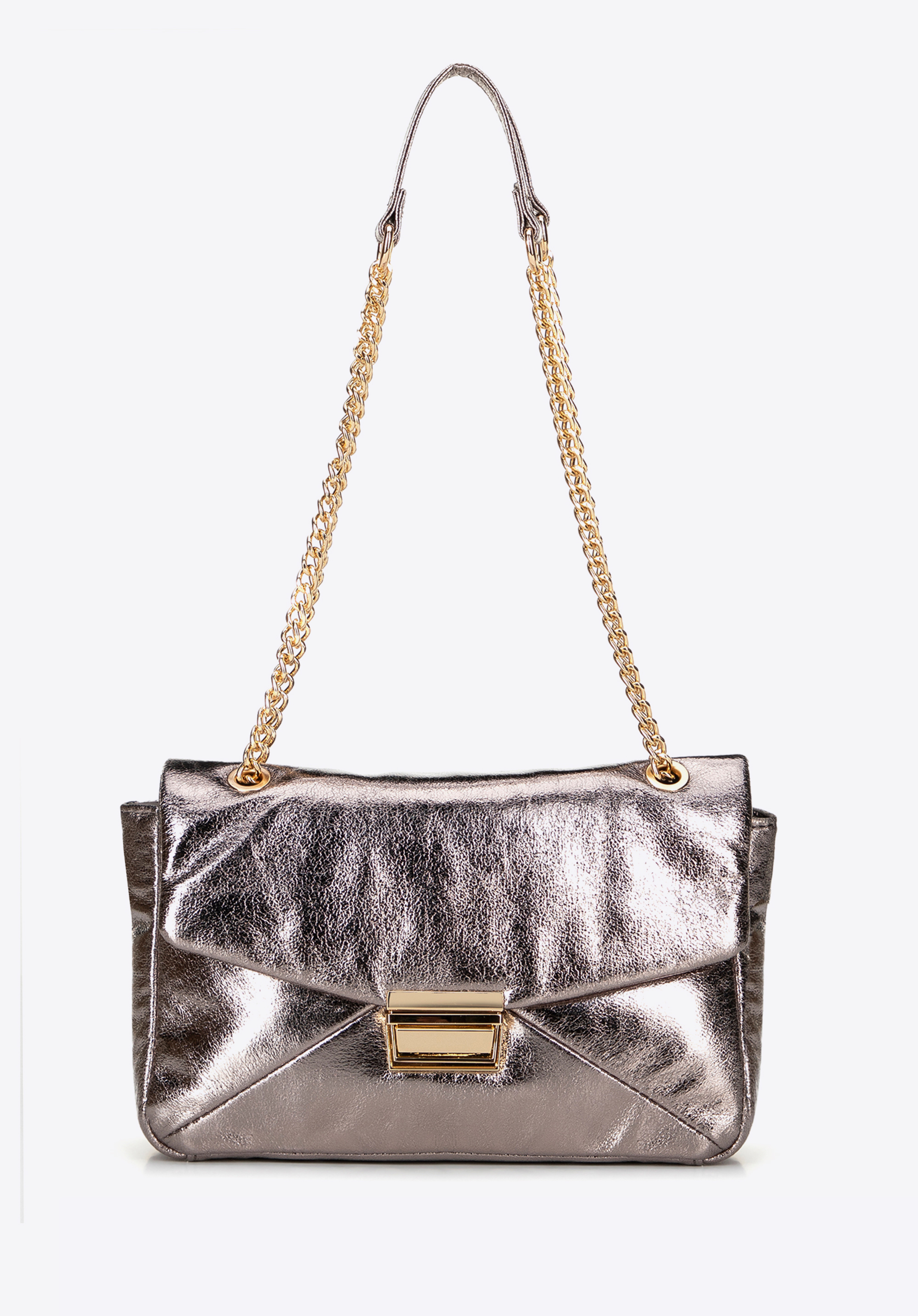 Elegancka torebka crossbody, która łączy nowoczesny design z funkcjonalnością. Wykonana z ekoskóry, zachwyca połyskiem, który nadaje jej wyjątkowego charakteru. Zapięcie na klamrę gwarantuje bezpieczeństwo, a łańcuszek umożliwia dopasowanie długości do indywidualnych preferencji – możesz nosić ją na ramieniu lub w dłoni. Subtelne logo producenta na boku torby podkreśla jej elegancję, a wnętrze, wyposażone w dwie praktyczne kieszonki – w tym jedną na zamek – pozwala utrzymać porządek.