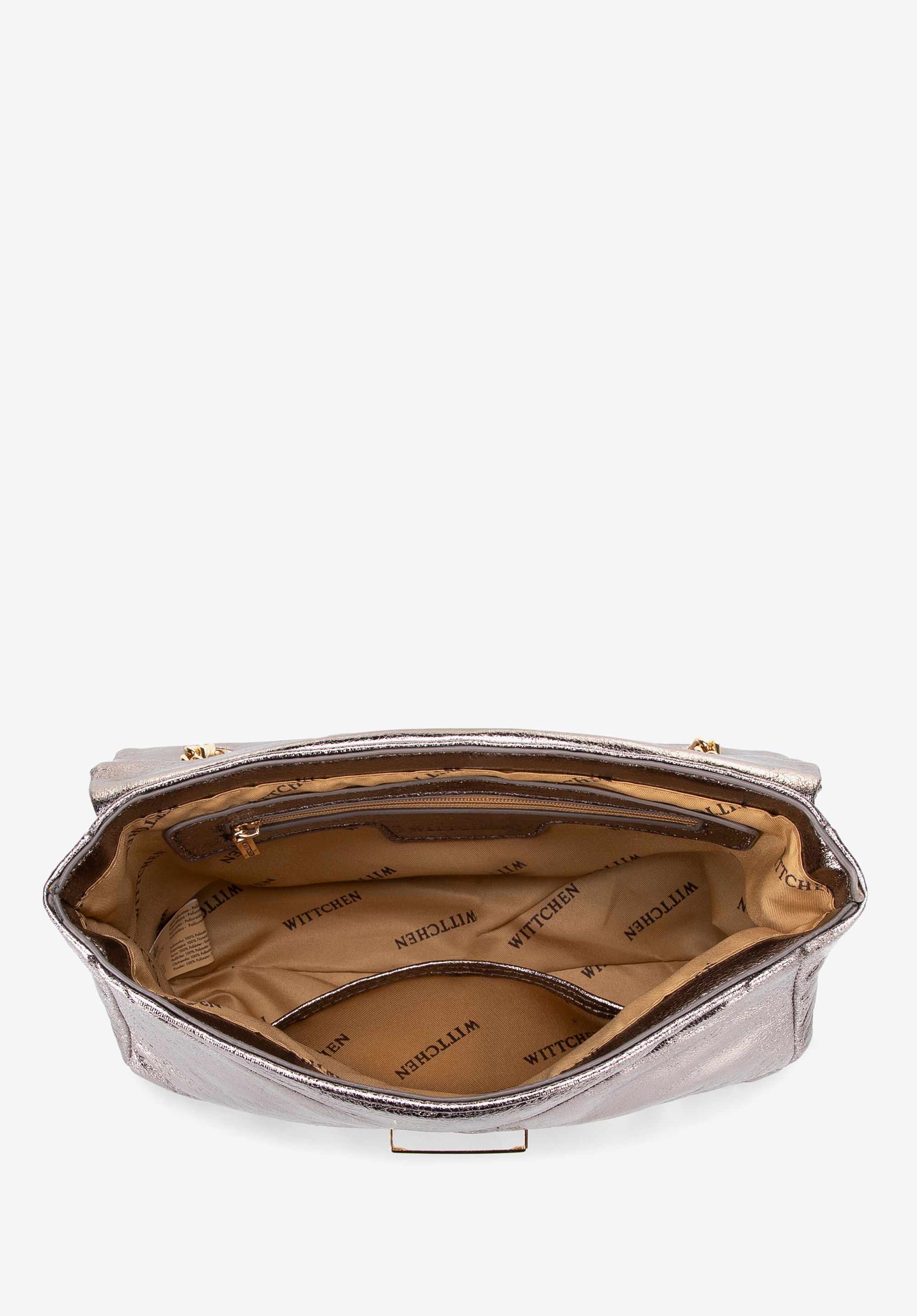- Klamra na klapie: Ułatwia otwieranie i zamykanie torby, stanowiąc dodatkowy element dekoracyjny.