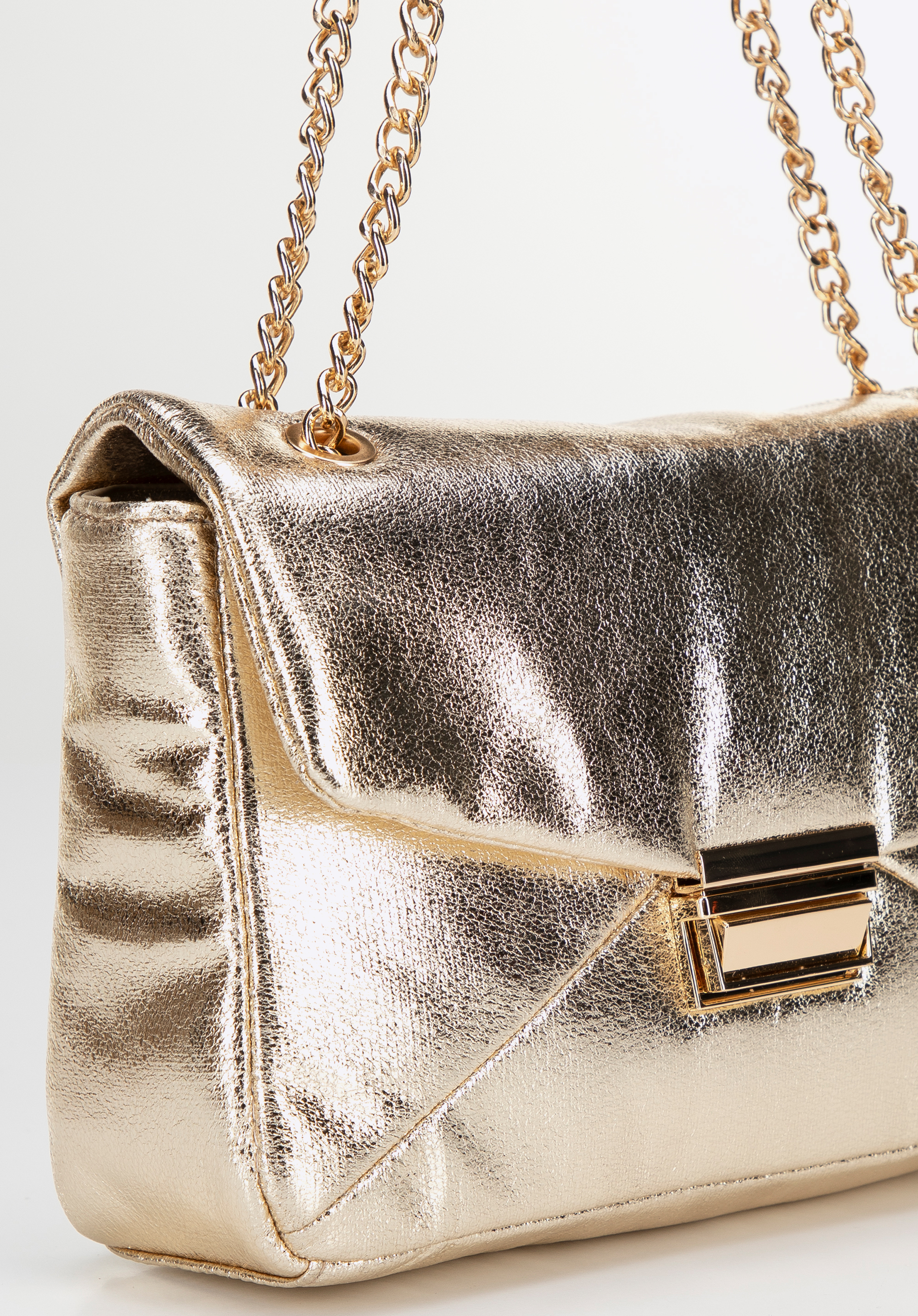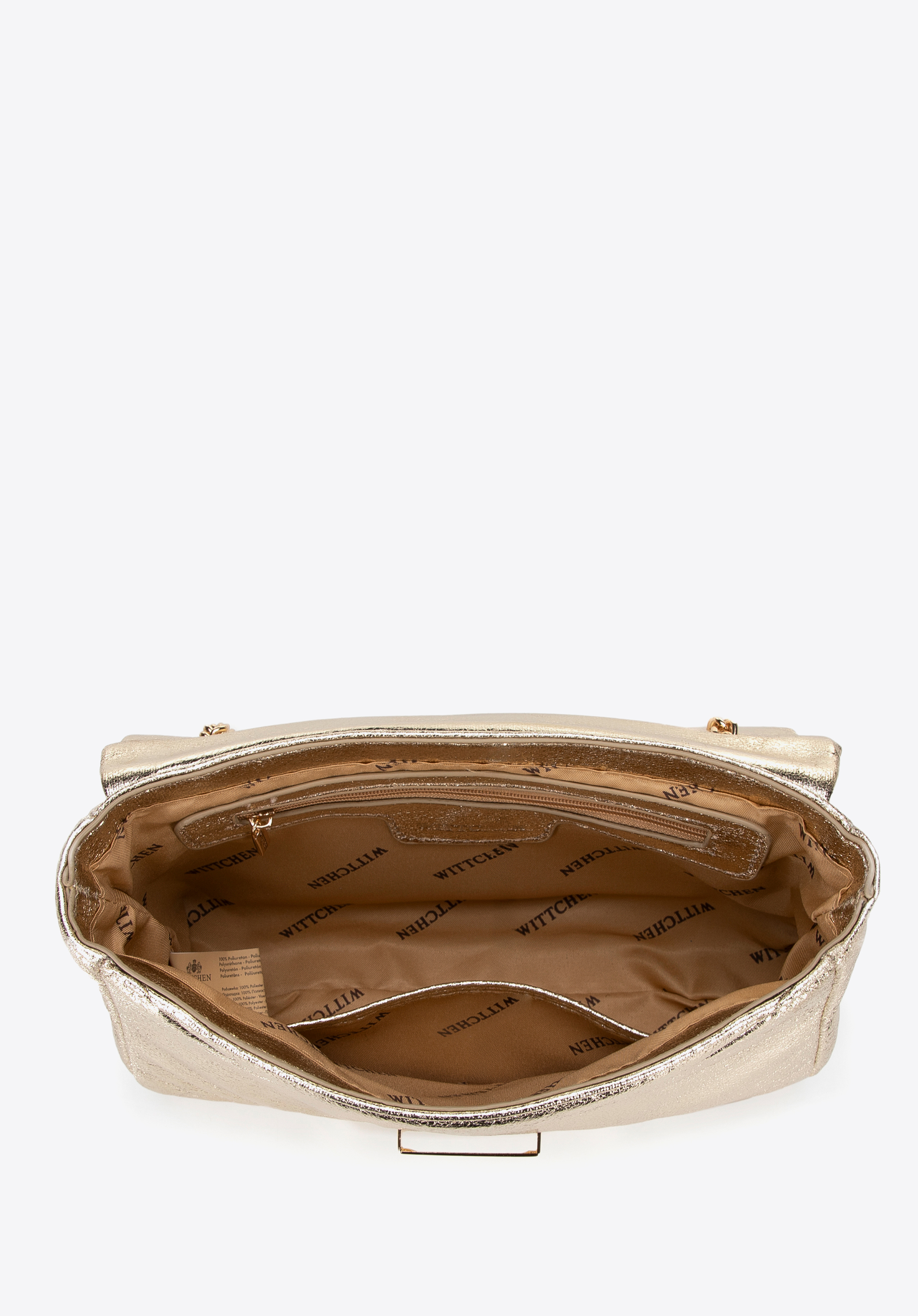 Elegancka torebka crossbody, która łączy nowoczesny design z funkcjonalnością. Wykonana z ekoskóry, zachwyca połyskiem, który nadaje jej wyjątkowego charakteru. Zapięcie na klamrę gwarantuje bezpieczeństwo, a łańcuszek umożliwia dopasowanie długości do indywidualnych preferencji – możesz nosić ją na ramieniu lub w dłoni. Subtelne logo producenta na boku torby podkreśla jej elegancję, a wnętrze, wyposażone w dwie praktyczne kieszonki – w tym jedną na zamek – pozwala utrzymać porządek.
