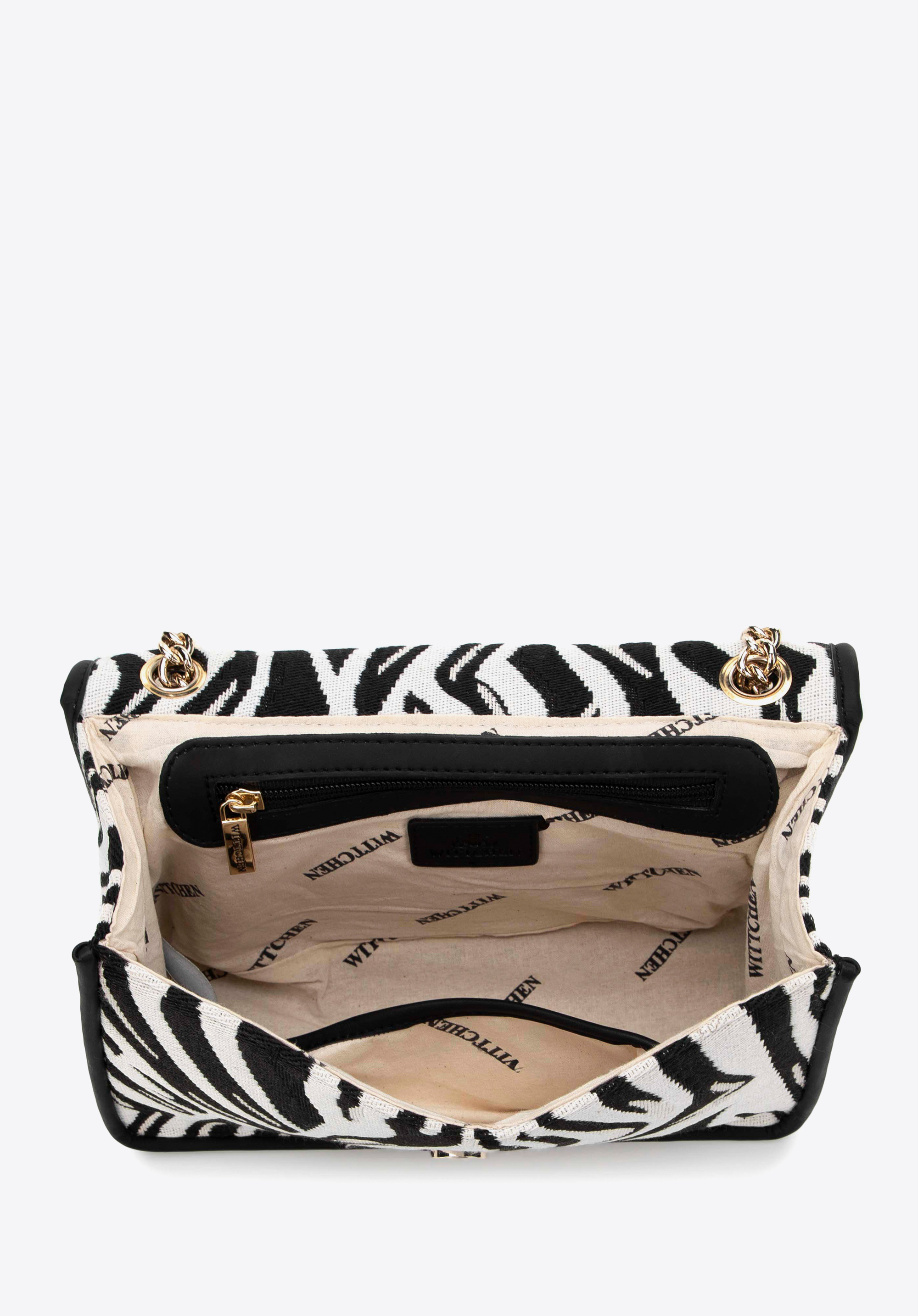 Damska crossbody żakardowa na łańcuszku sprawdzi się na co dzień i przy wyjściach do miasta, gdy liczy się lekka forma i dopracowany detal. Żakardowe wykończenie w duecie z łańcuszkiem i praktycznymi kieszeniami ułatwia organizację, a klapa na magnes zapewnia szybki dostęp do zawartości.