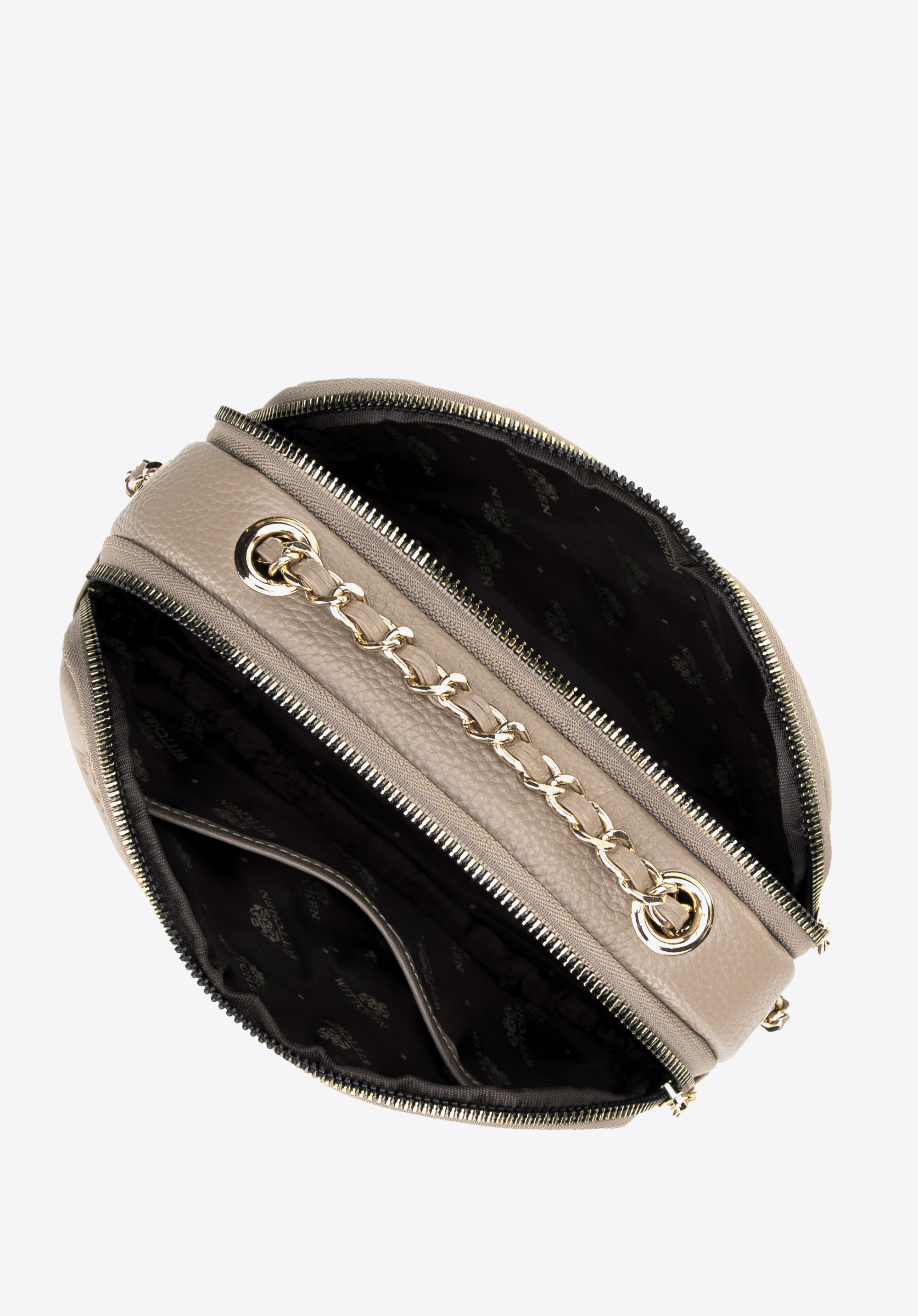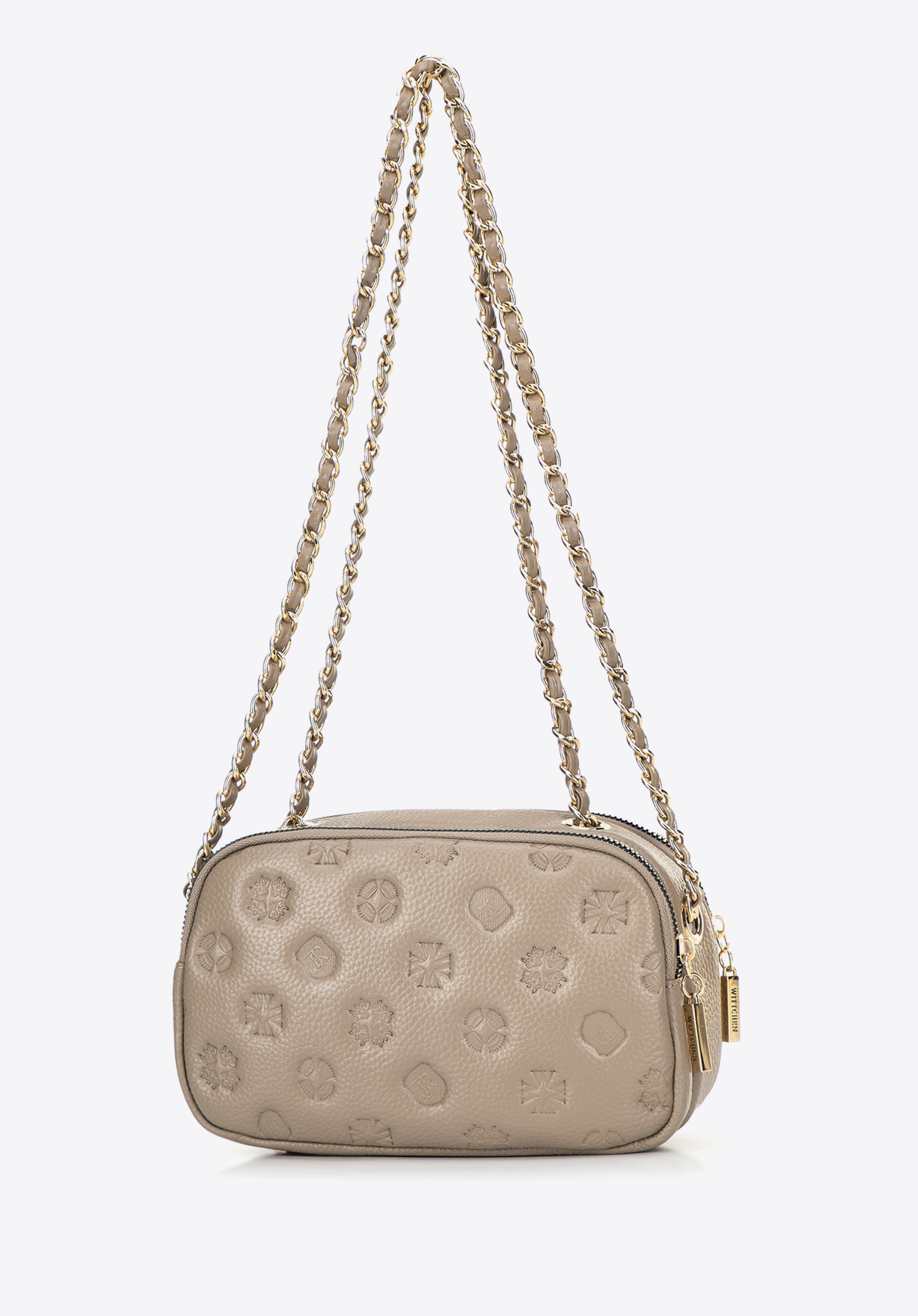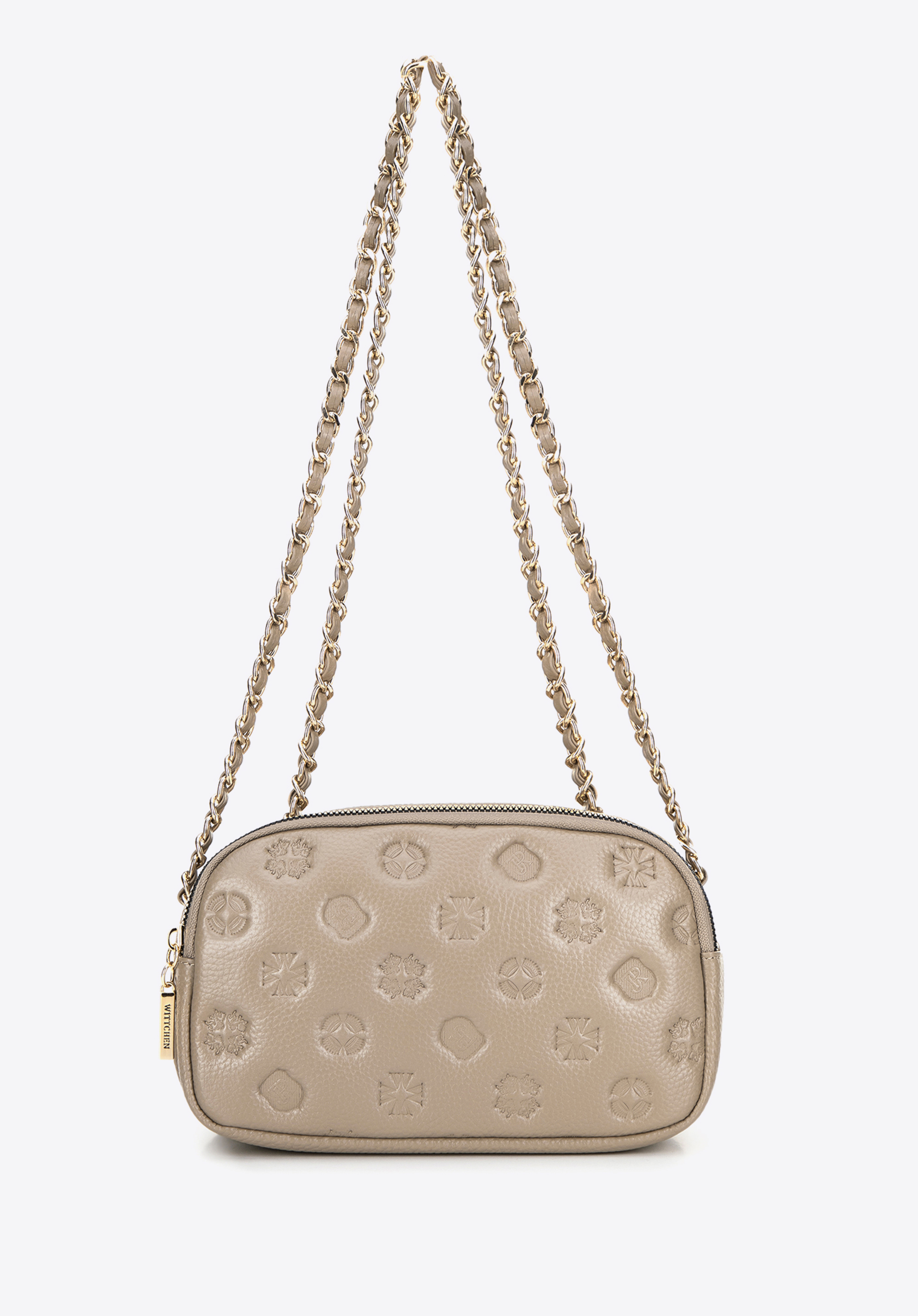 Damska crossbody ze skóry na łańcuszku beżowa