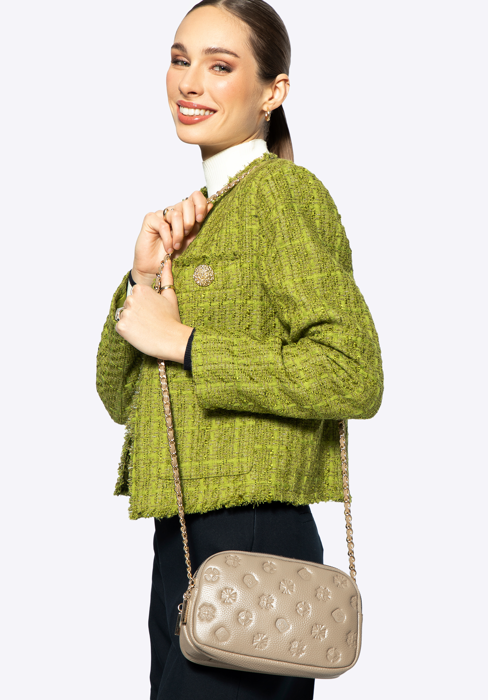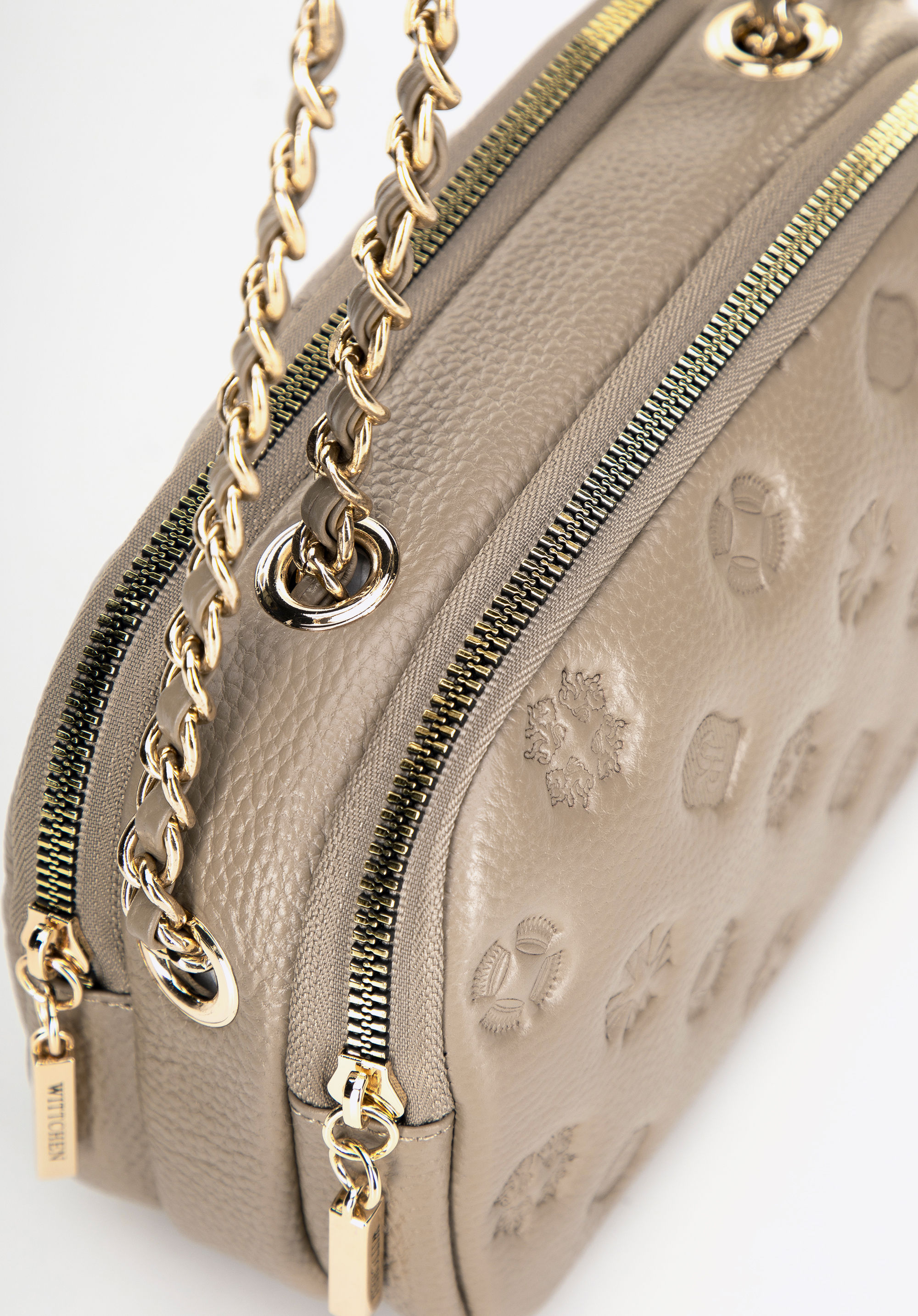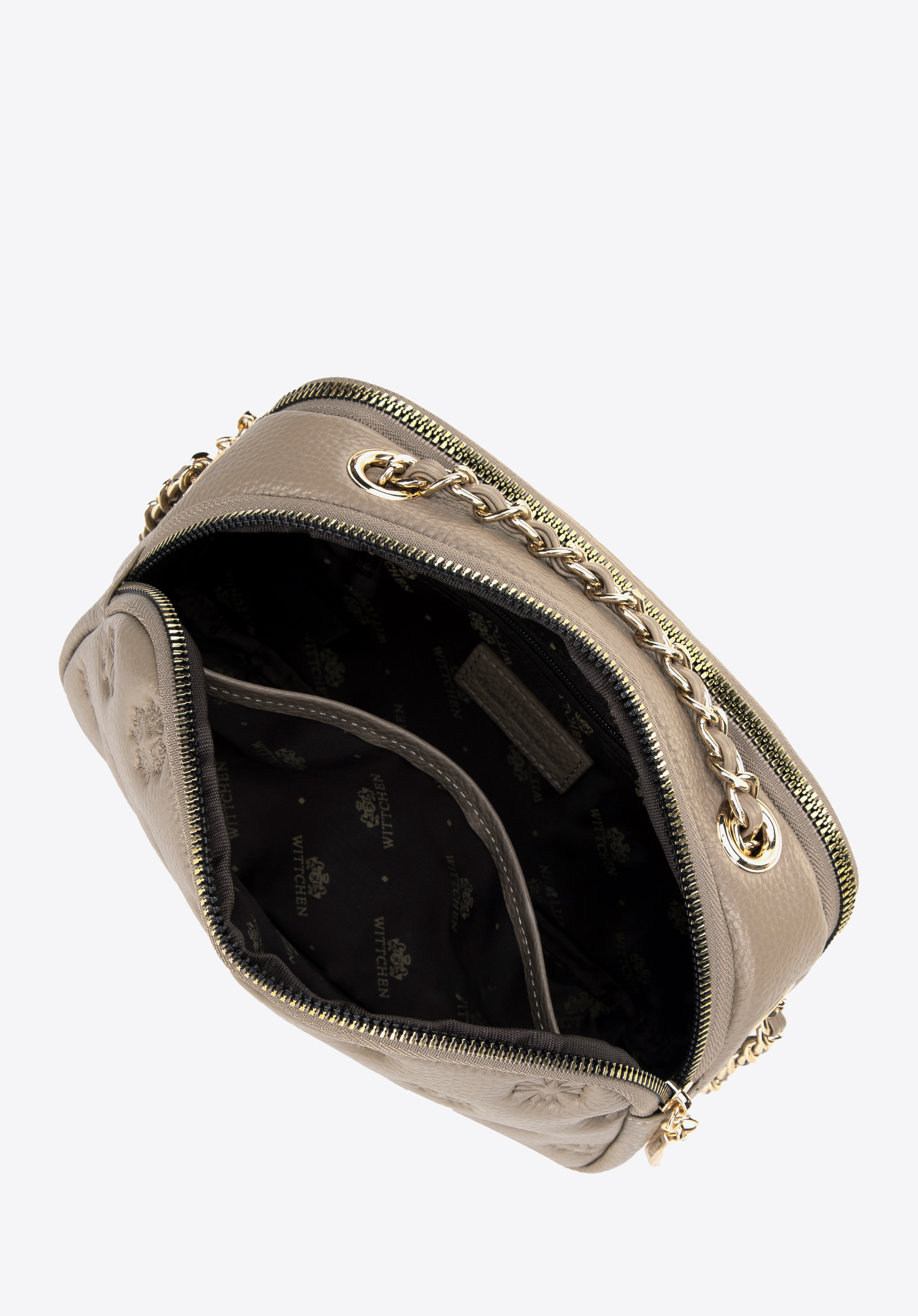 Damska crossbody ze skóry na łańcuszku beżowa