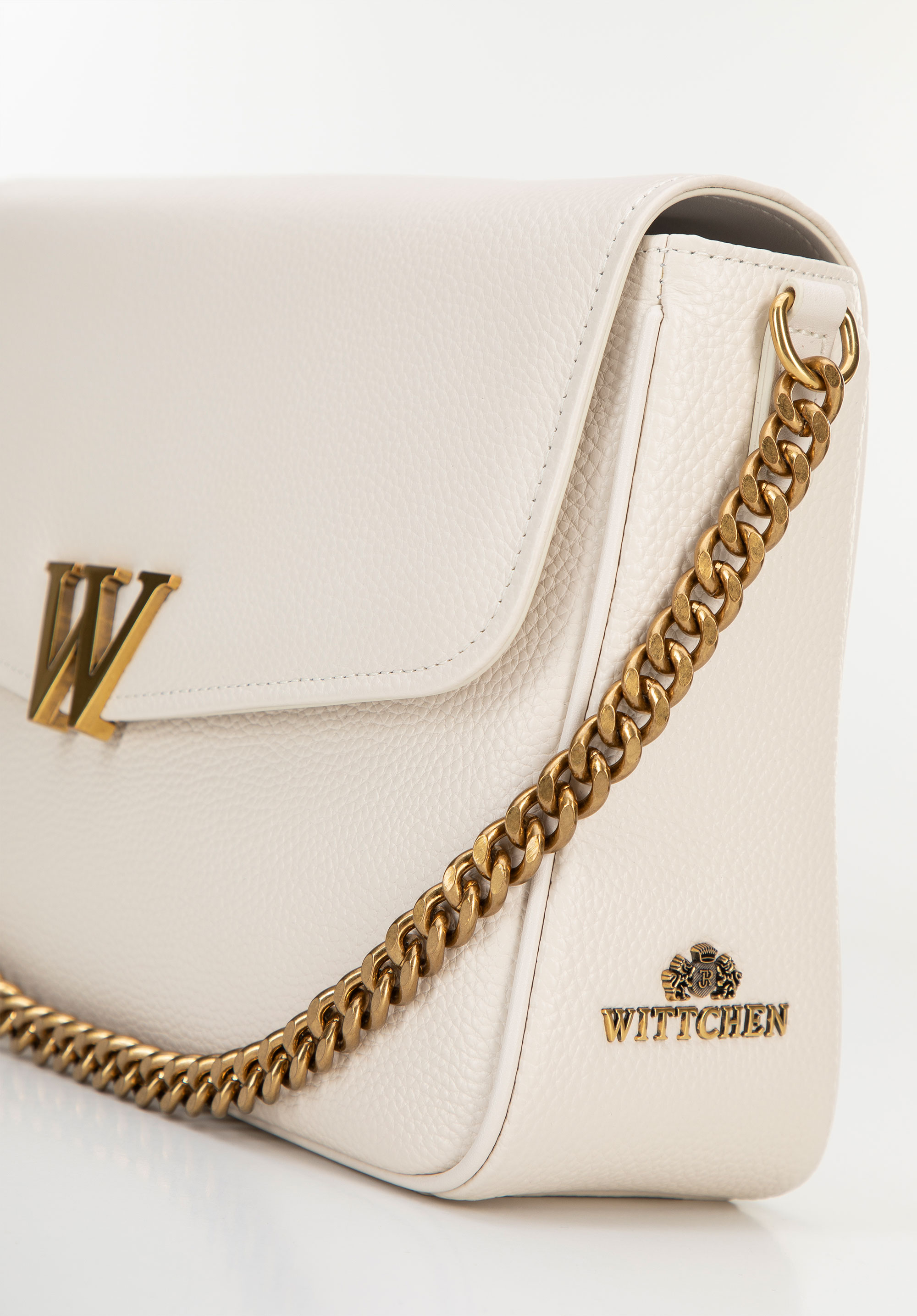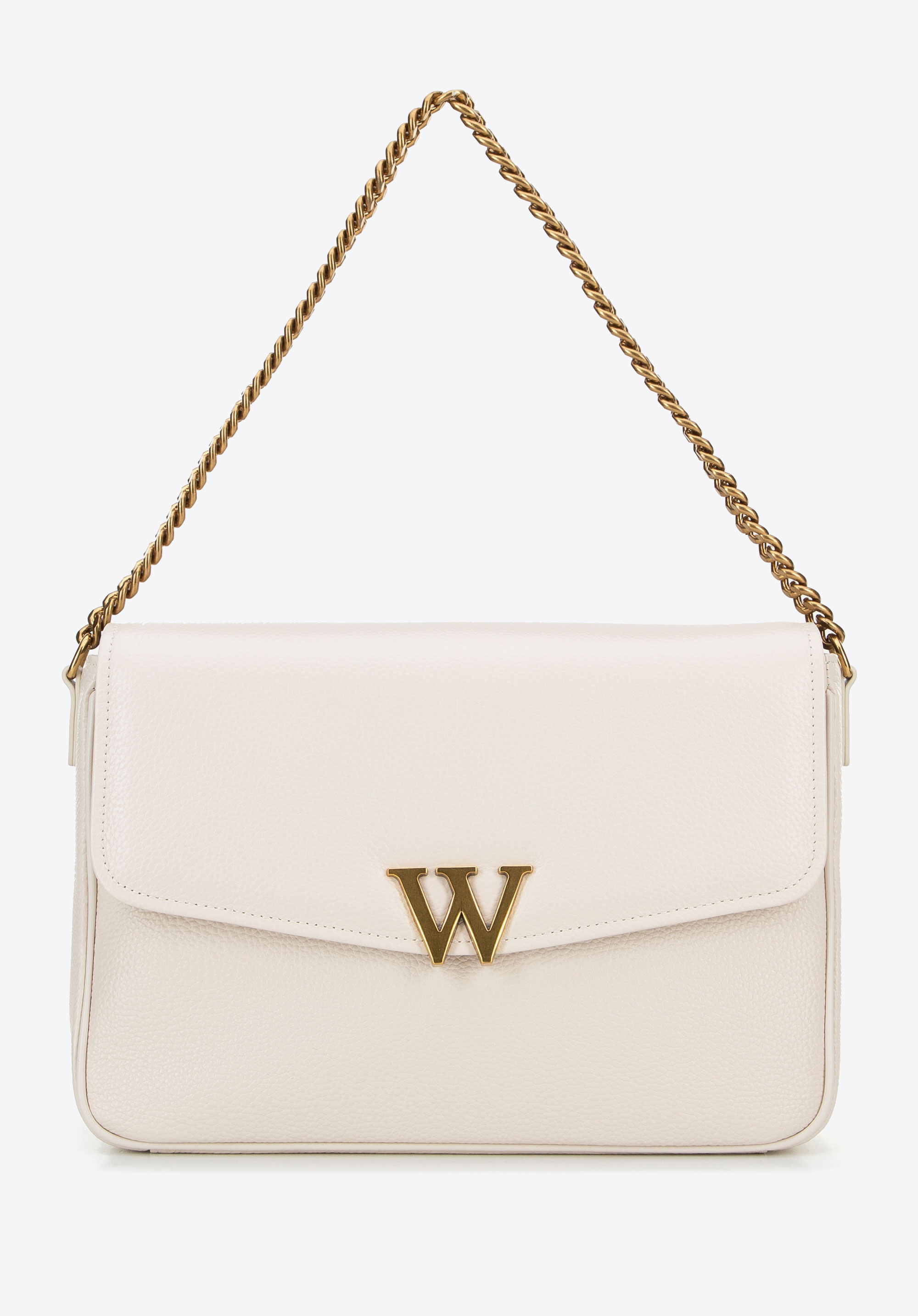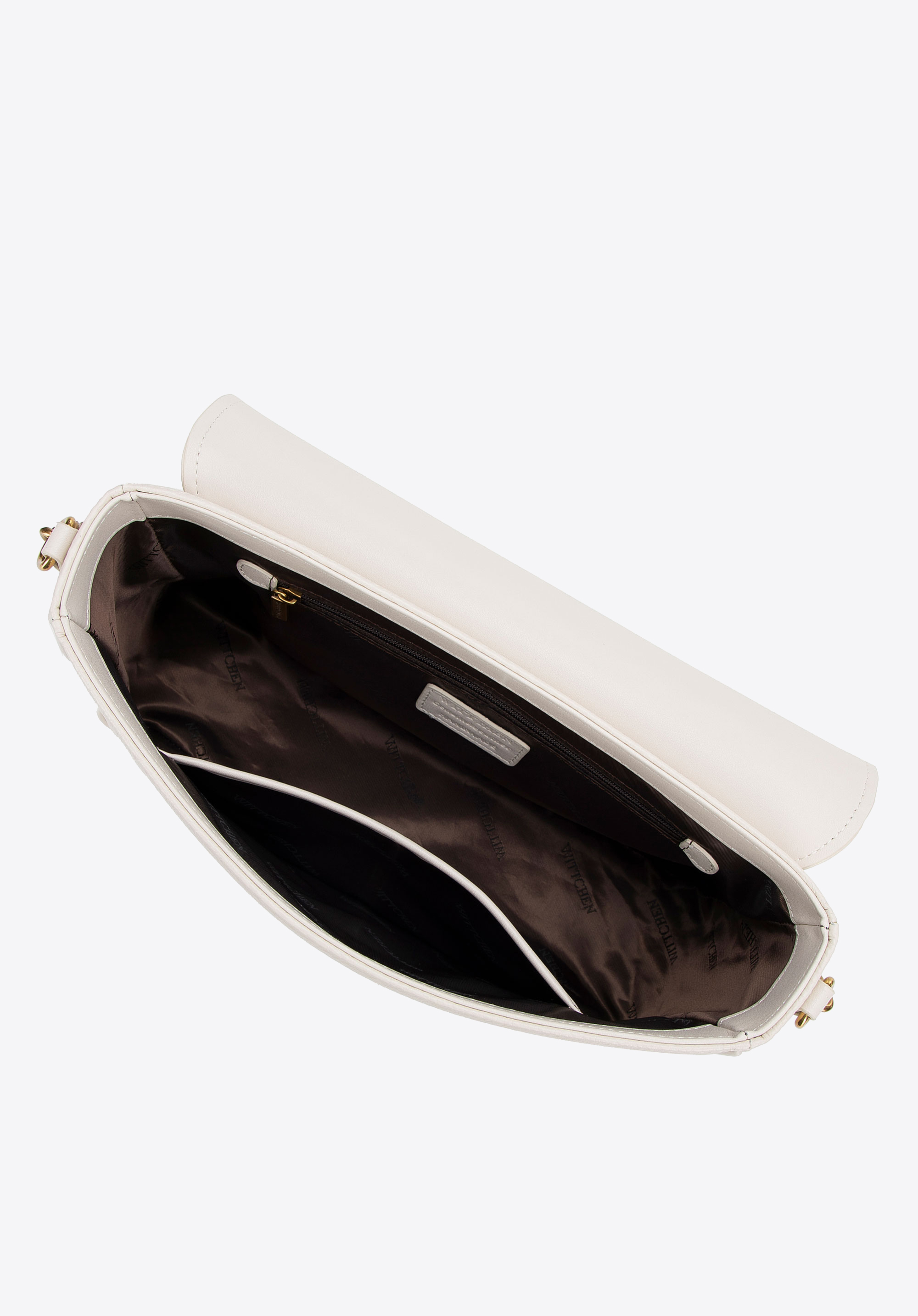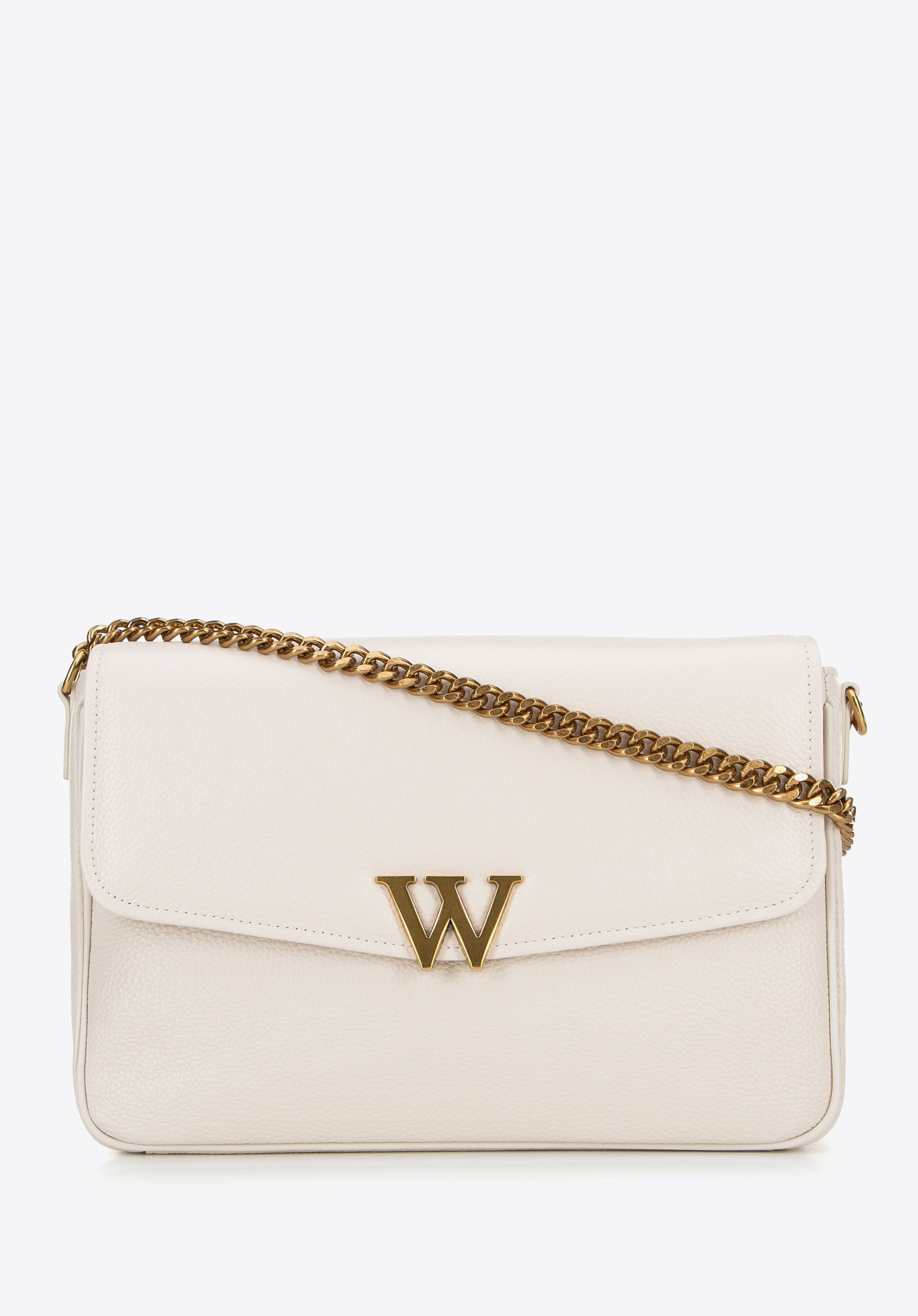 Damska crossbody ze skóry z dekoracyjnym zapięciem kremowa