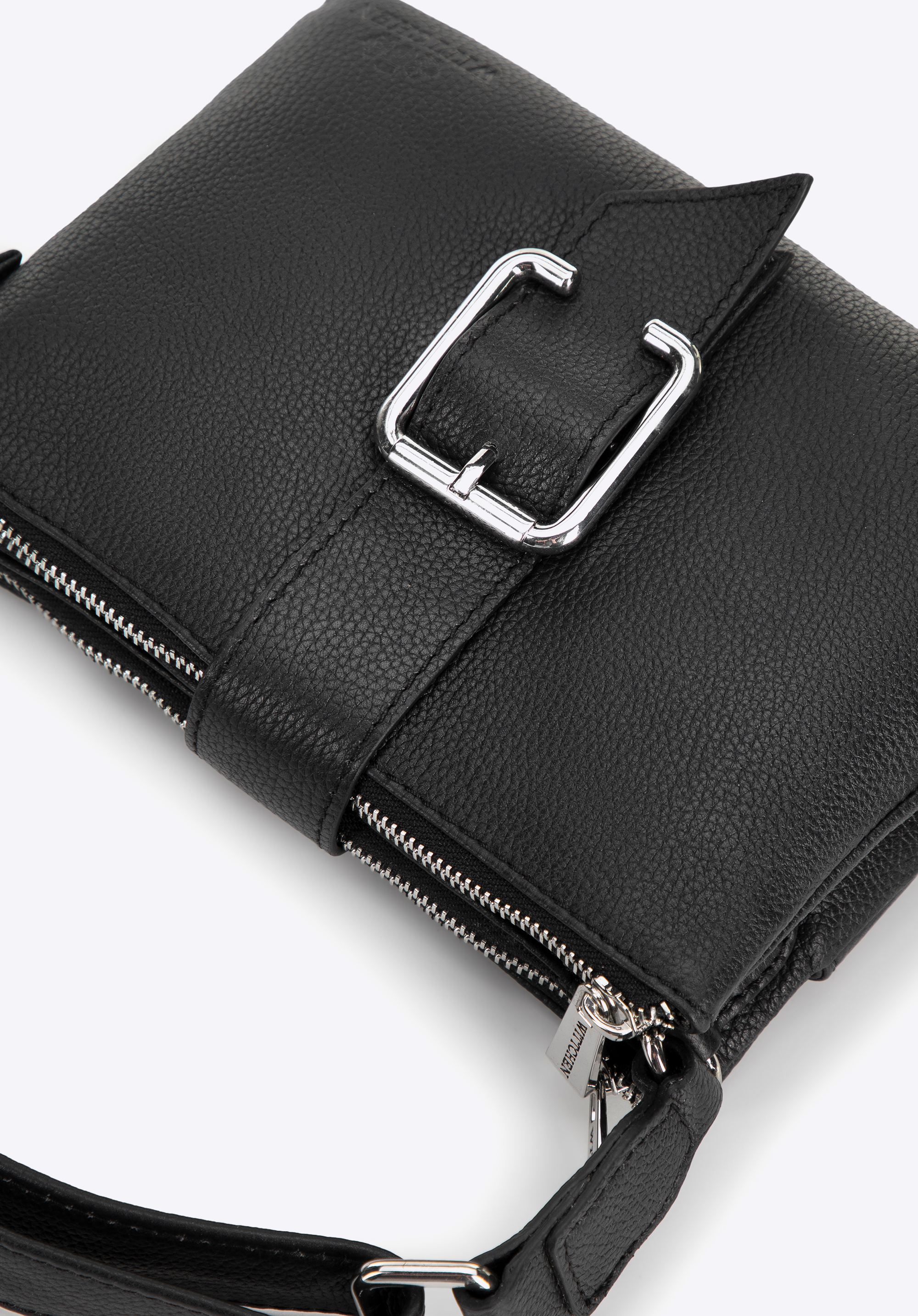 Dwukomorowa torebka crossbody z dekoracyjną klamrą