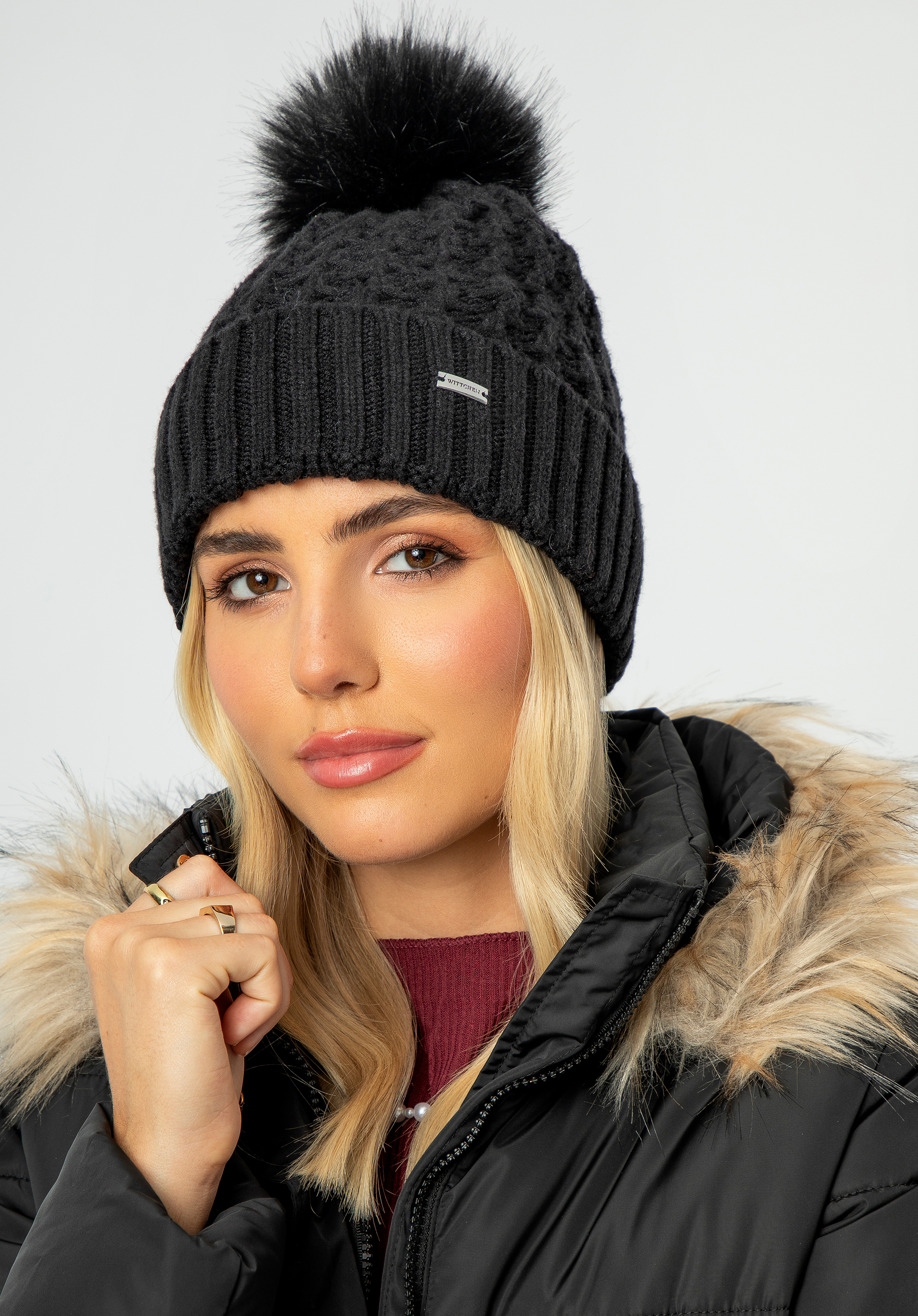 - Design: Głównym atutem czapki jest ozdobny splot z drobnym wzorem, który nadaje jej wyjątkowej elegancji. Wzór ten został zaprojektowany tak, aby subtelnie wyróżniać się na tle innych dodatków, nadając stylizacji nowoczesny, ale jednocześnie ponadczasowy charakter.