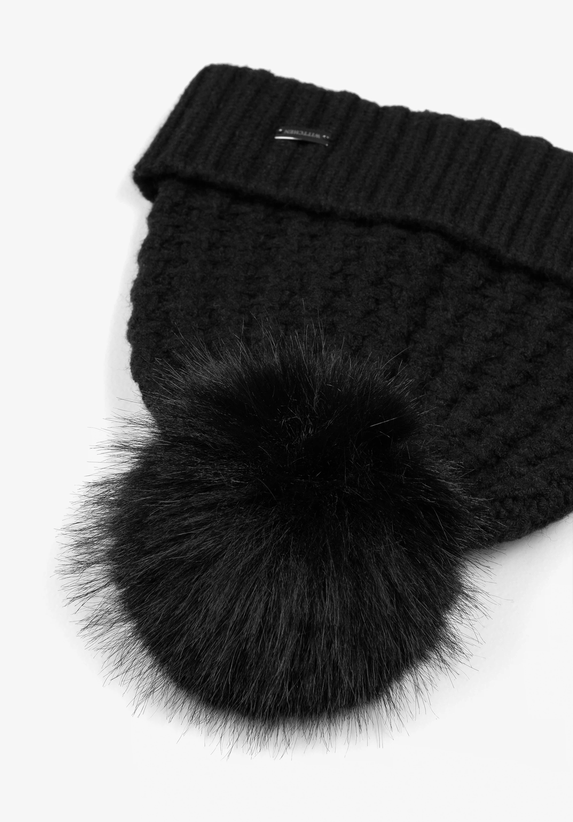 - Detale: Czapka została ozdobiona pomponem o delikatnym połysku, który dodaje jej odrobiny luksusu. Pompon jest subtelnym, ale efektownym akcentem, który przyciąga uwagę, nadając całości wyjątkowego uroku.