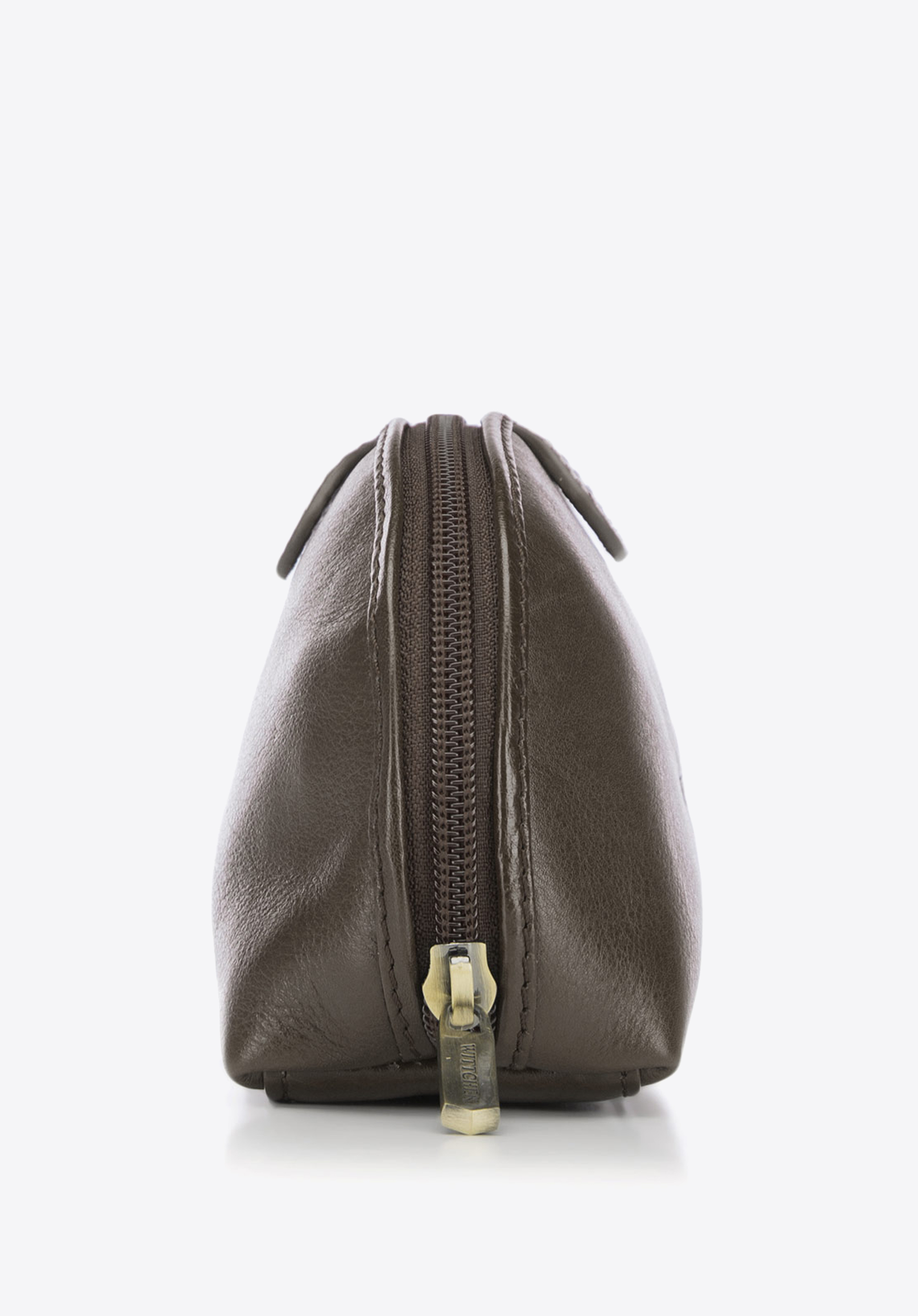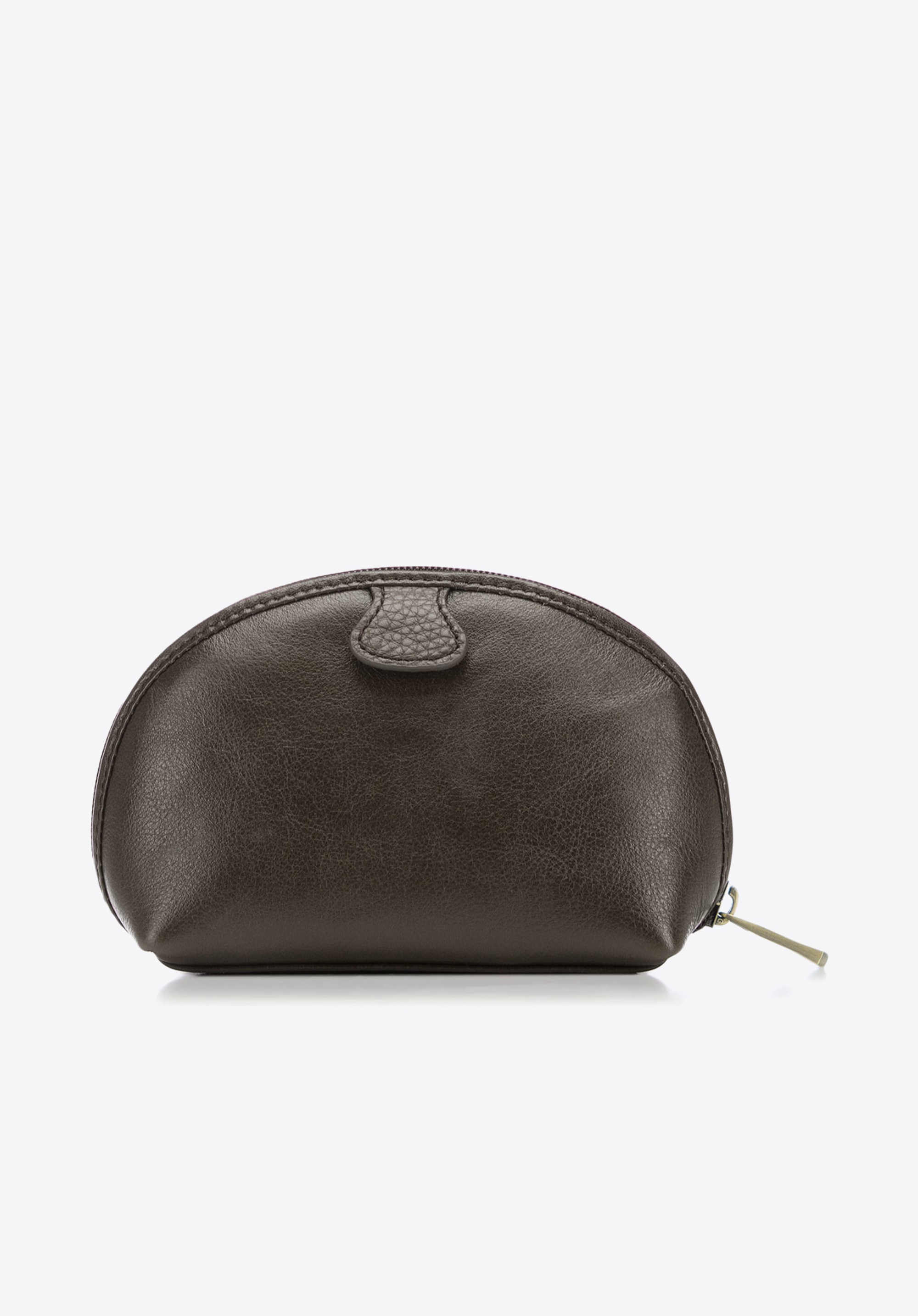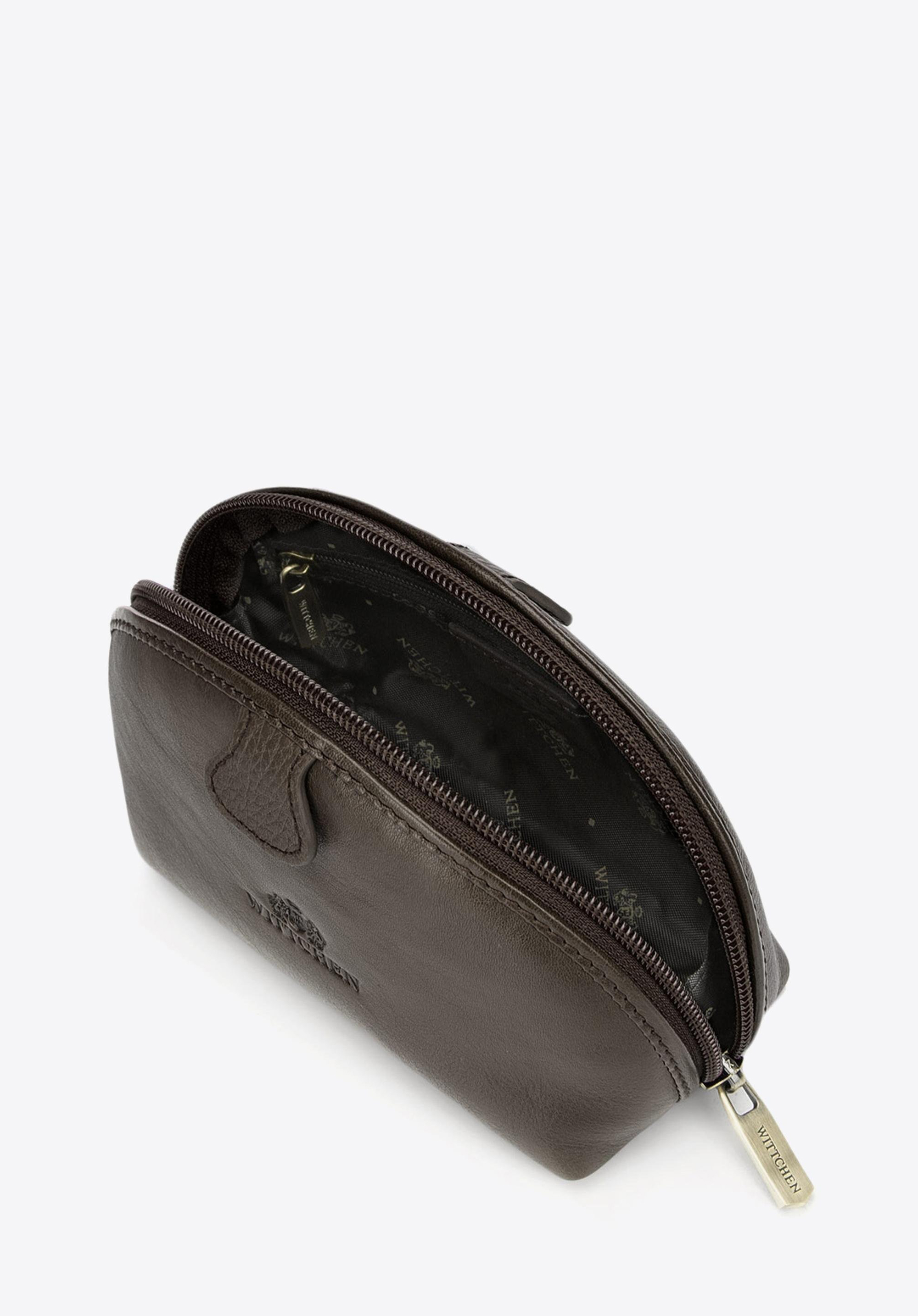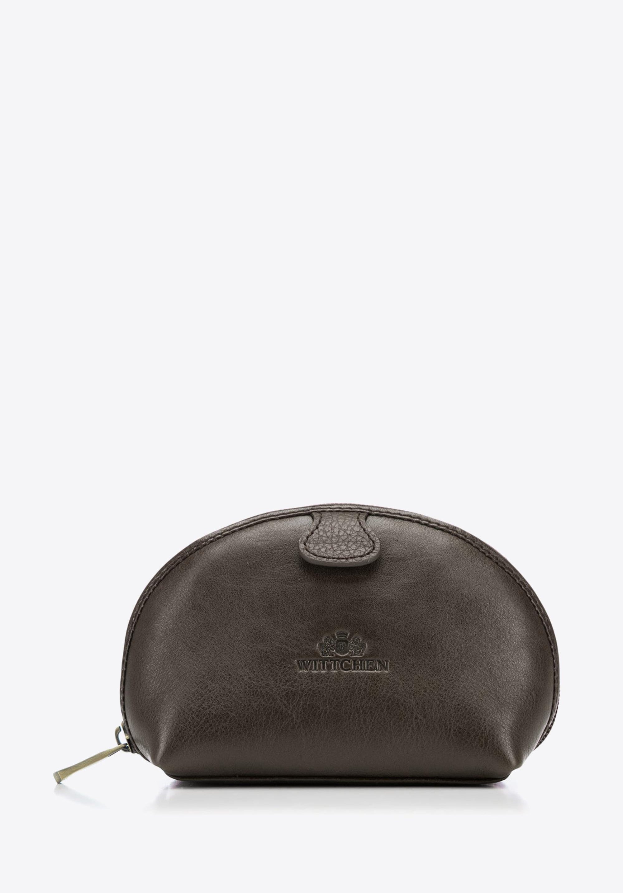 Mała kosmetyczka, która pomieści najpotrzebniejsze kosmetyki i akcesoria. Stylowy półokrągły model wykonany z groszkowanej skóry naturalnej został urozmaicony dodatkowym plastrem materiału oraz tłoczeniem z logo WITTCHEN. Model dostępny jest w trzech wersjach kolorystycznych: czerni, brązie i czerwieni.