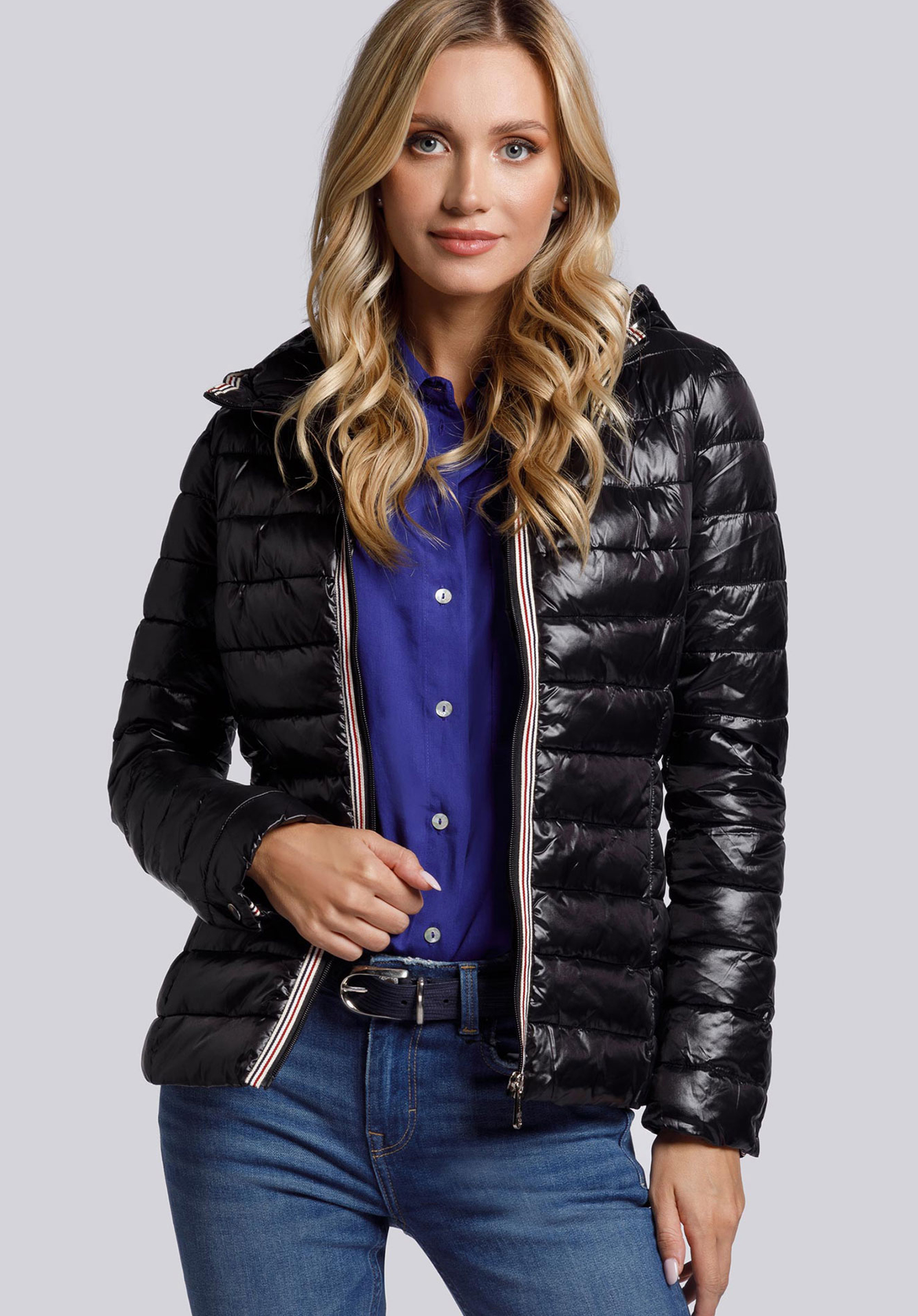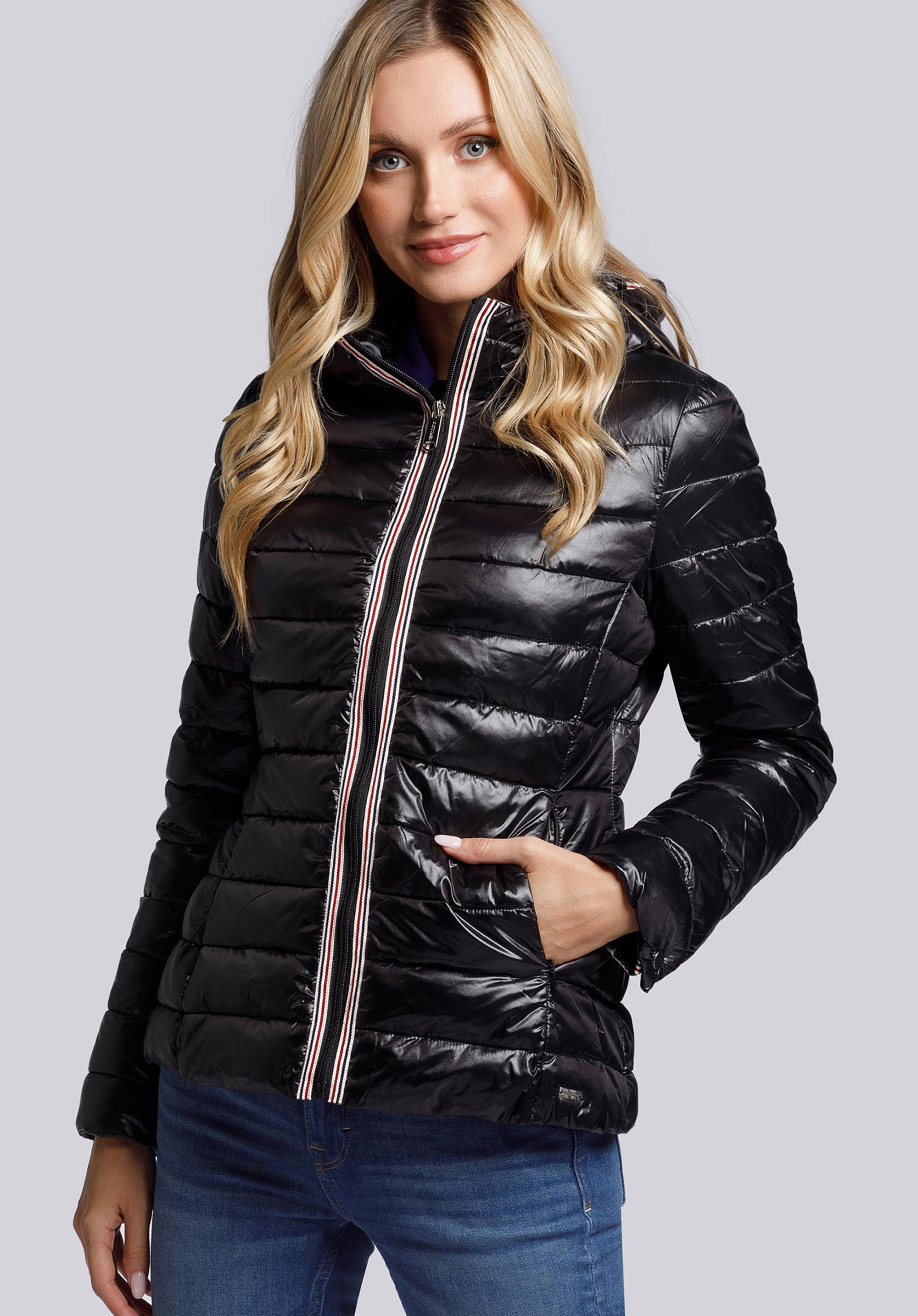 Budując garderobę na zbliżający się sezon, warto postawić na coś, co odświeży te same kreacje. Damska kurtka pikowana z trójkolorową lamówką dobrze spełni tę funkcję. Dobrej jakości kurtka przejściowa, lekko ocieplana, o uniwersalnym kolorze i ponadczasowym kroju, pozwoli na stworzenie wielu różnorodnych kompozycji ubraniowych na co dzień. Klasyczny fason do linii bioder został urozmaicony taśmą biegnącą wzdłuż zapięcia, wewnętrznego brzegu kaptura oraz przy obu rękawach. Kolorowy lampas nadaje całości sportowego charakteru i wpisuje okrycie w najświeższe trendy modowe.